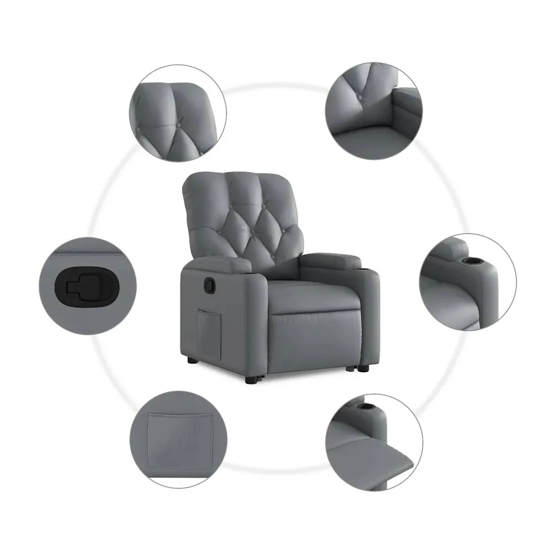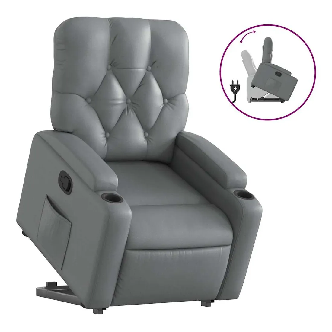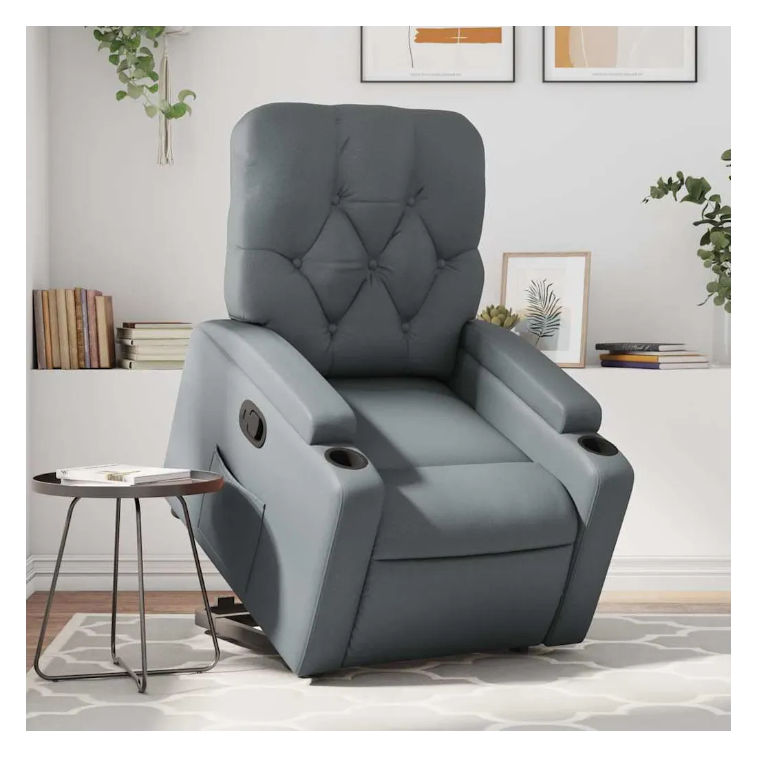 Asseyez-vous et détendez-vous dans ce fauteuil inclinable très confortable ! Fonction de levage électrique : ce fauteuil inclinable pour personnes âgées est équipé d'un moteur électrique pour la fonction de levage. Grâce à la fonction qui pousse toute la chaise vers le haut, vous pouvez facilement vous tenir debout sans stresser votre dos et vos genoux en appuyant simplement sur le bouton.Fonction d'inclinaison manuelle : ce fauteuil inclinable est doté d'une poignée du côté droit. Vous pouvez régler manuellement le repose-pieds et le dossier dans n'importe quelle position selon votre confort en tirant simplement sur la poignée. Cette fonction permet une inclinaison maximale de 135 degrés. De plus, le dossier peut revenir rapidement à sa position d'origine en tirant simplement sur la poignée.Expérience de siège confortable : le siège, le dossier et les larges accoudoirs rembourrés épais recouverts de similicuir procurent une sensation confortable, vous faisant vous sentir enlacé lorsque vous êtes assis. Le similicuir est un matériau très résistant. Il est résistant aux taches, ce qui le rend facile à nettoyer avec un chiffon humide. La surface lisse donne également un aspect luxueux et la beauté du cuir véritable.Poche latérale pratique : ce fauteuil est doté d'une poche latérale pour vous permettre de garder vos objets essentiels à portée de main.Cadre solide et stable : le cadre en bois et en métal offre une structure solide et une grande stabilité. Ce fauteuil inclinable est confortable et durable.