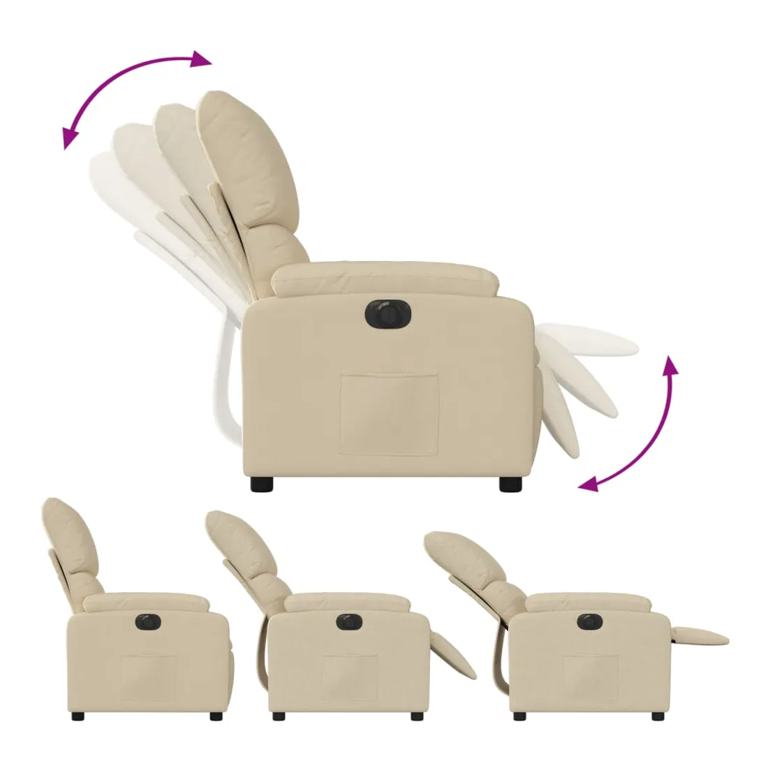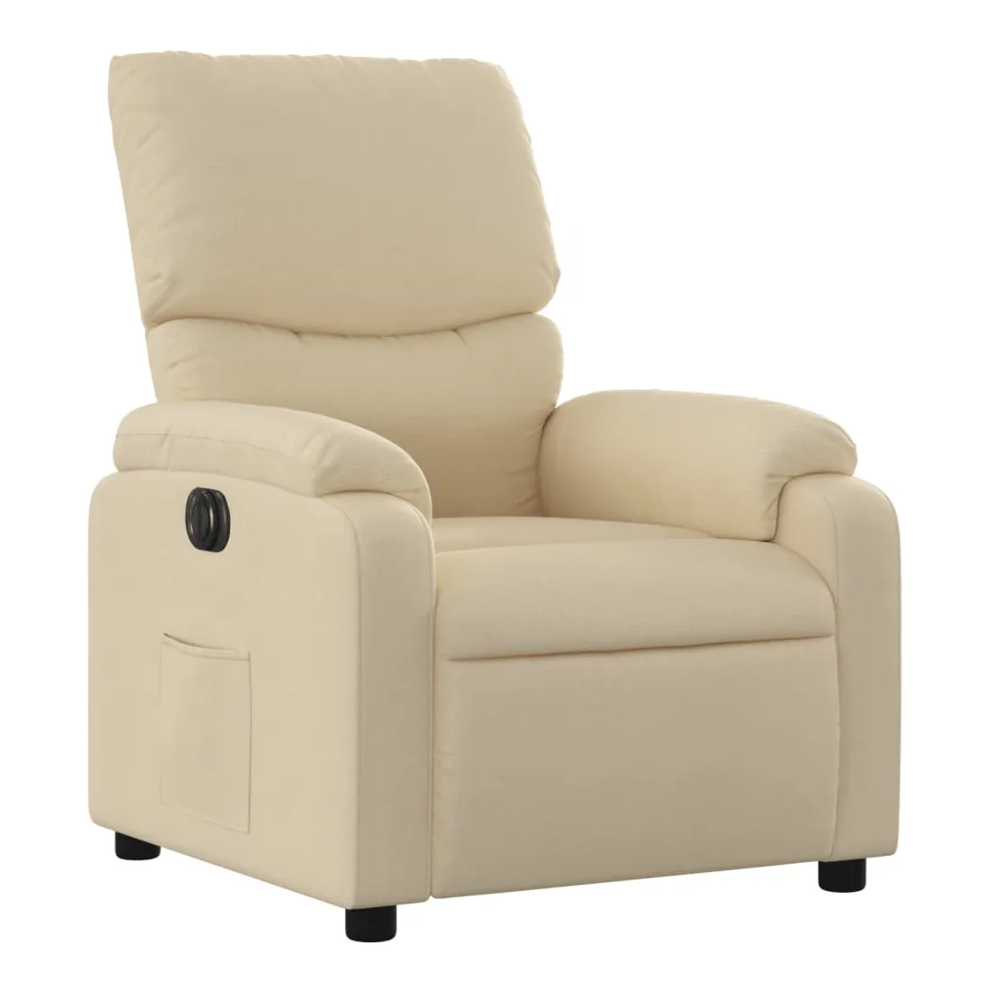 Asseyez-vous et détendez-vous dans ce fauteuil inclinable électrique très confortable ! Fonction d'inclinaison électrique : ce fauteuil inclinable est équipé d'un moteur électrique qui permet de régler automatiquement le repose-pied et le dossier dans n'importe quelle position, selon votre confort, en appuyant simplement sur le bouton situé sur le côté du fauteuil. Cette fonction permet une inclinaison maximale de 135 degrés. En outre, le dossier peut revenir automatiquement à sa position d'origine par une simple pression sur le bouton.Expérience d'assise confortable : le siège, le dossier et les larges accoudoirs bien rembourrés recouverts de tissu procurent une sensation confortable et chaleureuse, vous permettant de vous sentir enveloppé lorsque vous êtes assis. Le tissu présente un aspect simple et épuré et est respirant et durable.Poche latérale pratique : ce fauteuil est doté d'une poche latérale pour vous permettre de garder vos objets essentiels à portée de main.Cadre solide et stable : le cadre en bois et en métal offre une structure solide et une grande stabilité. Ce fauteuil inclinable est confortable et durable.