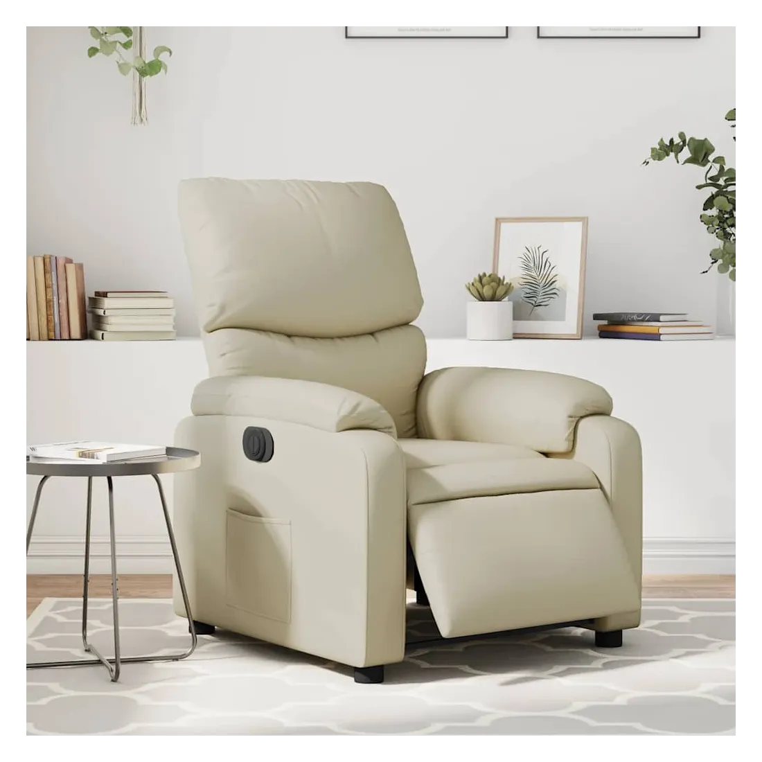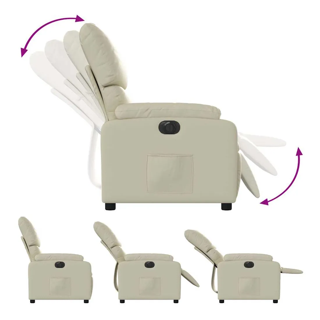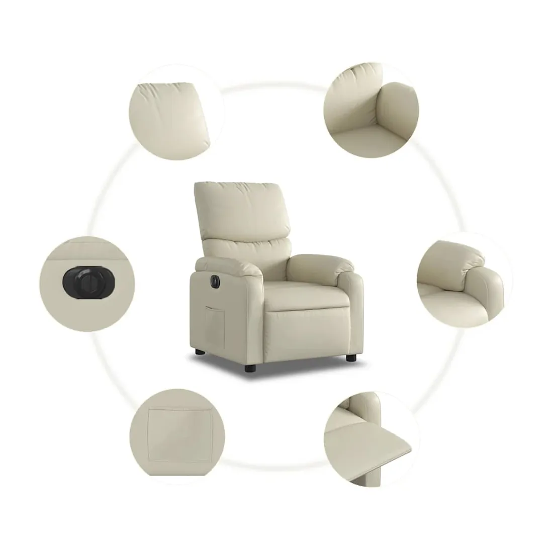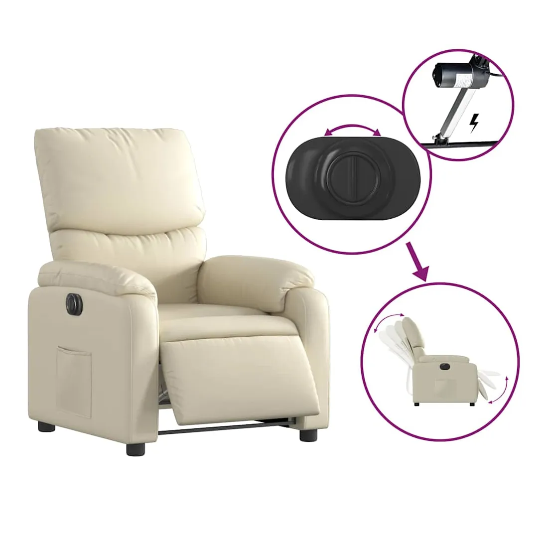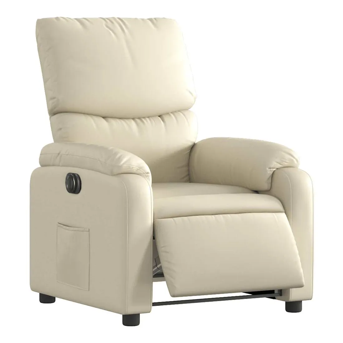 Asseyez-vous et détendez-vous dans ce fauteuil inclinable électrique très confortable ! Fonction d'inclinaison électrique : ce fauteuil inclinable est équipé d'un moteur électrique qui permet de régler automatiquement le repose-pied et le dossier dans n'importe quelle position, selon votre confort, en appuyant simplement sur le bouton situé sur le côté du fauteuil. Cette fonction permet une inclinaison maximale de 135 degrés. En outre, le dossier peut revenir automatiquement à sa position d'origine par une simple pression sur le bouton.Expérience de siège confortable : le siège, le dossier et les larges accoudoirs rembourrés épais recouverts de similicuir procurent une sensation confortable, vous faisant vous sentir enlacé lorsque vous êtes assis. Le similicuir est un matériau très résistant. Il est résistant aux taches, ce qui le rend facile à nettoyer avec un chiffon humide. La surface lisse donne également un aspect luxueux et la beauté du cuir véritable.Poche latérale pratique : ce fauteuil est doté d'une poche latérale pour vous permettre de garder vos objets essentiels à portée de main.Cadre solide et stable : le cadre en bois et en métal offre une structure solide et une grande stabilité. Ce fauteuil inclinable est confortable et durable.