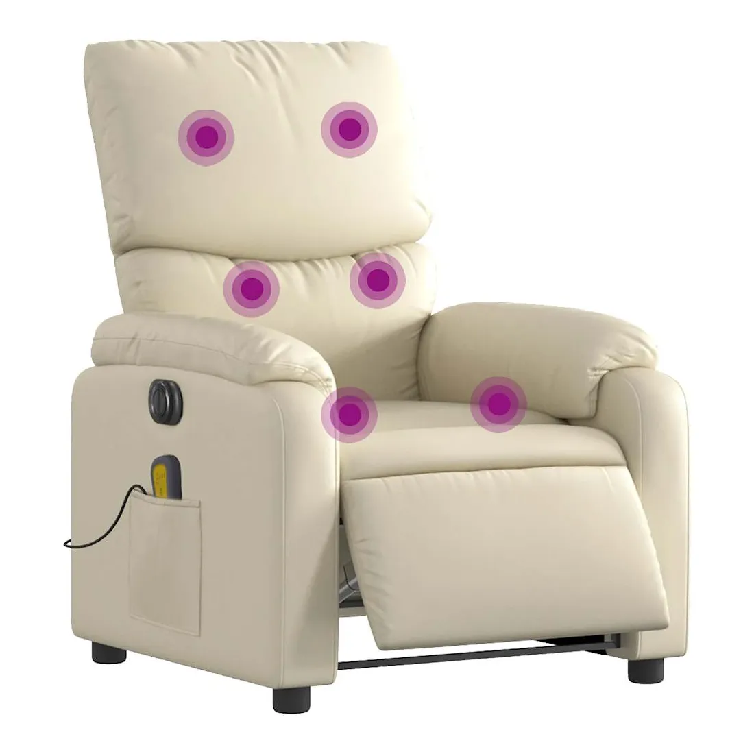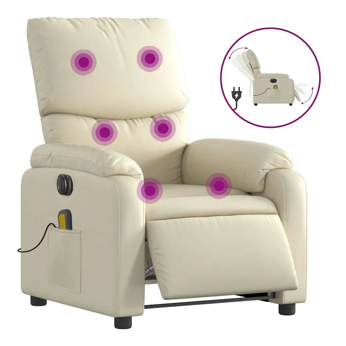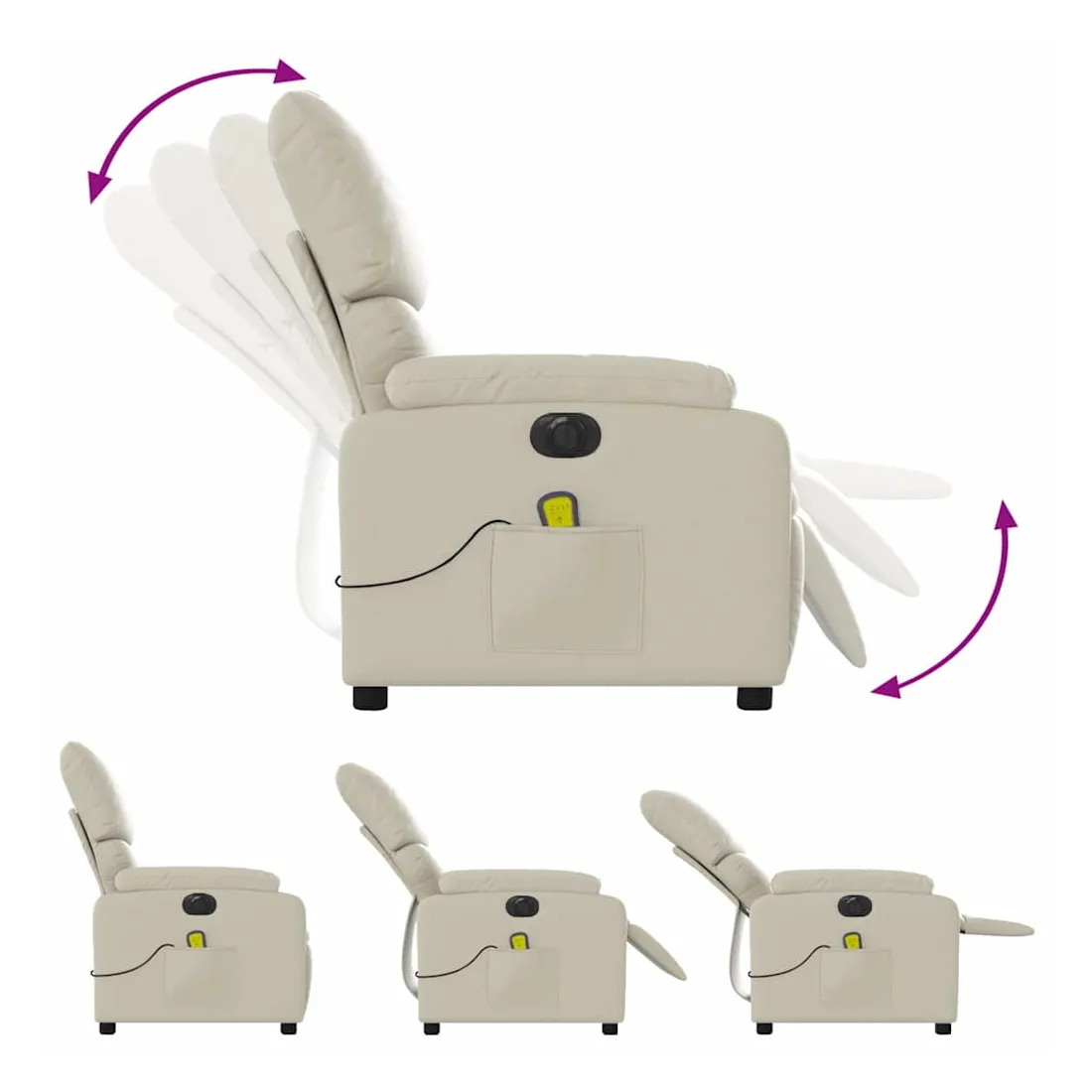 Asseyez-vous et détendez-vous dans ce fauteuil inclinable de massage électrique très confortable ! Fonction d'inclinaison électrique : ce fauteuil inclinable est équipé d'un moteur électrique qui permet de régler automatiquement le repose-pied et le dossier dans n'importe quelle position, selon votre confort, en appuyant simplement sur le bouton situé sur le côté du fauteuil. Cette fonction permet une inclinaison maximale de 135 degrés. En outre, le dossier peut revenir automatiquement à sa position d'origine par une simple pression sur le bouton.Fonction de vibration : les 6 points de massage vous permettent de faire l'expérience d'un massage mieux ciblé. De plus, la télécommande incluse vous permet de choisir différents programmes de massage. La fonction de massage est alimentée par le connecteur USB qui nécessite une source d'alimentation USB certifiée de 5 V (non fournie).Expérience de siège confortable : le siège, le dossier et les larges accoudoirs rembourrés épais recouverts de similicuir procurent une sensation confortable, vous faisant vous sentir enlacé lorsque vous êtes assis. Le similicuir est un matériau très résistant. Il est résistant aux taches, ce qui le rend facile à nettoyer avec un chiffon humide. La surface lisse donne également un aspect luxueux et la beauté du cuir véritable.Poche latérale pratique : ce fauteuil est doté d'une poche latérale pour ranger votre télécommande ou garder vos objets essentiels à portée de main.Cadre solide et stable : le cadre en bois et en métal offre une structure solide et une grande stabilité. Ce fauteuil inclinable est confortable et durable.