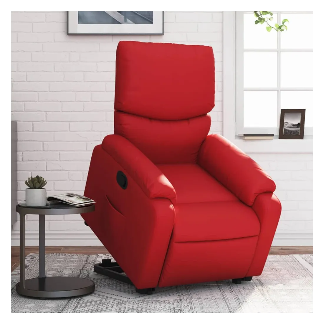 Asseyez-vous et détendez-vous dans ce fauteuil inclinable très confortable ! Fonction de levage électrique : ce fauteuil inclinable pour personnes âgées est équipé d'un moteur électrique pour la fonction de levage. Grâce à la fonction qui pousse toute la chaise vers le haut, vous pouvez facilement vous tenir debout sans stresser votre dos et vos genoux en appuyant simplement sur le bouton.Fonction d'inclinaison manuelle : ce fauteuil inclinable est doté d'une poignée du côté droit. Vous pouvez régler manuellement le repose-pieds et le dossier dans n'importe quelle position selon votre confort en tirant simplement sur la poignée. Cette fonction permet une inclinaison maximale de 135 degrés. De plus, le dossier peut revenir rapidement à sa position d'origine en tirant simplement sur la poignée.Expérience de siège confortable : le siège, le dossier et les larges accoudoirs rembourrés épais recouverts de similicuir procurent une sensation confortable, vous faisant vous sentir enlacé lorsque vous êtes assis. Le similicuir est un matériau très résistant. Il est résistant aux taches, ce qui le rend facile à nettoyer avec un chiffon humide. La surface lisse donne également un aspect luxueux et la beauté du cuir véritable.Poche latérale pratique : ce fauteuil est doté d'une poche latérale pour vous permettre de garder vos objets essentiels à portée de main.Cadre solide et stable : le cadre en bois et en métal offre une structure solide et une grande stabilité. Ce fauteuil inclinable est confortable et durable.