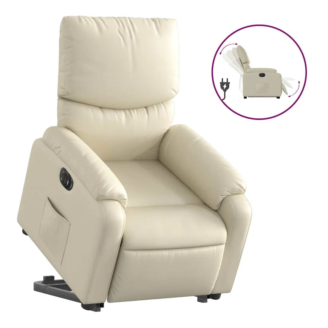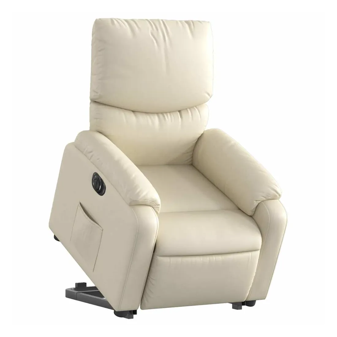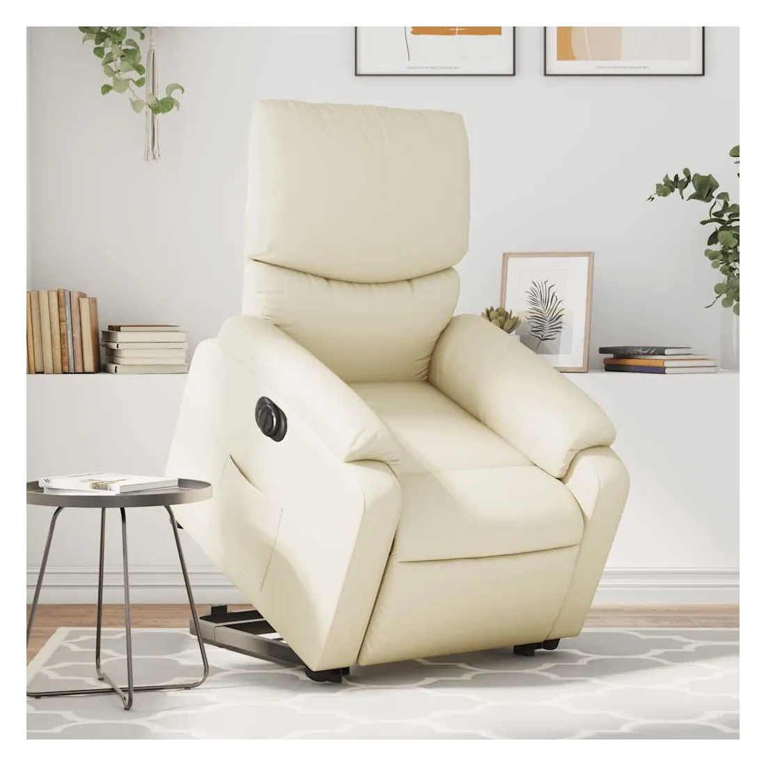 Asseyez-vous et détendez-vous dans ce fauteuil inclinable électrique très confortable ! Fonction de levage électrique : ce fauteuil inclinable pour personnes âgées est équipé d'un moteur électrique pour la fonction de levage. Grâce à la fonction qui pousse toute la chaise vers le haut, vous pouvez facilement vous tenir debout sans stresser votre dos et vos genoux en appuyant simplement sur le bouton.Fonction d'inclinaison électrique : ce fauteuil inclinable est également équipé d'un moteur électrique qui permet de régler automatiquement le repose-pied et le dossier dans n'importe quelle position, selon votre confort, en appuyant simplement sur le bouton situé sur le côté du fauteuil. Cette fonction permet une inclinaison maximale de 135 degrés. En outre, le dossier peut revenir automatiquement à sa position d'origine par une simple pression sur le bouton.Expérience de siège confortable : le siège, le dossier et les larges accoudoirs rembourrés épais recouverts de similicuir procurent une sensation confortable, vous faisant vous sentir enlacé lorsque vous êtes assis. Le similicuir est un matériau très résistant. Il est résistant aux taches, ce qui le rend facile à nettoyer avec un chiffon humide. La surface lisse donne également un aspect luxueux et la beauté du cuir véritable.Poche latérale pratique : ce fauteuil est doté d'une poche latérale pour vous permettre de garder vos objets essentiels à portée de main.Cadre solide et stable : le cadre en bois et en métal offre une structure solide et une grande stabilité. Ce fauteuil inclinable est confortable et durable.