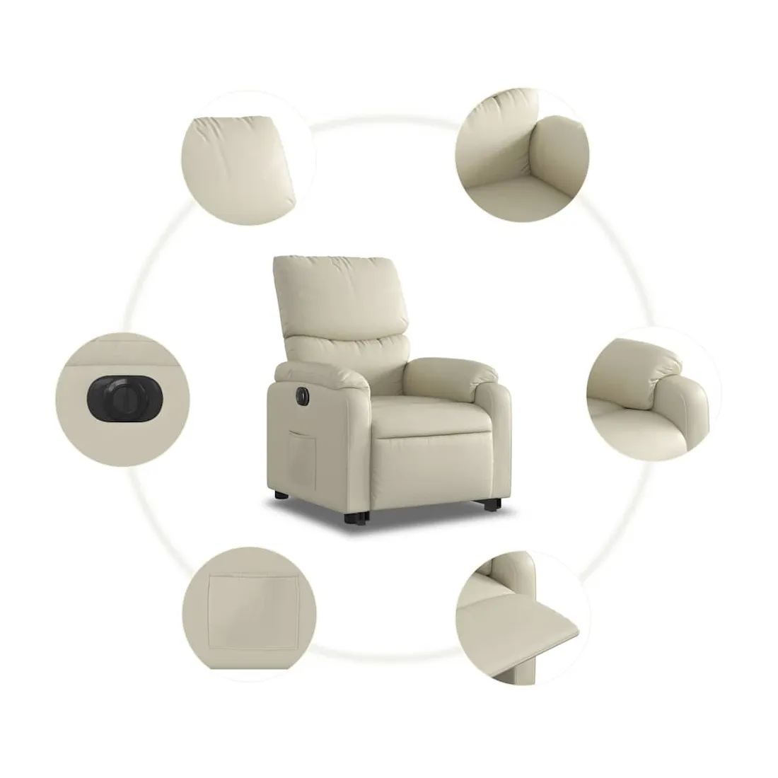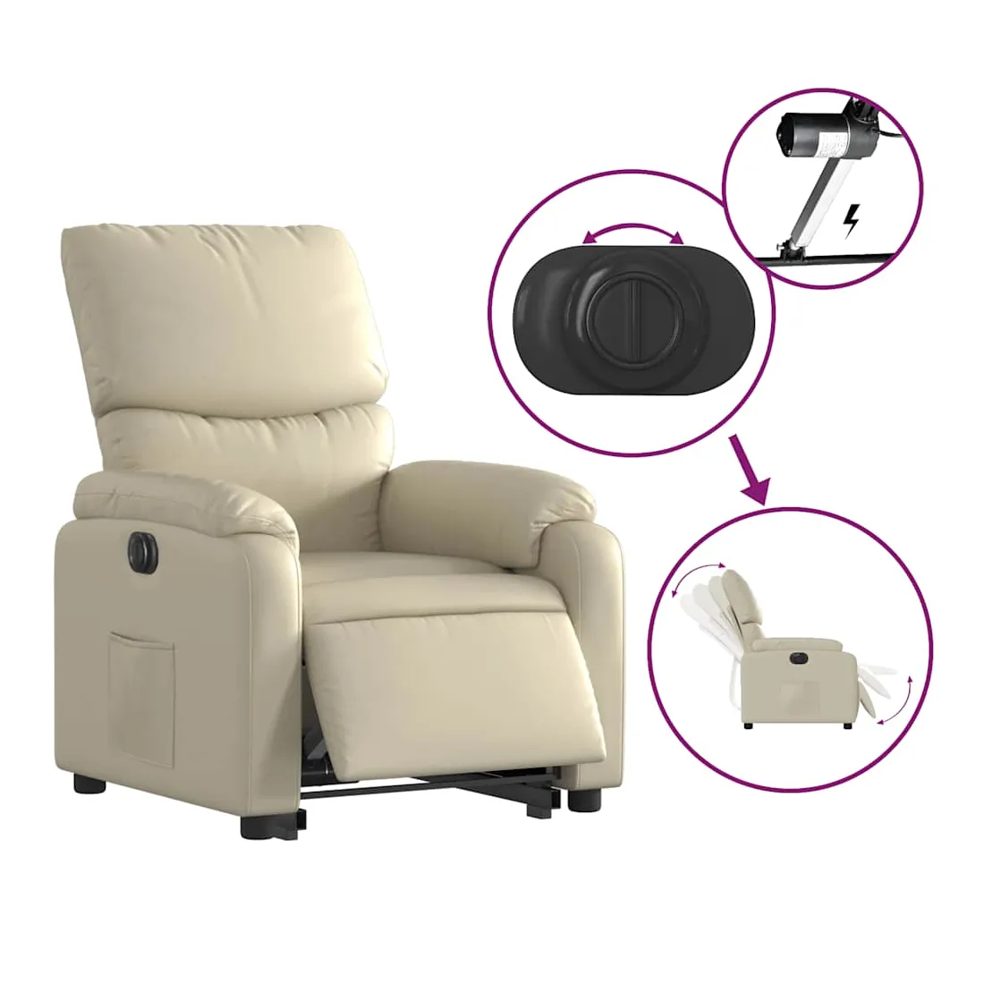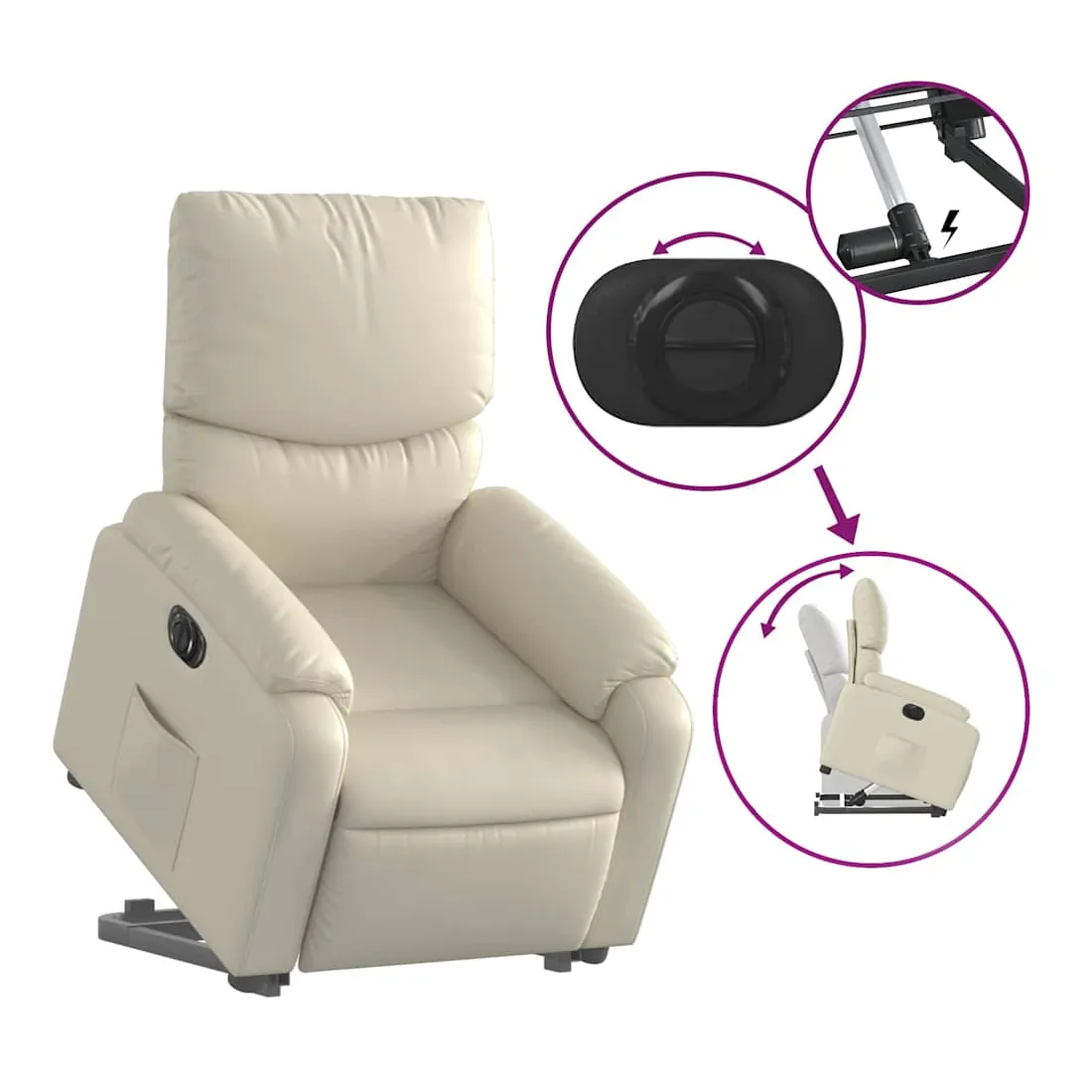 Asseyez-vous et détendez-vous dans ce fauteuil inclinable électrique très confortable ! Fonction de levage électrique : ce fauteuil inclinable pour personnes âgées est équipé d'un moteur électrique pour la fonction de levage. Grâce à la fonction qui pousse toute la chaise vers le haut, vous pouvez facilement vous tenir debout sans stresser votre dos et vos genoux en appuyant simplement sur le bouton.Fonction d'inclinaison électrique : ce fauteuil inclinable est également équipé d'un moteur électrique qui permet de régler automatiquement le repose-pied et le dossier dans n'importe quelle position, selon votre confort, en appuyant simplement sur le bouton situé sur le côté du fauteuil. Cette fonction permet une inclinaison maximale de 135 degrés. En outre, le dossier peut revenir automatiquement à sa position d'origine par une simple pression sur le bouton.Expérience de siège confortable : le siège, le dossier et les larges accoudoirs rembourrés épais recouverts de similicuir procurent une sensation confortable, vous faisant vous sentir enlacé lorsque vous êtes assis. Le similicuir est un matériau très résistant. Il est résistant aux taches, ce qui le rend facile à nettoyer avec un chiffon humide. La surface lisse donne également un aspect luxueux et la beauté du cuir véritable.Poche latérale pratique : ce fauteuil est doté d'une poche latérale pour vous permettre de garder vos objets essentiels à portée de main.Cadre solide et stable : le cadre en bois et en métal offre une structure solide et une grande stabilité. Ce fauteuil inclinable est confortable et durable.