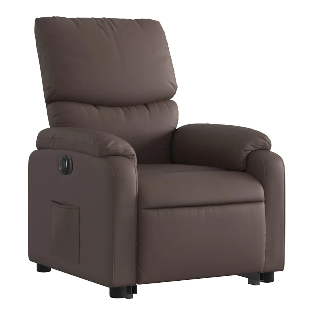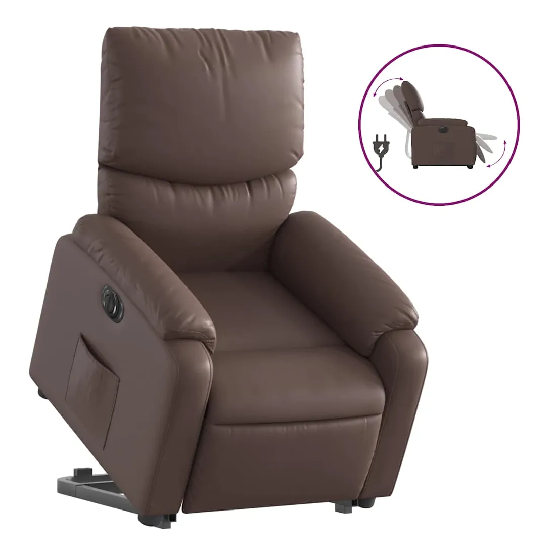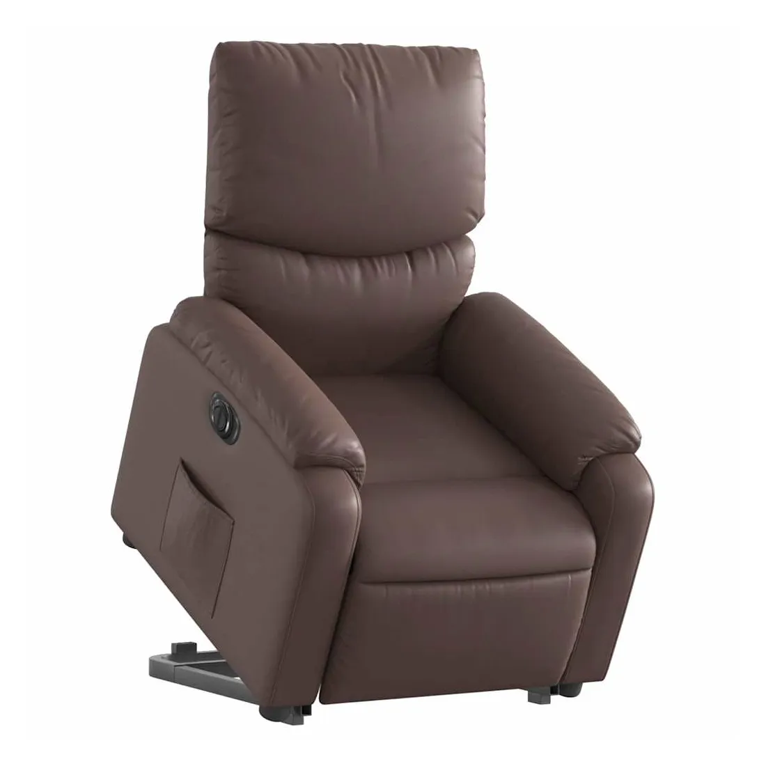 Asseyez-vous et détendez-vous dans ce fauteuil inclinable électrique très confortable ! Fonction de levage électrique : ce fauteuil inclinable pour personnes âgées est équipé d'un moteur électrique pour la fonction de levage. Grâce à la fonction qui pousse toute la chaise vers le haut, vous pouvez facilement vous tenir debout sans stresser votre dos et vos genoux en appuyant simplement sur le bouton.Fonction d'inclinaison électrique : ce fauteuil inclinable est également équipé d'un moteur électrique qui permet de régler automatiquement le repose-pied et le dossier dans n'importe quelle position, selon votre confort, en appuyant simplement sur le bouton situé sur le côté du fauteuil. Cette fonction permet une inclinaison maximale de 135 degrés. En outre, le dossier peut revenir automatiquement à sa position d'origine par une simple pression sur le bouton.Expérience de siège confortable : le siège, le dossier et les larges accoudoirs rembourrés épais recouverts de similicuir procurent une sensation confortable, vous faisant vous sentir enlacé lorsque vous êtes assis. Le similicuir est un matériau très résistant. Il est résistant aux taches, ce qui le rend facile à nettoyer avec un chiffon humide. La surface lisse donne également un aspect luxueux et la beauté du cuir véritable.Poche latérale pratique : ce fauteuil est doté d'une poche latérale pour vous permettre de garder vos objets essentiels à portée de main.Cadre solide et stable : le cadre en bois et en métal offre une structure solide et une grande stabilité. Ce fauteuil inclinable est confortable et durable.