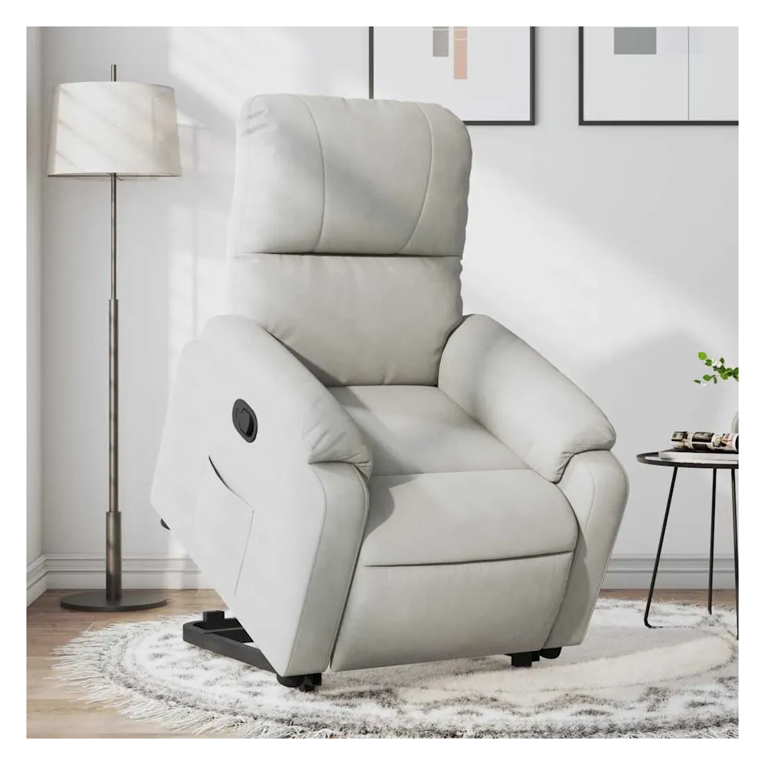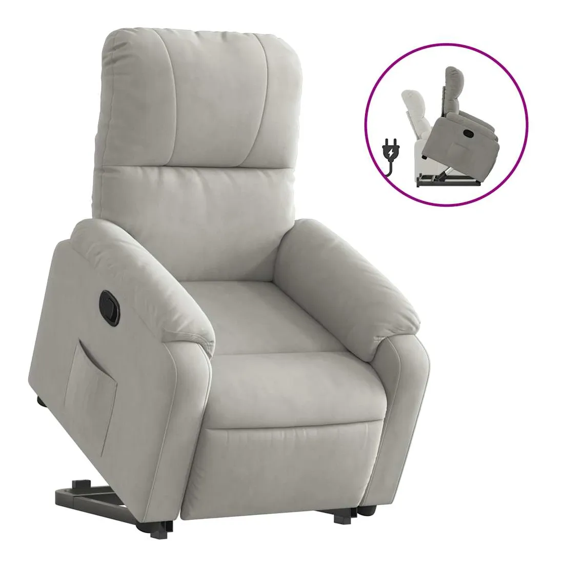 Asseyez-vous et détendez-vous dans ce fauteuil inclinable très confortable ! Fonction de levage électrique : ce fauteuil inclinable pour personnes âgées est équipé d'un moteur électrique pour la fonction de levage. Grâce à la fonction qui pousse toute la chaise vers le haut, vous pouvez facilement vous tenir debout sans stresser votre dos et vos genoux en appuyant simplement sur le bouton.Fonction d'inclinaison manuelle : ce fauteuil inclinable est doté d'une poignée du côté droit. Vous pouvez régler manuellement le repose-pieds et le dossier dans n'importe quelle position selon votre confort en tirant simplement sur la poignée. Cette fonction permet une inclinaison maximale de 135 degrés. De plus, le dossier peut revenir rapidement à sa position d'origine en tirant simplement sur la poignée.Expérience d'assise confortable : l'assise, le dossier et les larges accoudoirs recouverts de microfibres et dotés d'un rembourrage épais procurent une sensation de confort et de chaleur, vous permettant de vous sentir enveloppé lorsque vous êtes assis. La microfibre est un tissu synthétique composé de fibres ultrafines, particulièrement imperméables aux taches. La microfibre est un excellent choix pour le revêtement des meubles en raison de sa durabilité et de sa facilité d'entretien.Poche latérale pratique : ce fauteuil est doté d'une poche latérale pour vous permettre de garder vos objets essentiels à portée de main.Cadre solide et stable : le cadre en bois et en métal offre une structure solide et une grande stabilité. Ce fauteuil inclinable est confortable et durable.