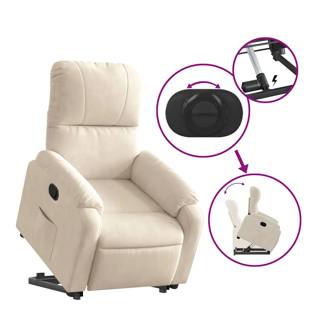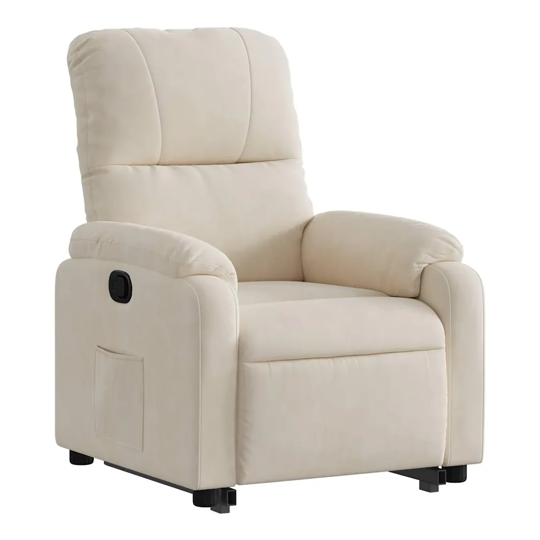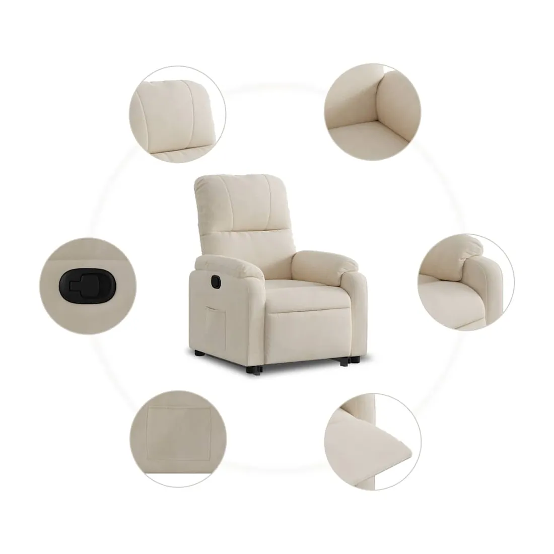 Asseyez-vous et détendez-vous dans ce fauteuil inclinable très confortable ! Fonction de levage électrique : ce fauteuil inclinable pour personnes âgées est équipé d'un moteur électrique pour la fonction de levage. Grâce à la fonction qui pousse toute la chaise vers le haut, vous pouvez facilement vous tenir debout sans stresser votre dos et vos genoux en appuyant simplement sur le bouton.Fonction d'inclinaison manuelle : ce fauteuil inclinable est doté d'une poignée du côté droit. Vous pouvez régler manuellement le repose-pieds et le dossier dans n'importe quelle position selon votre confort en tirant simplement sur la poignée. Cette fonction permet une inclinaison maximale de 135 degrés. De plus, le dossier peut revenir rapidement à sa position d'origine en tirant simplement sur la poignée.Expérience d'assise confortable : l'assise, le dossier et les larges accoudoirs recouverts de microfibres et dotés d'un rembourrage épais procurent une sensation de confort et de chaleur, vous permettant de vous sentir enveloppé lorsque vous êtes assis. La microfibre est un tissu synthétique composé de fibres ultrafines, particulièrement imperméables aux taches. La microfibre est un excellent choix pour le revêtement des meubles en raison de sa durabilité et de sa facilité d'entretien.Poche latérale pratique : ce fauteuil est doté d'une poche latérale pour vous permettre de garder vos objets essentiels à portée de main.Cadre solide et stable : le cadre en bois et en métal offre une structure solide et une grande stabilité. Ce fauteuil inclinable est confortable et durable.