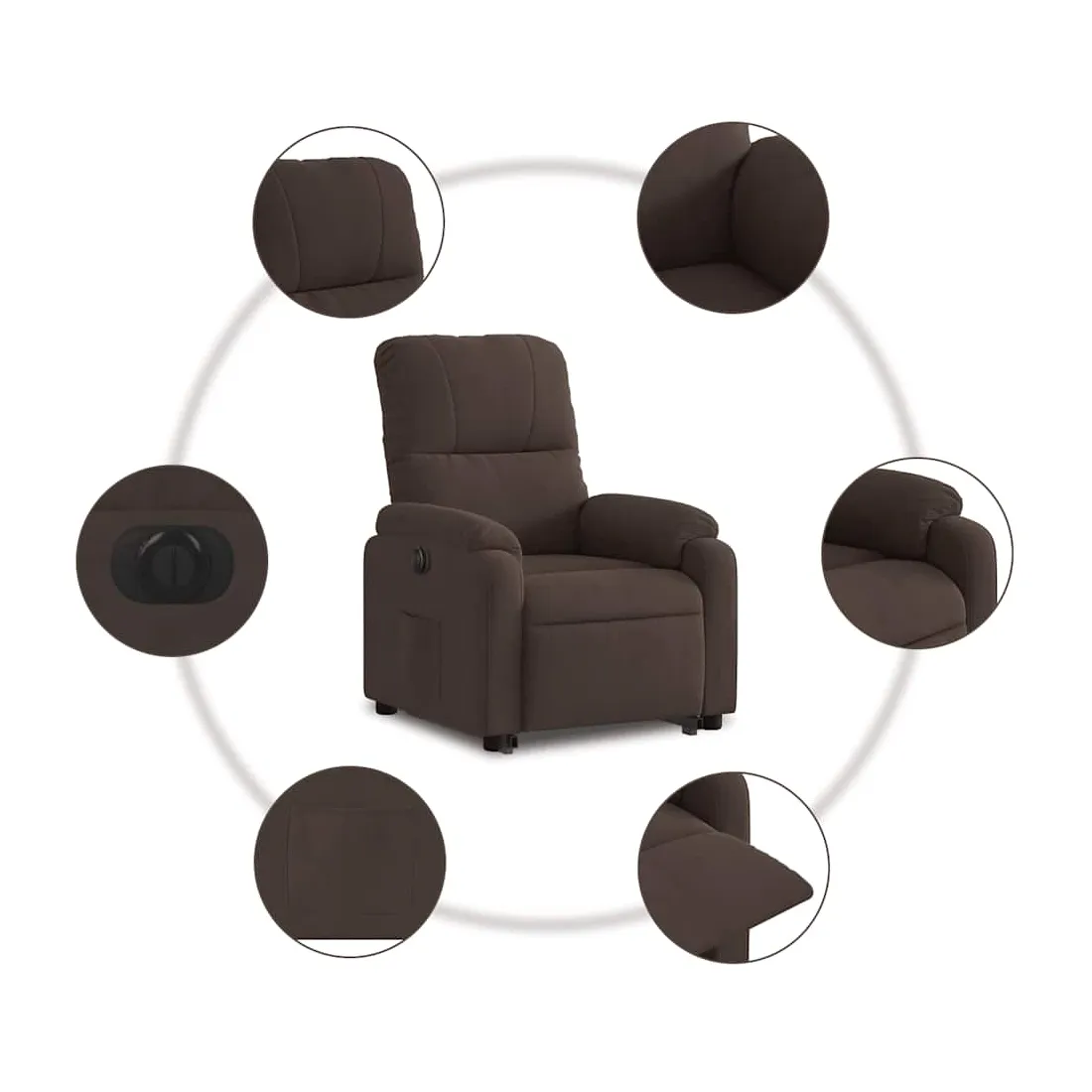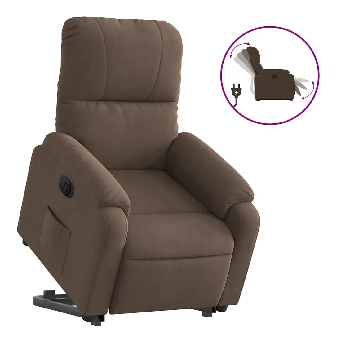 Asseyez-vous et détendez-vous dans ce fauteuil inclinable électrique très confortable ! Fonction de levage électrique : ce fauteuil inclinable pour personnes âgées est équipé d'un moteur électrique pour la fonction de levage. Grâce à la fonction qui pousse toute la chaise vers le haut, vous pouvez facilement vous tenir debout sans stresser votre dos et vos genoux en appuyant simplement sur le bouton.Fonction d'inclinaison électrique : ce fauteuil inclinable est également équipé d'un moteur électrique qui permet de régler automatiquement le repose-pied et le dossier dans n'importe quelle position, selon votre confort, en appuyant simplement sur le bouton situé sur le côté du fauteuil. Cette fonction permet une inclinaison maximale de 135 degrés. En outre, le dossier peut revenir automatiquement à sa position d'origine par une simple pression sur le bouton.Expérience d'assise confortable : l'assise, le dossier et les larges accoudoirs recouverts de microfibres et dotés d'un rembourrage épais procurent une sensation de confort et de chaleur, vous permettant de vous sentir enveloppé lorsque vous êtes assis. La microfibre est un tissu synthétique composé de fibres ultrafines, particulièrement imperméables aux taches. La microfibre est un excellent choix pour le revêtement des meubles en raison de sa durabilité et de sa facilité d'entretien.Poche latérale pratique : ce fauteuil est doté d'une poche latérale pour vous permettre de garder vos objets essentiels à portée de main.Cadre solide et stable : le cadre en bois et en métal offre une structure solide et une grande stabilité. Ce fauteuil inclinable est confortable et durable.