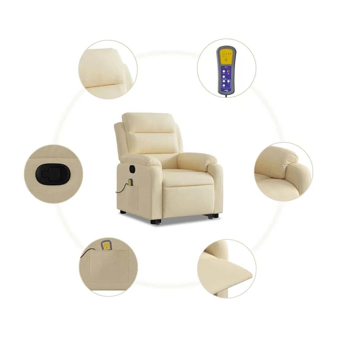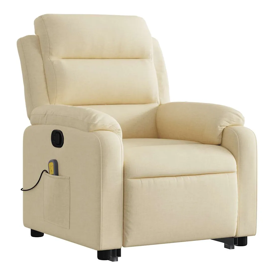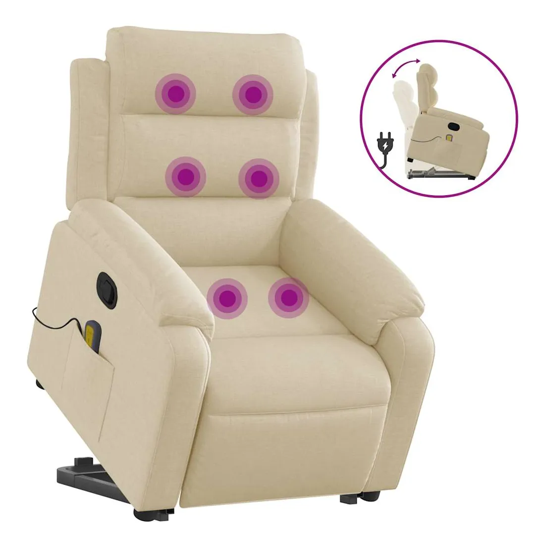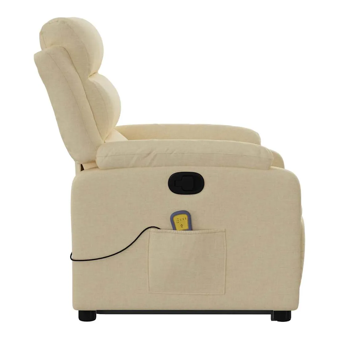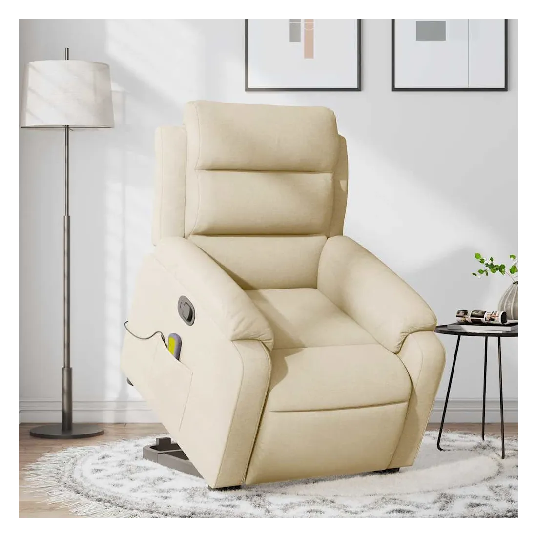 Asseyez-vous et détendez-vous dans ce fauteuil inclinable de massage très confortable ! Fonction de levage électrique : ce fauteuil inclinable pour personnes âgées est équipé d'un moteur électrique pour la fonction de levage. Grâce à la fonction qui pousse toute la chaise vers le haut, vous pouvez facilement vous tenir debout sans stresser votre dos et vos genoux en appuyant simplement sur le bouton.Fonction d'inclinaison manuelle : ce fauteuil inclinable est doté d'une poignée du côté droit. Vous pouvez régler manuellement le repose-pieds et le dossier dans n'importe quelle position selon votre confort en tirant simplement sur la poignée. Cette fonction permet une inclinaison maximale de 135 degrés. De plus, le dossier peut revenir rapidement à sa position d'origine en tirant simplement sur la poignée.Fonction de vibration : les 6 points de massage vous permettent de faire l'expérience d'un massage mieux ciblé. De plus, la télécommande incluse vous permet de choisir différents programmes de massage. La fonction de massage est alimentée par le connecteur USB qui nécessite une source d'alimentation USB certifiée de 5 V (non fournie).Expérience d'assise confortable : le siège, le dossier et les larges accoudoirs bien rembourrés recouverts de tissu procurent une sensation confortable et chaleureuse, vous permettant de vous sentir enveloppé lorsque vous êtes assis. Le tissu présente un aspect simple et épuré et est respirant et durable.Poche latérale pratique : ce fauteuil est doté d'une poche latérale pour ranger votre télécommande ou garder vos objets essentiels à portée de main.Cadre solide et stable : le cadre en bois et en métal offre une structure solide et une grande stabilité. Ce fauteuil inclinable est confortable et durable.