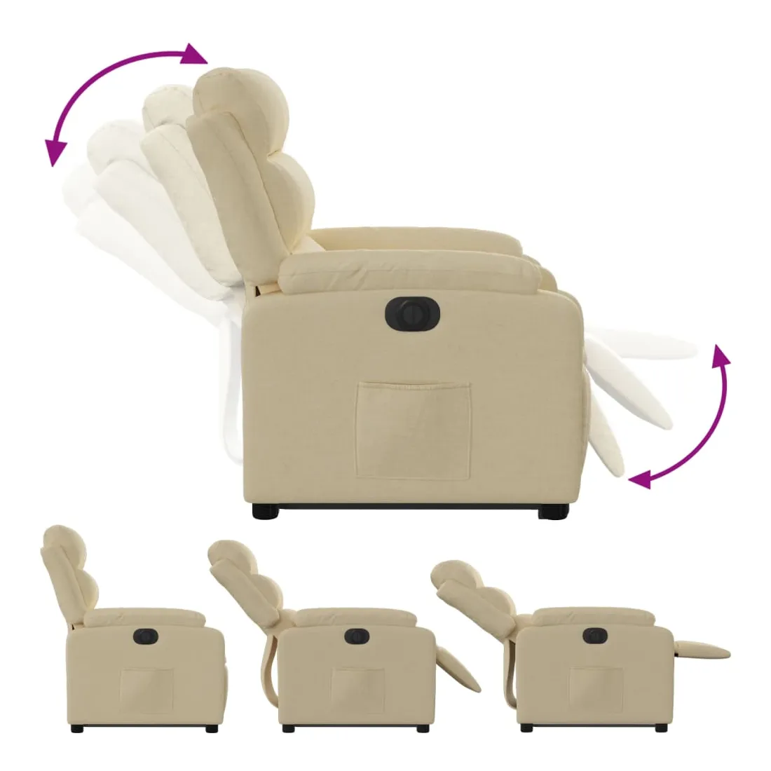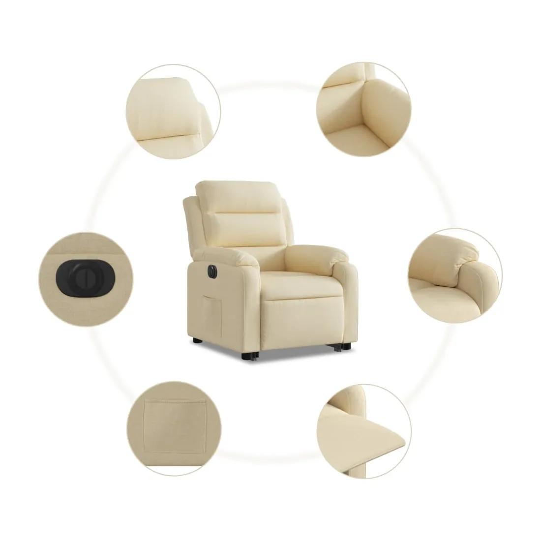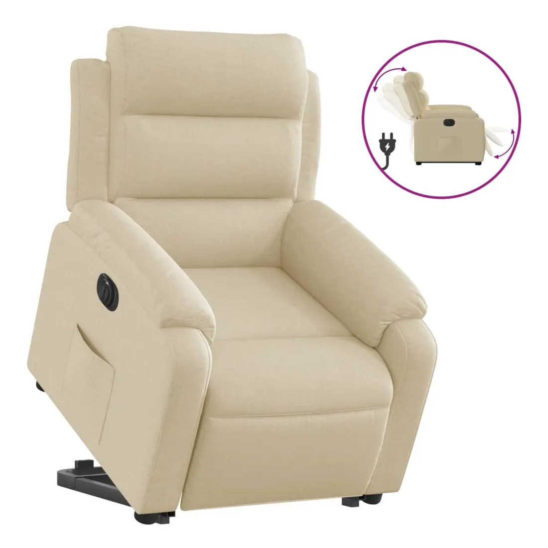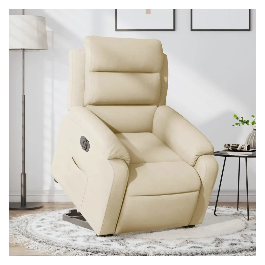 Asseyez-vous et détendez-vous dans ce fauteuil inclinable électrique très confortable ! Fonction de levage électrique : ce fauteuil inclinable pour personnes âgées est équipé d'un moteur électrique pour la fonction de levage. Grâce à la fonction qui pousse toute la chaise vers le haut, vous pouvez facilement vous tenir debout sans stresser votre dos et vos genoux en appuyant simplement sur le bouton.Fonction d'inclinaison électrique : ce fauteuil inclinable est également équipé d'un moteur électrique qui permet de régler automatiquement le repose-pied et le dossier dans n'importe quelle position, selon votre confort, en appuyant simplement sur le bouton situé sur le côté du fauteuil. Cette fonction permet une inclinaison maximale de 135 degrés. En outre, le dossier peut revenir automatiquement à sa position d'origine par une simple pression sur le bouton.Expérience d'assise confortable : le siège, le dossier et les larges accoudoirs bien rembourrés recouverts de tissu procurent une sensation confortable et chaleureuse, vous permettant de vous sentir enveloppé lorsque vous êtes assis. Le tissu présente un aspect simple et épuré et est respirant et durable.Poche latérale pratique : ce fauteuil est doté d'une poche latérale pour vous permettre de garder vos objets essentiels à portée de main.Cadre solide et stable : le cadre en bois et en métal offre une structure solide et une grande stabilité. Ce fauteuil inclinable est confortable et durable.