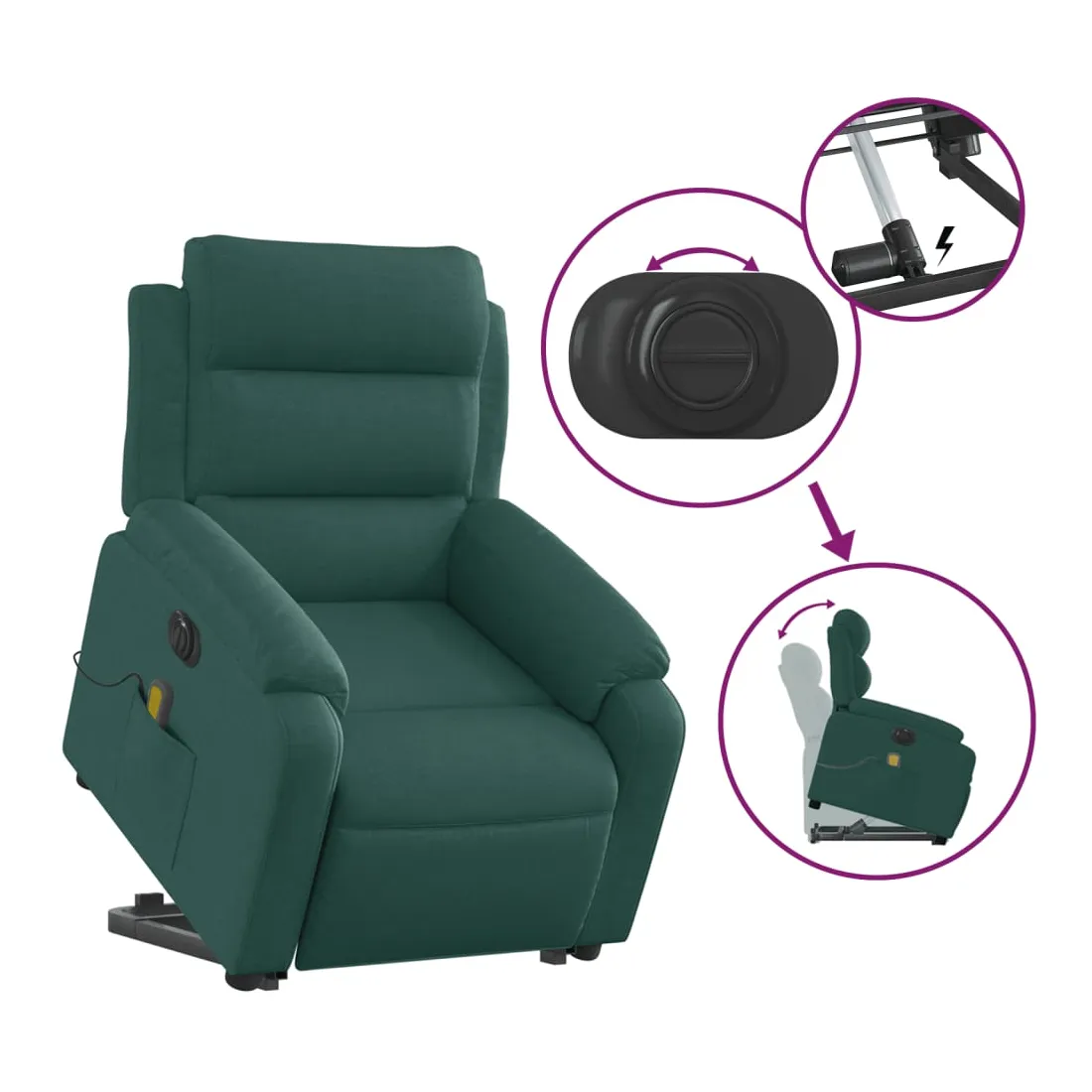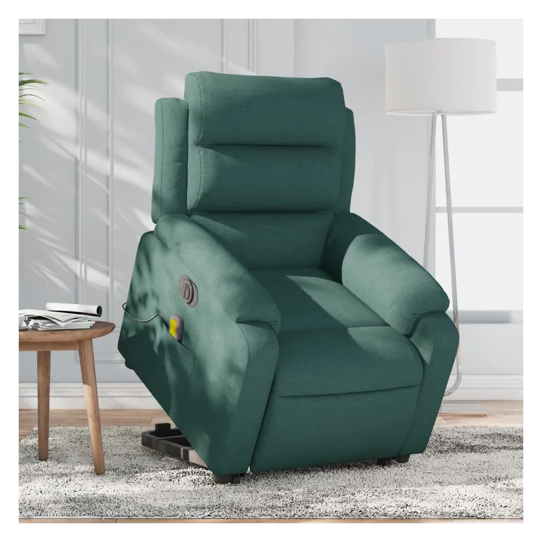 Asseyez-vous et détendez-vous dans ce fauteuil inclinable de massage électrique très confortable ! Fonction de levage électrique : ce fauteuil inclinable pour personnes âgées est équipé d'un moteur électrique pour la fonction de levage. Grâce à la fonction qui pousse toute la chaise vers le haut, vous pouvez facilement vous tenir debout sans stresser votre dos et vos genoux en appuyant simplement sur le bouton.Fonction d'inclinaison électrique : ce fauteuil inclinable est également équipé d'un moteur électrique qui permet de régler automatiquement le repose-pied et le dossier dans n'importe quelle position, selon votre confort, en appuyant simplement sur le bouton situé sur le côté du fauteuil. Cette fonction permet une inclinaison maximale de 135 degrés. En outre, le dossier peut revenir automatiquement à sa position d'origine par une simple pression sur le bouton.Fonction de vibration : les 6 points de massage vous permettent de faire l'expérience d'un massage mieux ciblé. De plus, la télécommande incluse vous permet de choisir différents programmes de massage. La fonction de massage est alimentée par le connecteur USB qui nécessite une source d'alimentation USB certifiée de 5 V (non fournie).Expérience d'assise confortable : le siège, le dossier et les larges accoudoirs bien rembourrés recouverts de tissu procurent une sensation confortable et chaleureuse, vous permettant de vous sentir enveloppé lorsque vous êtes assis. Le tissu présente un aspect simple et épuré et est respirant et durable.Poche latérale pratique : ce fauteuil est doté d'une poche latérale pour ranger votre télécommande ou garder vos objets essentiels à portée de main.Cadre solide et stable : le cadre en bois et en métal offre une structure solide et une grande stabilité. Ce fauteuil inclinable est confortable et durable.