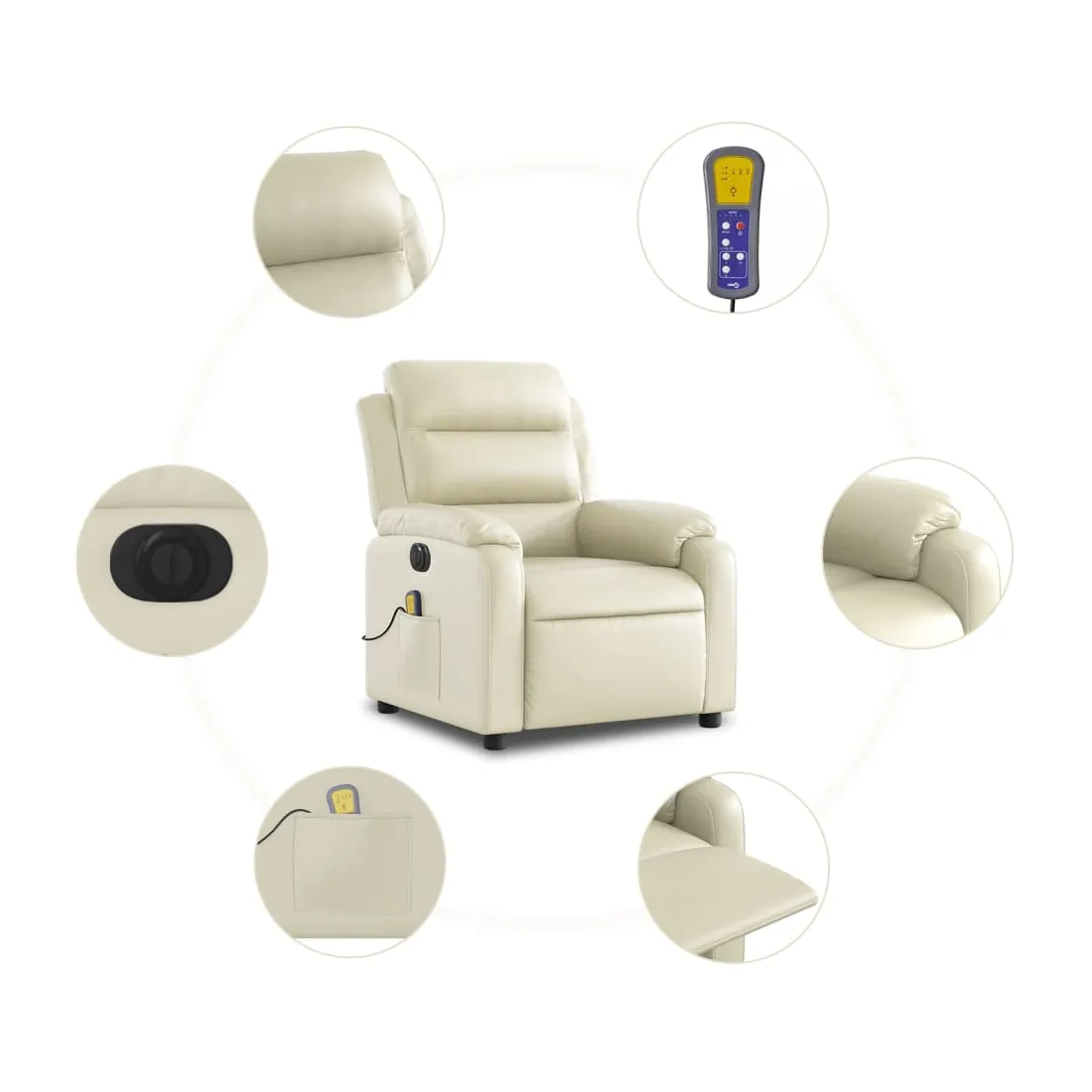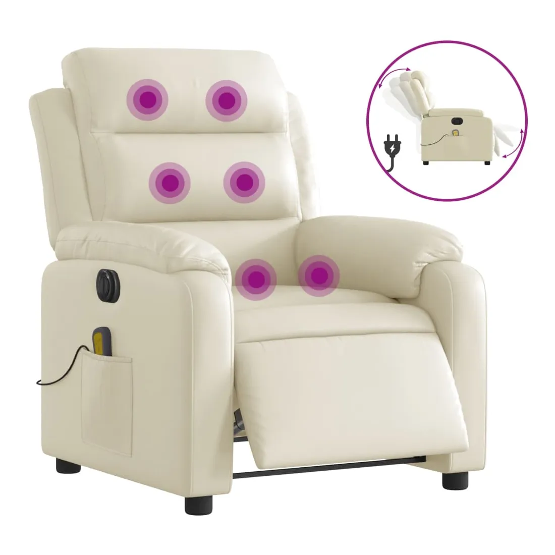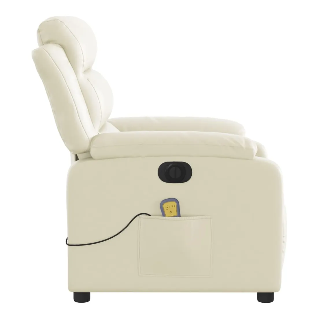Asseyez-vous et détendez-vous dans ce fauteuil inclinable de massage électrique très confortable ! Fonction d'inclinaison électrique : ce fauteuil inclinable est équipé d'un moteur électrique qui permet de régler automatiquement le repose-pied et le dossier dans n'importe quelle position, selon votre confort, en appuyant simplement sur le bouton situé sur le côté du fauteuil. Cette fonction permet une inclinaison maximale de 135 degrés. En outre, le dossier peut revenir automatiquement à sa position d'origine par une simple pression sur le bouton.Fonction de vibration : les 6 points de massage vous permettent de faire l'expérience d'un massage mieux ciblé. De plus, la télécommande incluse vous permet de choisir différents programmes de massage. La fonction de massage est alimentée par le connecteur USB qui nécessite une source d'alimentation USB certifiée de 5 V (non fournie).Expérience de siège confortable : le siège, le dossier et les larges accoudoirs rembourrés épais recouverts de similicuir procurent une sensation confortable et chaleureuse, vous faisant vous sentir enlacé lorsque vous êtes assis. Le simili cuir est un matériau très résistant. Il est résistant aux taches, ce qui le rend facile à nettoyer avec un chiffon humide. La surface lisse donne également un aspect luxueux et la beauté du cuir véritable.Poche latérale pratique : ce fauteuil est doté d'une poche latérale pour ranger votre télécommande ou garder vos objets essentiels à portée de main.Cadre solide et stable : le cadre en bois et en métal offre une structure solide et une grande stabilité. Ce fauteuil inclinable est confortable et durable.