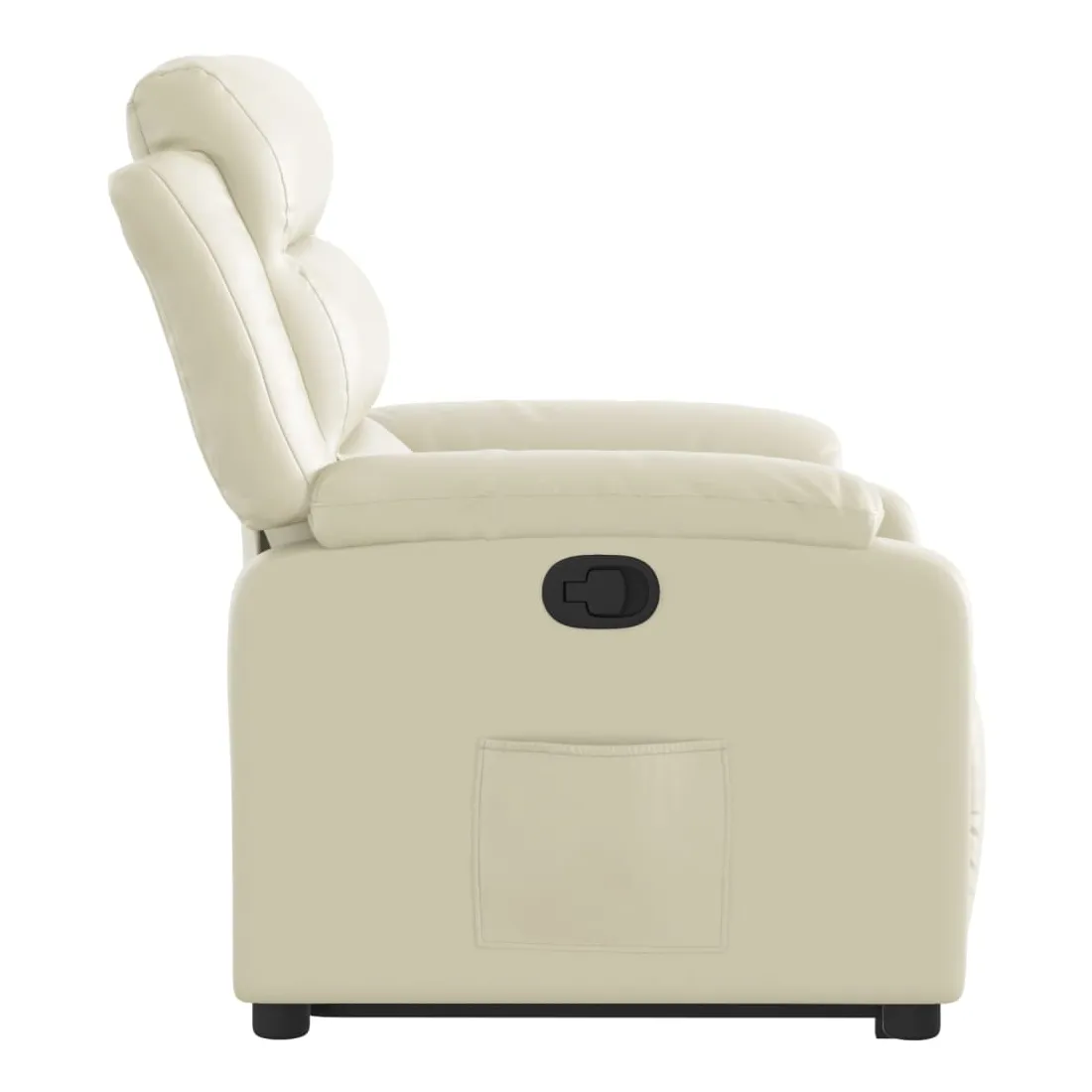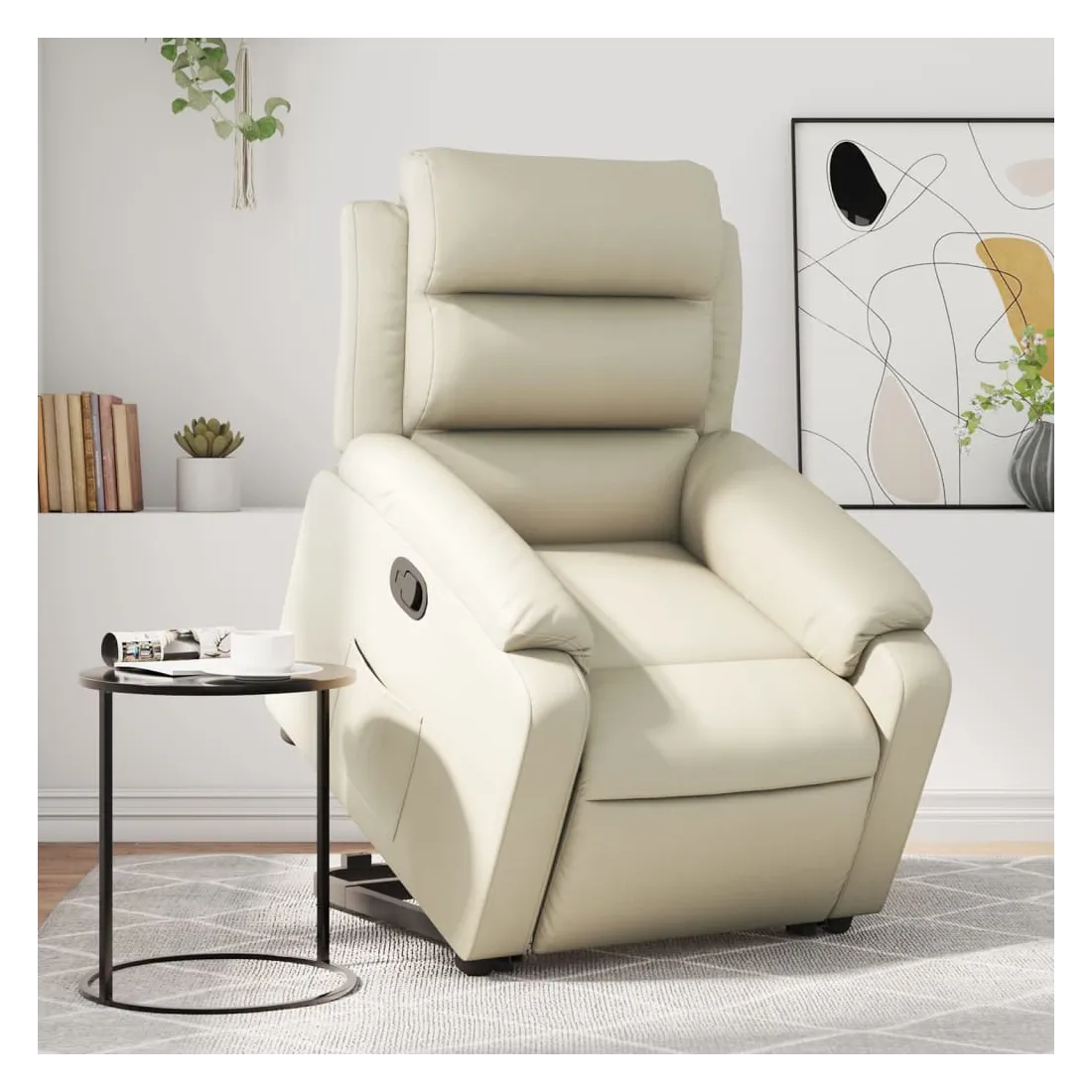 Asseyez-vous et détendez-vous dans ce fauteuil inclinable très confortable ! Fonction de levage électrique : ce fauteuil inclinable pour personnes âgées est équipé d'un moteur électrique pour la fonction de levage. Grâce à la fonction qui pousse toute la chaise vers le haut, vous pouvez facilement vous tenir debout sans stresser votre dos et vos genoux en appuyant simplement sur le bouton.Fonction d'inclinaison manuelle : ce fauteuil inclinable est doté d'une poignée du côté droit. Vous pouvez régler manuellement le repose-pieds et le dossier dans n'importe quelle position selon votre confort en tirant simplement sur la poignée. Cette fonction permet une inclinaison maximale de 135 degrés. De plus, le dossier peut revenir rapidement à sa position d'origine en tirant simplement sur la poignée.Expérience de siège confortable : le siège, le dossier et les larges accoudoirs rembourrés épais recouverts de similicuir procurent une sensation confortable et chaleureuse, vous faisant vous sentir enlacé lorsque vous êtes assis. Le simili cuir est un matériau très résistant. Il est résistant aux taches, ce qui le rend facile à nettoyer avec un chiffon humide. La surface lisse donne également un aspect luxueux et la beauté du cuir véritable.Poche latérale pratique : ce fauteuil est doté d'une poche latérale pour vous permettre de garder vos objets essentiels à portée de main.Cadre solide et stable : le cadre en bois et en métal offre une structure solide et une grande stabilité. Ce fauteuil inclinable est confortable et durable.