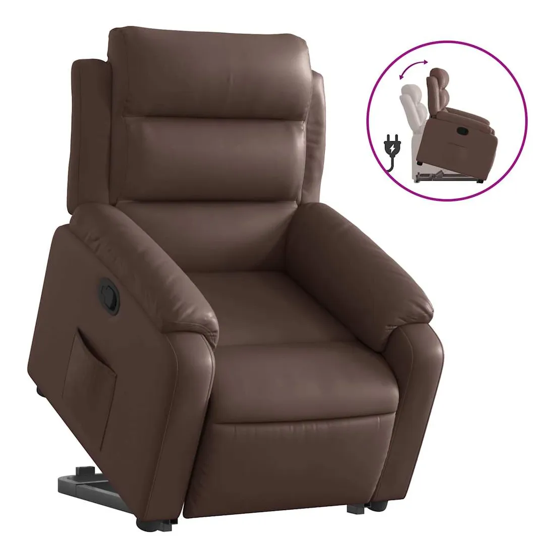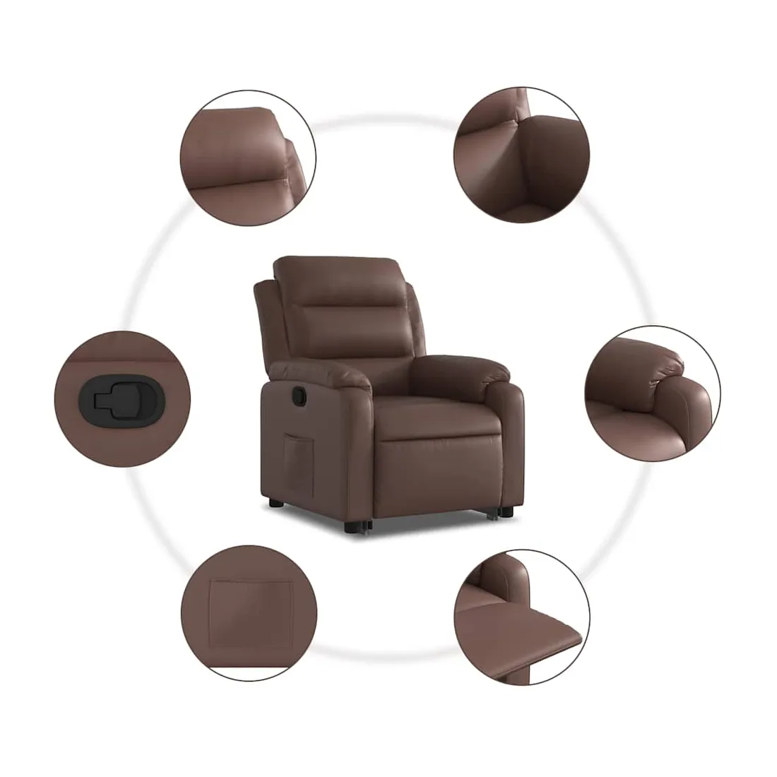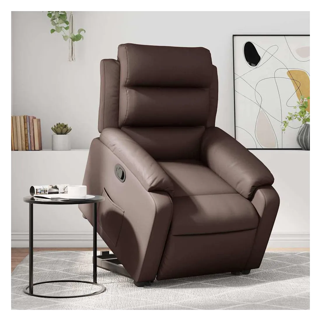 Asseyez-vous et détendez-vous dans ce fauteuil inclinable très confortable ! Fonction de levage électrique : ce fauteuil inclinable pour personnes âgées est équipé d'un moteur électrique pour la fonction de levage. Grâce à la fonction qui pousse toute la chaise vers le haut, vous pouvez facilement vous tenir debout sans stresser votre dos et vos genoux en appuyant simplement sur le bouton.Fonction d'inclinaison manuelle : ce fauteuil inclinable est doté d'une poignée du côté droit. Vous pouvez régler manuellement le repose-pieds et le dossier dans n'importe quelle position selon votre confort en tirant simplement sur la poignée. Cette fonction permet une inclinaison maximale de 135 degrés. De plus, le dossier peut revenir rapidement à sa position d'origine en tirant simplement sur la poignée.Expérience de siège confortable : le siège, le dossier et les larges accoudoirs rembourrés épais recouverts de similicuir procurent une sensation confortable et chaleureuse, vous faisant vous sentir enlacé lorsque vous êtes assis. Le simili cuir est un matériau très résistant. Il est résistant aux taches, ce qui le rend facile à nettoyer avec un chiffon humide. La surface lisse donne également un aspect luxueux et la beauté du cuir véritable.Poche latérale pratique : ce fauteuil est doté d'une poche latérale pour vous permettre de garder vos objets essentiels à portée de main.Cadre solide et stable : le cadre en bois et en métal offre une structure solide et une grande stabilité. Ce fauteuil inclinable est confortable et durable.