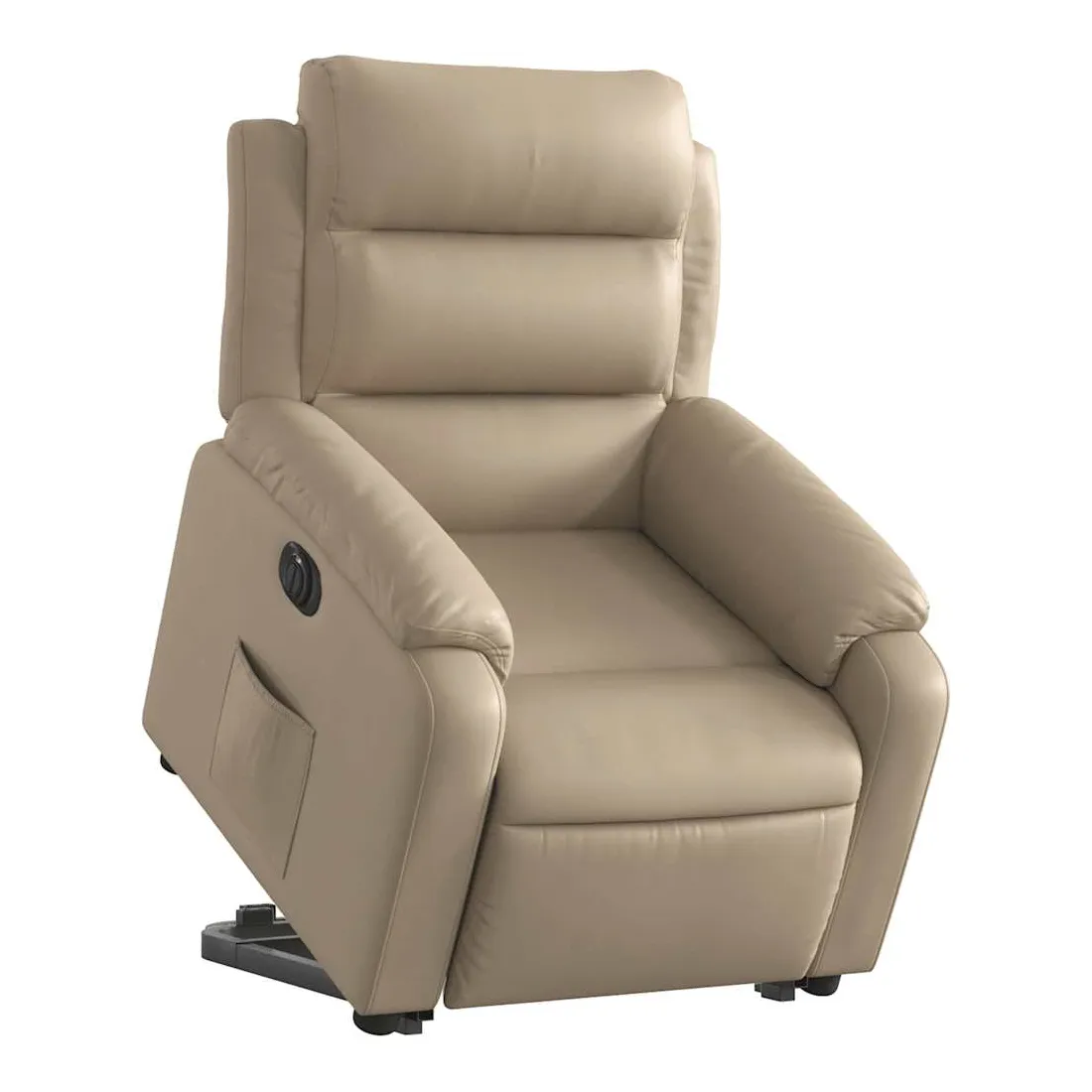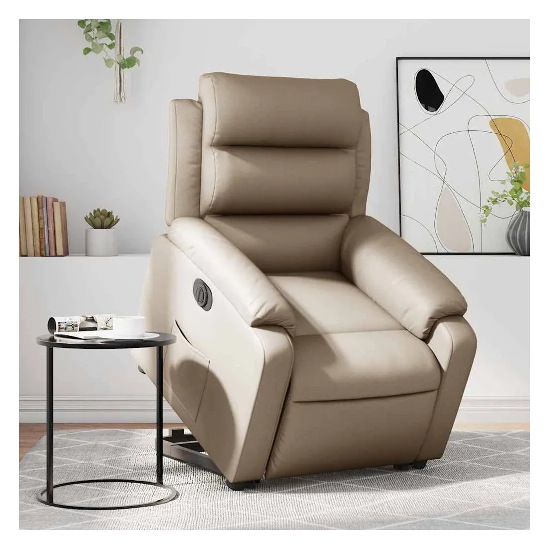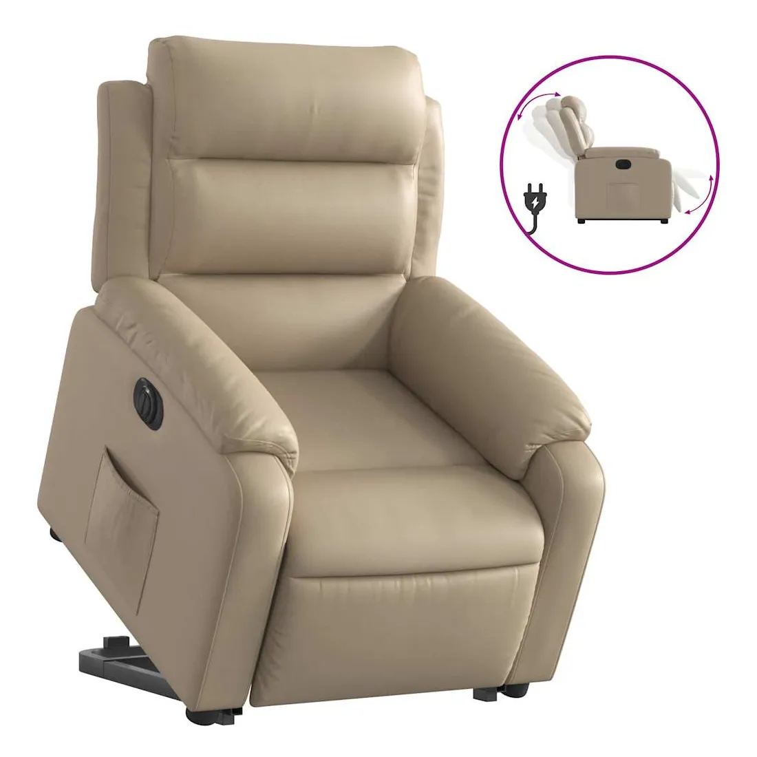 Asseyez-vous et détendez-vous dans ce fauteuil inclinable électrique très confortable ! Fonction de levage électrique : ce fauteuil inclinable pour personnes âgées est équipé d'un moteur électrique pour la fonction de levage. Grâce à la fonction qui pousse toute la chaise vers le haut, vous pouvez facilement vous tenir debout sans stresser votre dos et vos genoux en appuyant simplement sur le bouton.Fonction d'inclinaison électrique : ce fauteuil inclinable est également équipé d'un moteur électrique qui permet de régler automatiquement le repose-pied et le dossier dans n'importe quelle position, selon votre confort, en appuyant simplement sur le bouton situé sur le côté du fauteuil. Cette fonction permet une inclinaison maximale de 135 degrés. En outre, le dossier peut revenir automatiquement à sa position d'origine par une simple pression sur le bouton.Expérience de siège confortable : le siège, le dossier et les larges accoudoirs rembourrés épais recouverts de similicuir procurent une sensation confortable et chaleureuse, vous faisant vous sentir enlacé lorsque vous êtes assis. Le simili cuir est un matériau très résistant. Il est résistant aux taches, ce qui le rend facile à nettoyer avec un chiffon humide. La surface lisse donne également un aspect luxueux et la beauté du cuir véritable.Poche latérale pratique : ce fauteuil est doté d'une poche latérale pour vous permettre de garder vos objets essentiels à portée de main.Cadre solide et stable : le cadre en bois et en métal offre une structure solide et une grande stabilité. Ce fauteuil inclinable est confortable et durable.