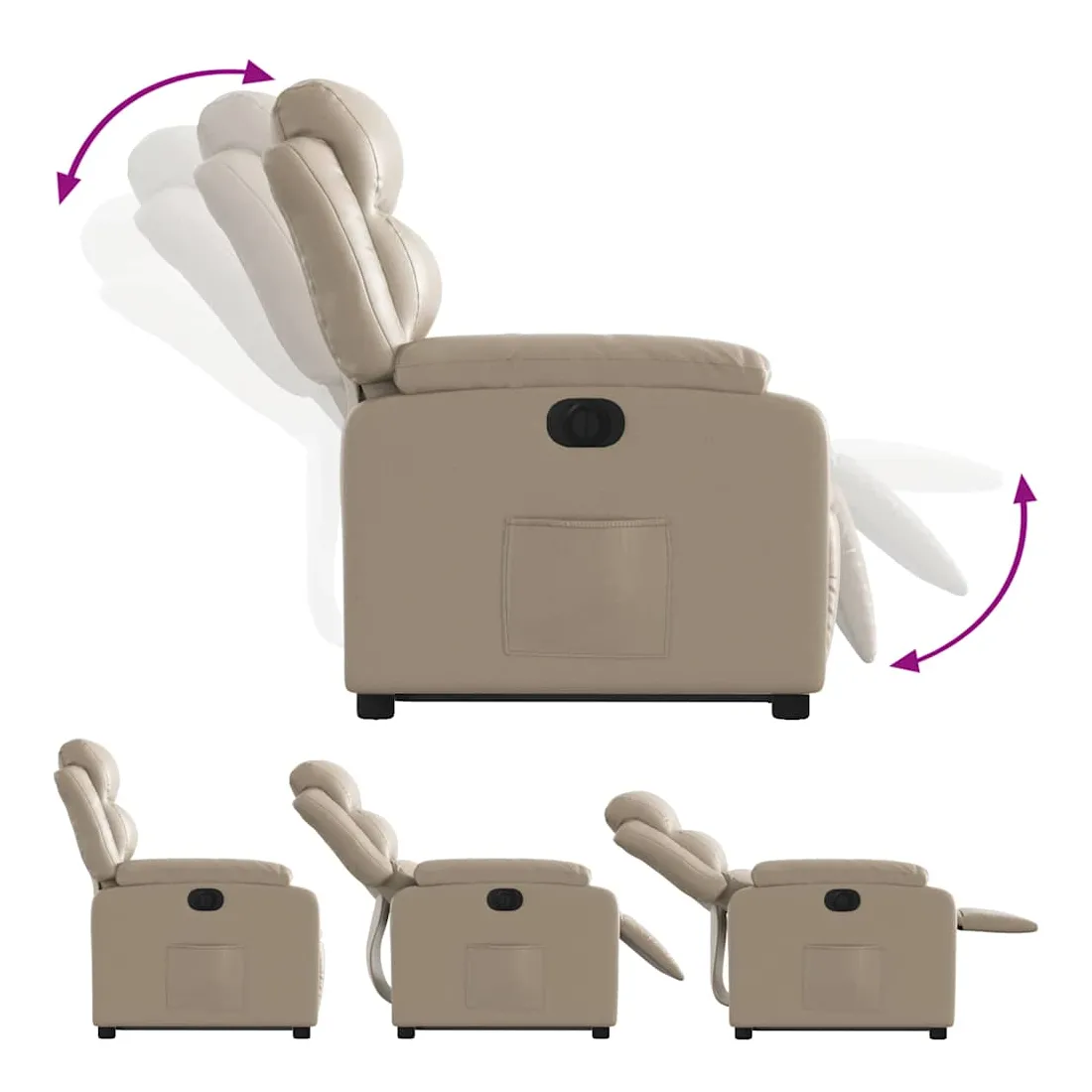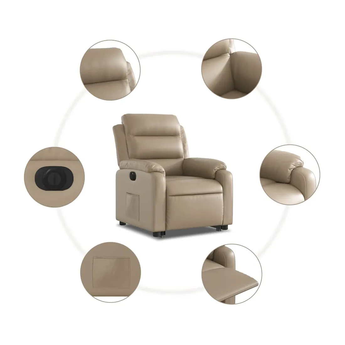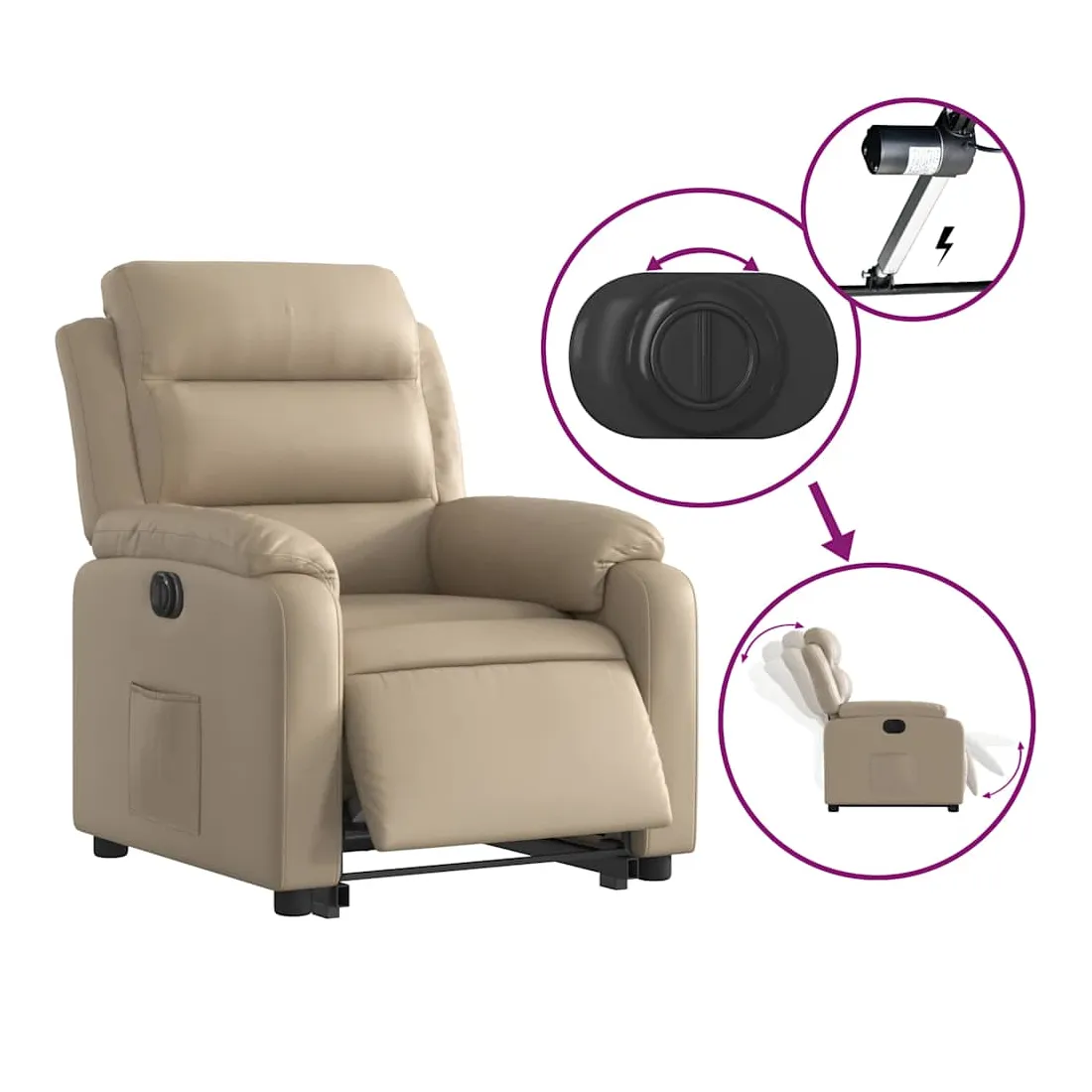 Asseyez-vous et détendez-vous dans ce fauteuil inclinable électrique très confortable ! Fonction de levage électrique : ce fauteuil inclinable pour personnes âgées est équipé d'un moteur électrique pour la fonction de levage. Grâce à la fonction qui pousse toute la chaise vers le haut, vous pouvez facilement vous tenir debout sans stresser votre dos et vos genoux en appuyant simplement sur le bouton.Fonction d'inclinaison électrique : ce fauteuil inclinable est également équipé d'un moteur électrique qui permet de régler automatiquement le repose-pied et le dossier dans n'importe quelle position, selon votre confort, en appuyant simplement sur le bouton situé sur le côté du fauteuil. Cette fonction permet une inclinaison maximale de 135 degrés. En outre, le dossier peut revenir automatiquement à sa position d'origine par une simple pression sur le bouton.Expérience de siège confortable : le siège, le dossier et les larges accoudoirs rembourrés épais recouverts de similicuir procurent une sensation confortable et chaleureuse, vous faisant vous sentir enlacé lorsque vous êtes assis. Le simili cuir est un matériau très résistant. Il est résistant aux taches, ce qui le rend facile à nettoyer avec un chiffon humide. La surface lisse donne également un aspect luxueux et la beauté du cuir véritable.Poche latérale pratique : ce fauteuil est doté d'une poche latérale pour vous permettre de garder vos objets essentiels à portée de main.Cadre solide et stable : le cadre en bois et en métal offre une structure solide et une grande stabilité. Ce fauteuil inclinable est confortable et durable.
