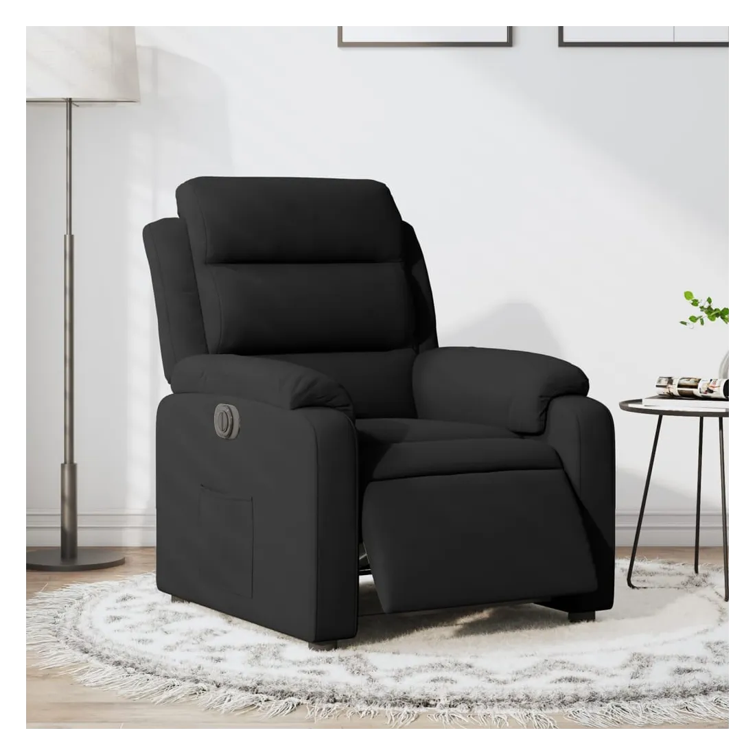 Asseyez-vous et détendez-vous dans ce fauteuil inclinable électrique très confortable ! Fonction d'inclinaison électrique : ce fauteuil inclinable est équipé d'un moteur électrique qui permet de régler automatiquement le repose-pied et le dossier dans n'importe quelle position, selon votre confort, en appuyant simplement sur le bouton situé sur le côté du fauteuil. Cette fonction permet une inclinaison maximale de 135 degrés. En outre, le dossier peut revenir automatiquement à sa position d'origine par une simple pression sur le bouton.Expérience d'assise confortable : le siège, le dossier et les larges accoudoirs rembourrés épais recouverts de velours procurent une sensation confortable et chaleureuse, vous faisant vous sentir enlacé lorsque vous êtes assis. Le velours est un tissu doux et confortable qui est agréable sur la peau.Poche latérale pratique : ce fauteuil est doté d'une poche latérale pour vous permettre de garder vos objets essentiels à portée de main.Cadre solide et stable : le cadre en bois et en métal offre une structure solide et une grande stabilité. Ce fauteuil inclinable est confortable et durable.