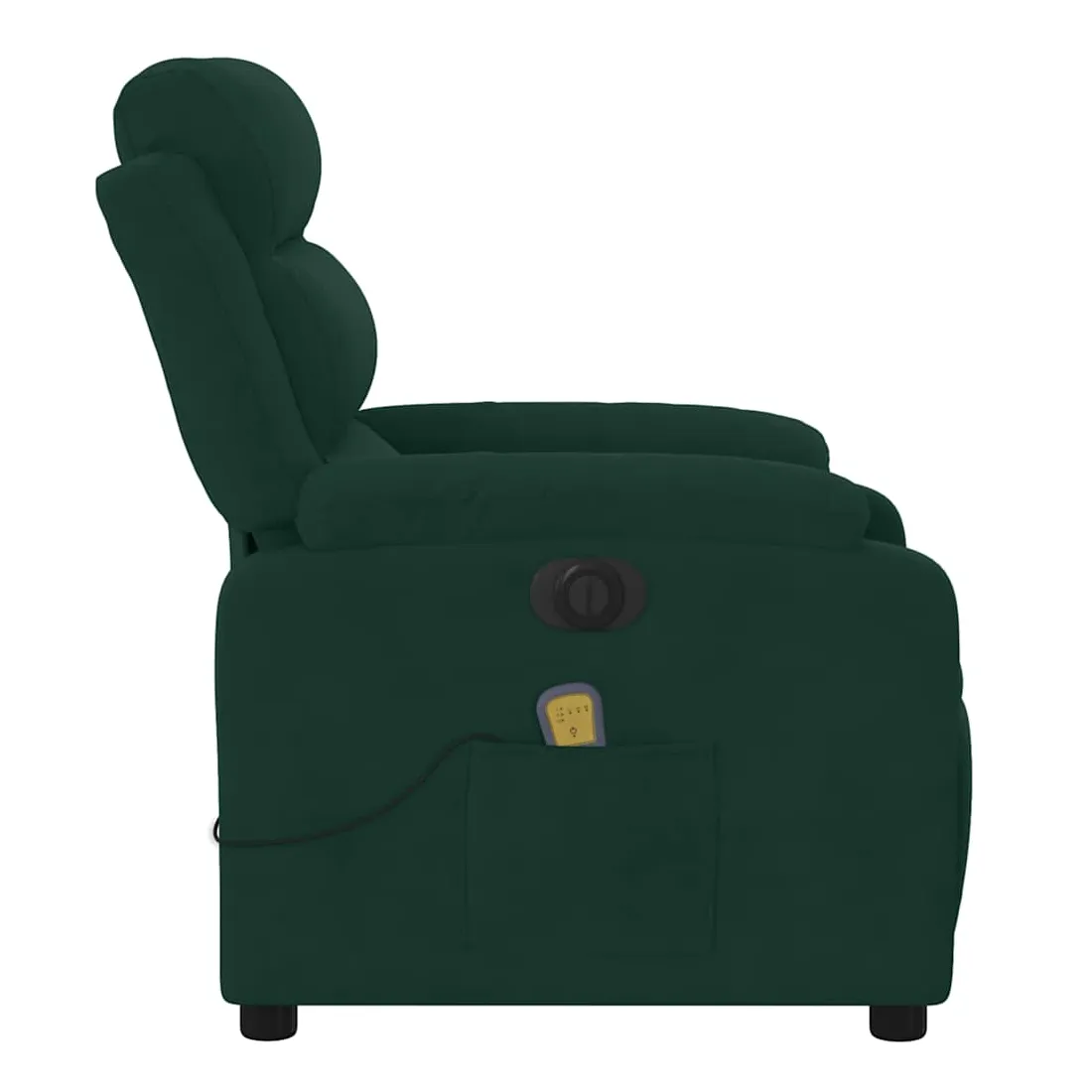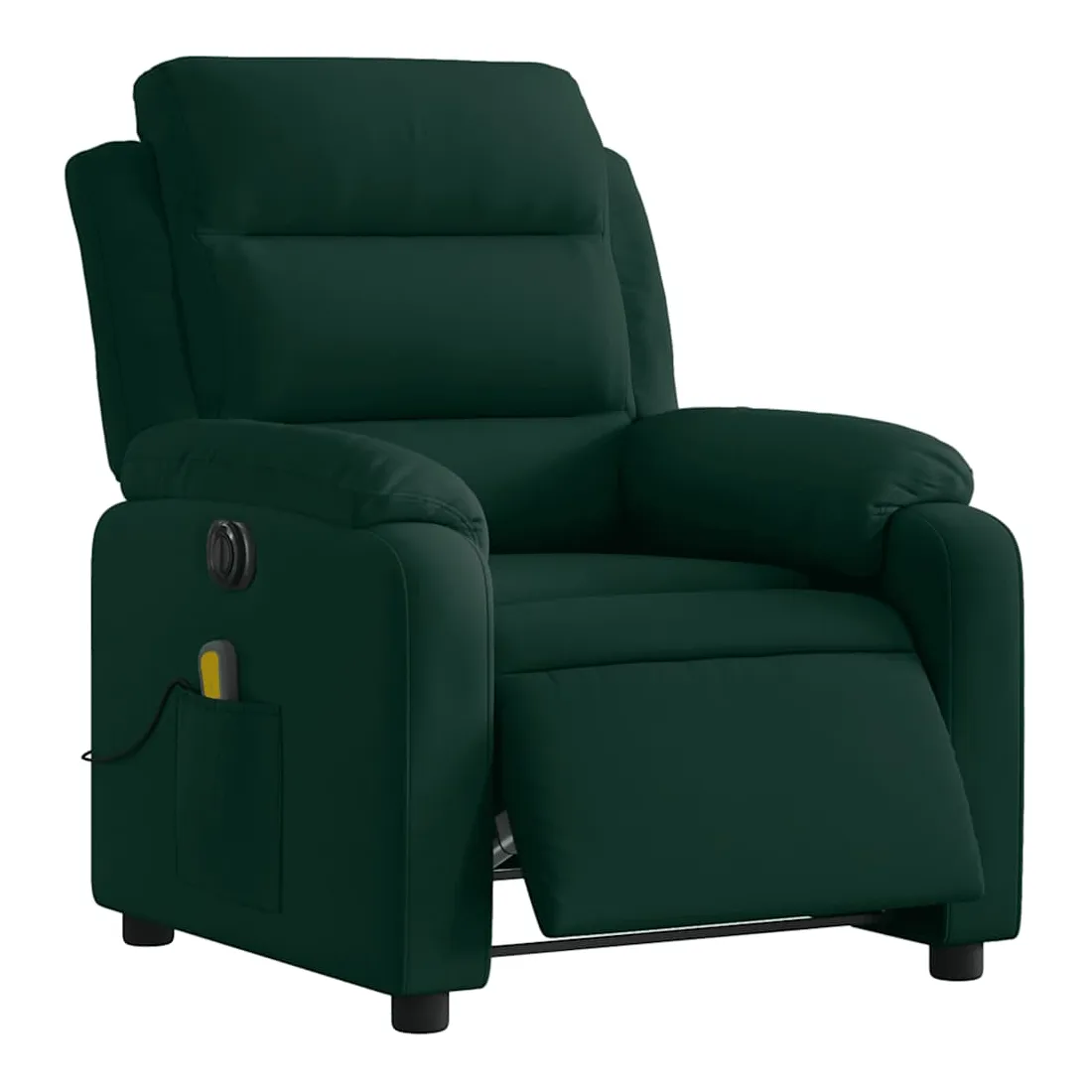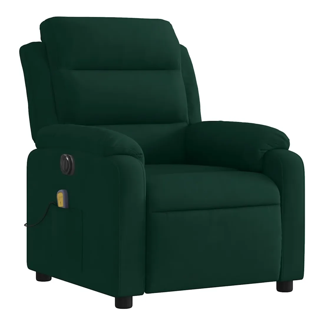 Asseyez-vous et détendez-vous dans ce fauteuil inclinable de massage électrique très confortable ! Fonction d'inclinaison électrique : ce fauteuil inclinable est équipé d'un moteur électrique qui permet de régler automatiquement le repose-pied et le dossier dans n'importe quelle position, selon votre confort, en appuyant simplement sur le bouton situé sur le côté du fauteuil. Cette fonction permet une inclinaison maximale de 135 degrés. En outre, le dossier peut revenir automatiquement à sa position d'origine par une simple pression sur le bouton.Fonction de vibration : les 6 points de massage vous permettent de faire l'expérience d'un massage mieux ciblé. De plus, la télécommande incluse vous permet de choisir différents programmes de massage. La fonction de massage est alimentée par le connecteur USB qui nécessite une source d'alimentation USB certifiée de 5 V (non fournie).Expérience d'assise confortable : le siège, le dossier et les larges accoudoirs rembourrés épais recouverts de velours procurent une sensation confortable et chaleureuse, vous faisant vous sentir enlacé lorsque vous êtes assis. Le velours est un tissu doux et confortable qui est agréable sur la peau.Poche latérale pratique : ce fauteuil est doté d'une poche latérale pour ranger votre télécommande ou garder vos objets essentiels à portée de main.Cadre solide et stable : le cadre en bois et en métal offre une structure solide et une grande stabilité. Ce fauteuil inclinable est confortable et durable.