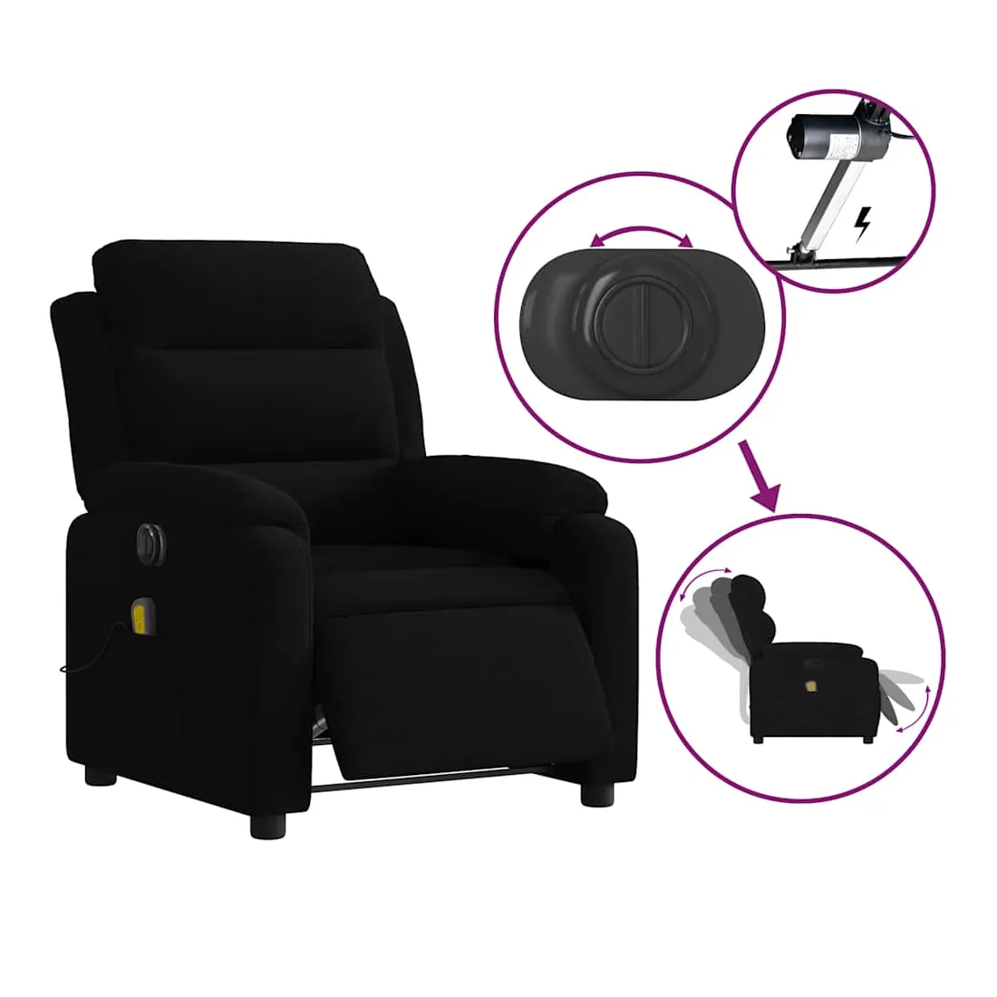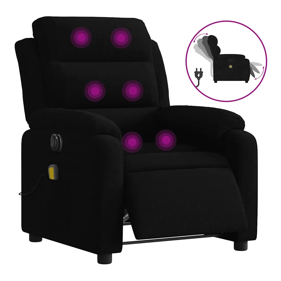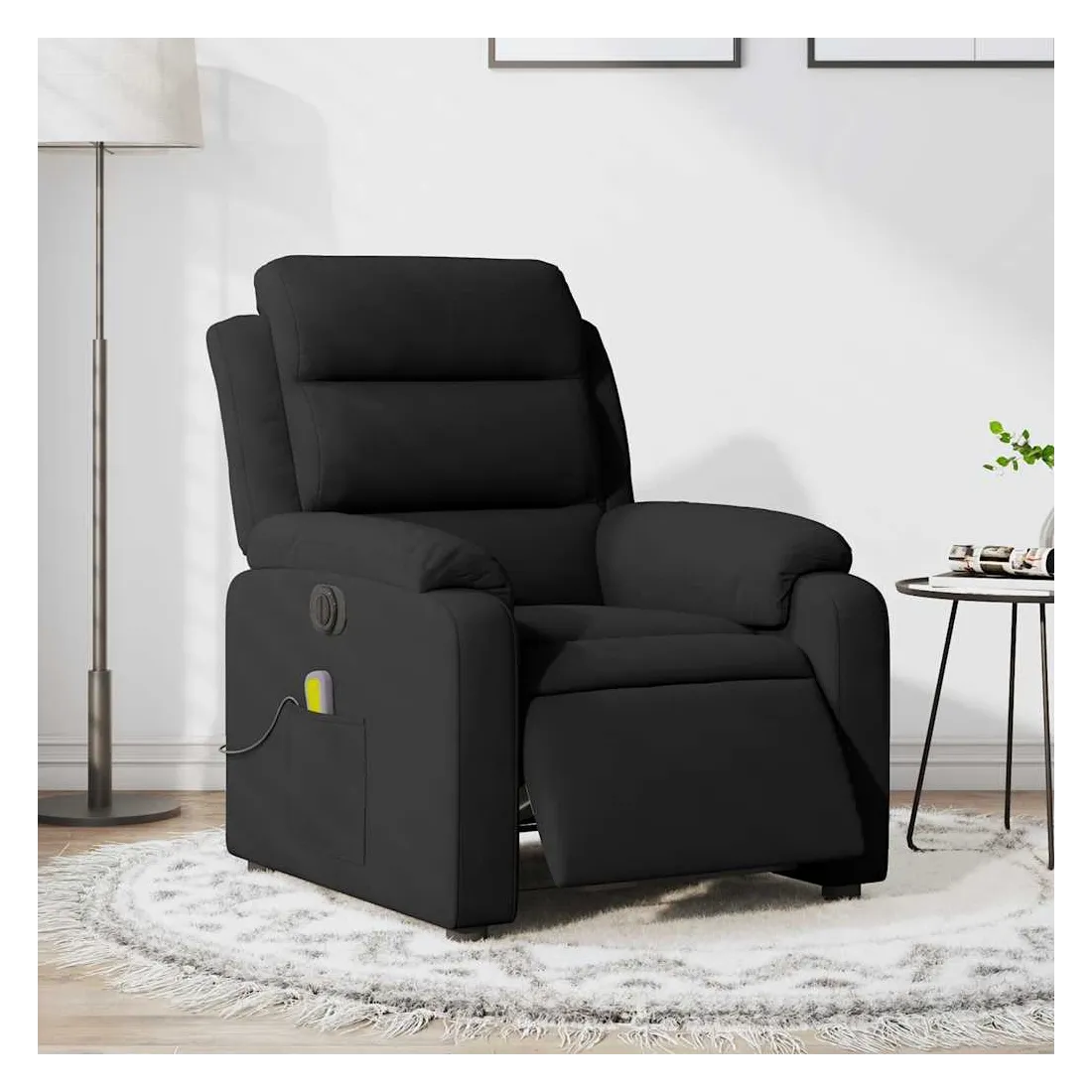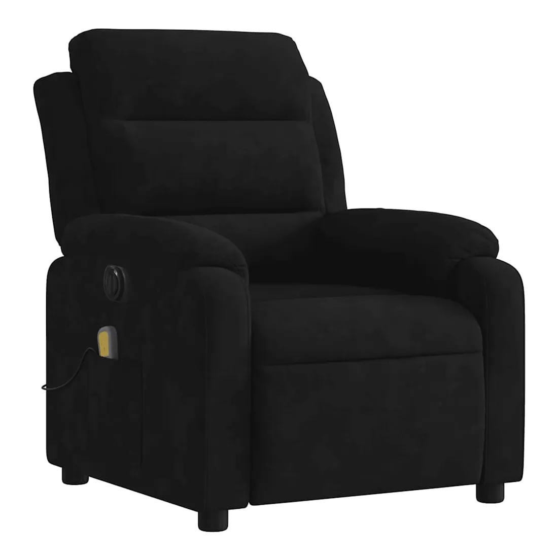 Asseyez-vous et détendez-vous dans ce fauteuil inclinable de massage électrique très confortable ! Fonction d'inclinaison électrique : ce fauteuil inclinable est équipé d'un moteur électrique qui permet de régler automatiquement le repose-pied et le dossier dans n'importe quelle position, selon votre confort, en appuyant simplement sur le bouton situé sur le côté du fauteuil. Cette fonction permet une inclinaison maximale de 135 degrés. En outre, le dossier peut revenir automatiquement à sa position d'origine par une simple pression sur le bouton.Fonction de vibration : les 6 points de massage vous permettent de faire l'expérience d'un massage mieux ciblé. De plus, la télécommande incluse vous permet de choisir différents programmes de massage. La fonction de massage est alimentée par le connecteur USB qui nécessite une source d'alimentation USB certifiée de 5 V (non fournie).Expérience d'assise confortable : le siège, le dossier et les larges accoudoirs rembourrés épais recouverts de velours procurent une sensation confortable et chaleureuse, vous faisant vous sentir enlacé lorsque vous êtes assis. Le velours est un tissu doux et confortable qui est agréable sur la peau.Poche latérale pratique : ce fauteuil est doté d'une poche latérale pour ranger votre télécommande ou garder vos objets essentiels à portée de main.Cadre solide et stable : le cadre en bois et en métal offre une structure solide et une grande stabilité. Ce fauteuil inclinable est confortable et durable.