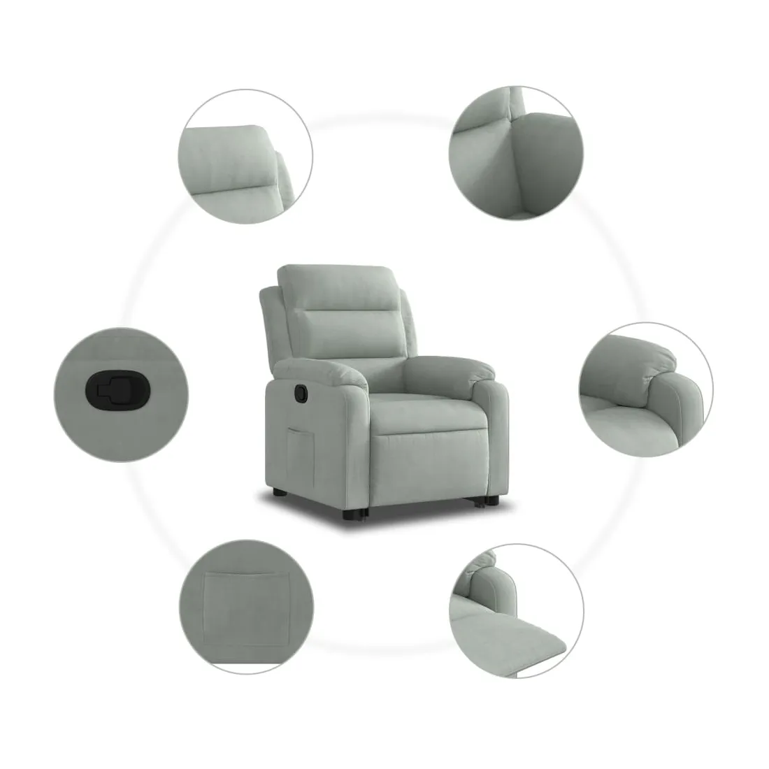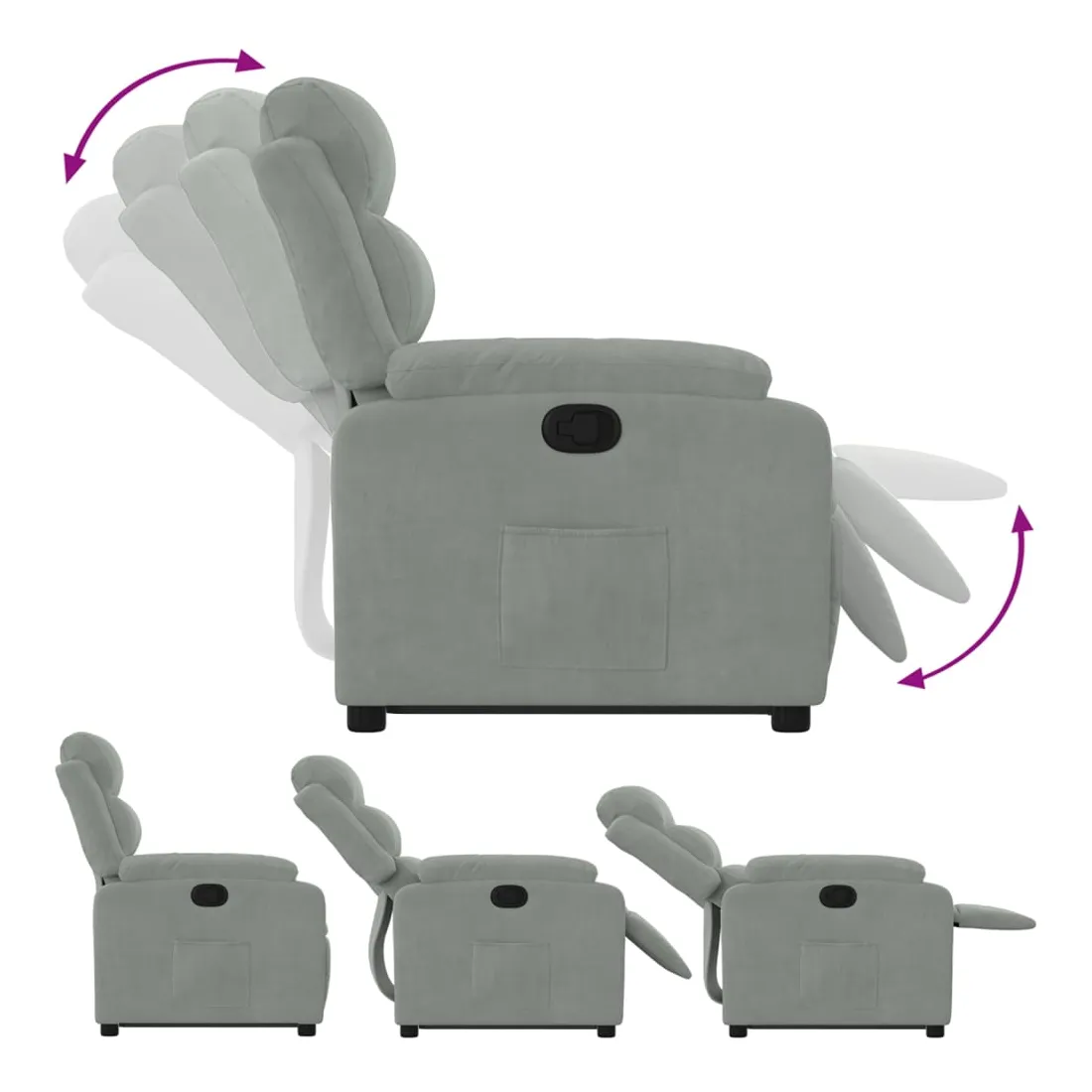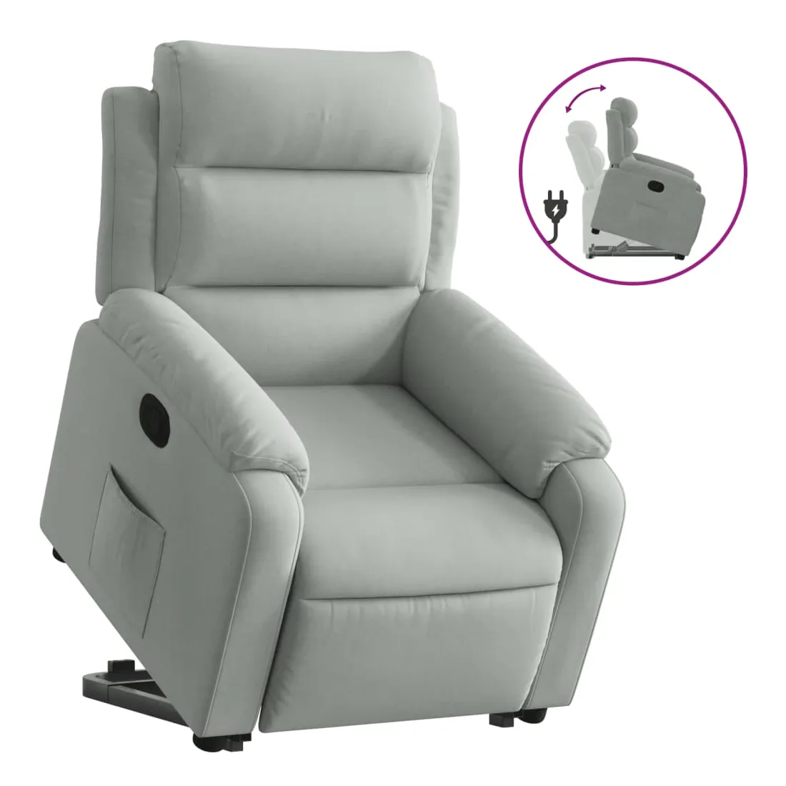 Asseyez-vous et détendez-vous dans ce fauteuil inclinable très confortable ! Fonction de levage électrique : ce fauteuil inclinable pour personnes âgées est équipé d'un moteur électrique pour la fonction de levage. Grâce à la fonction qui pousse toute la chaise vers le haut, vous pouvez facilement vous tenir debout sans stresser votre dos et vos genoux en appuyant simplement sur le bouton.Fonction d'inclinaison manuelle : ce fauteuil inclinable est doté d'une poignée du côté droit. Vous pouvez régler manuellement le repose-pieds et le dossier dans n'importe quelle position selon votre confort en tirant simplement sur la poignée. Cette fonction permet une inclinaison maximale de 135 degrés. De plus, le dossier peut revenir rapidement à sa position d'origine en tirant simplement sur la poignée.Expérience d'assise confortable : le siège, le dossier et les larges accoudoirs rembourrés épais recouverts de velours procurent une sensation confortable et chaleureuse, vous faisant vous sentir enlacé lorsque vous êtes assis. Le velours est un tissu doux et confortable qui est agréable sur la peau.Poche latérale pratique : ce fauteuil est doté d'une poche latérale pour vous permettre de garder vos objets essentiels à portée de main.Cadre solide et stable : le cadre en bois et en métal offre une structure solide et une grande stabilité. Ce fauteuil inclinable est confortable et durable.