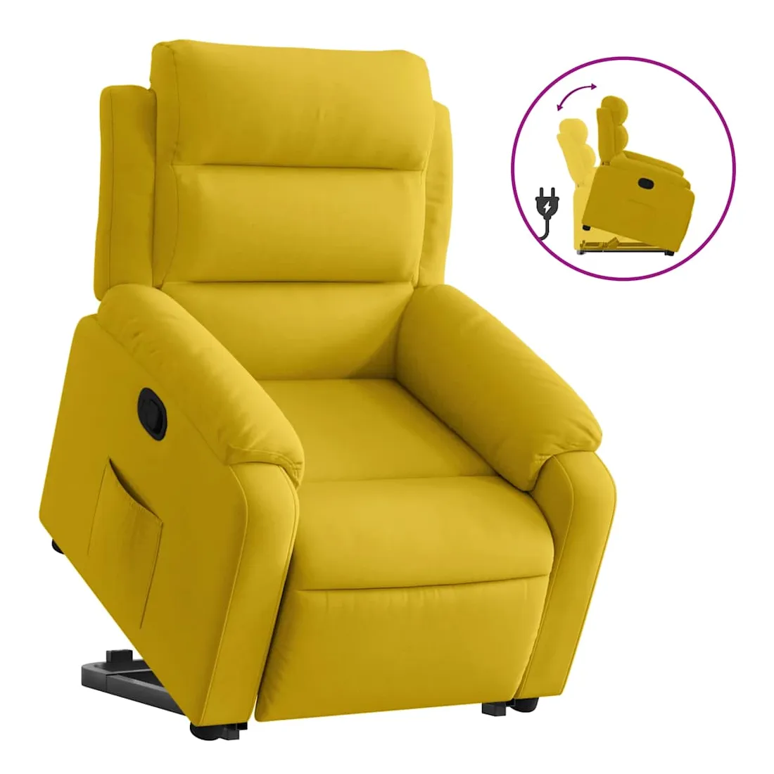 Asseyez-vous et détendez-vous dans ce fauteuil inclinable très confortable ! Fonction de levage électrique : ce fauteuil inclinable pour personnes âgées est équipé d'un moteur électrique pour la fonction de levage. Grâce à la fonction qui pousse toute la chaise vers le haut, vous pouvez facilement vous tenir debout sans stresser votre dos et vos genoux en appuyant simplement sur le bouton.Fonction d'inclinaison manuelle : ce fauteuil inclinable est doté d'une poignée du côté droit. Vous pouvez régler manuellement le repose-pieds et le dossier dans n'importe quelle position selon votre confort en tirant simplement sur la poignée. Cette fonction permet une inclinaison maximale de 135 degrés. De plus, le dossier peut revenir rapidement à sa position d'origine en tirant simplement sur la poignée.Expérience d'assise confortable : le siège, le dossier et les larges accoudoirs rembourrés épais recouverts de velours procurent une sensation confortable et chaleureuse, vous faisant vous sentir enlacé lorsque vous êtes assis. Le velours est un tissu doux et confortable qui est agréable sur la peau.Poche latérale pratique : ce fauteuil est doté d'une poche latérale pour vous permettre de garder vos objets essentiels à portée de main.Cadre solide et stable : le cadre en bois et en métal offre une structure solide et une grande stabilité. Ce fauteuil inclinable est confortable et durable.