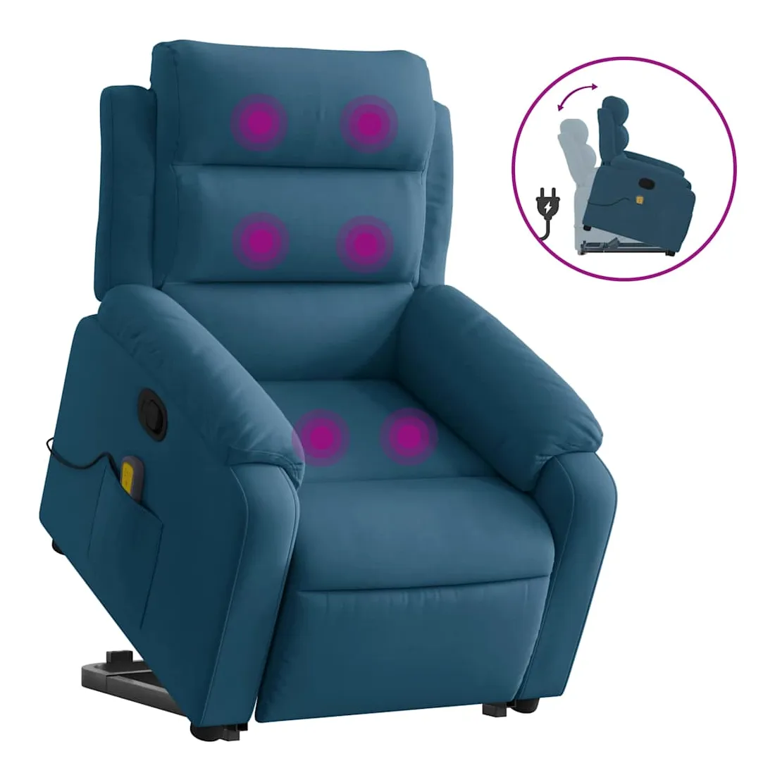 Asseyez-vous et détendez-vous dans ce fauteuil inclinable de massage très confortable ! Fonction de levage électrique : ce fauteuil inclinable pour personnes âgées est équipé d'un moteur électrique pour la fonction de levage. Grâce à la fonction qui pousse toute la chaise vers le haut, vous pouvez facilement vous tenir debout sans stresser votre dos et vos genoux en appuyant simplement sur le bouton.Fonction d'inclinaison manuelle : ce fauteuil inclinable est doté d'une poignée du côté droit. Vous pouvez régler manuellement le repose-pieds et le dossier dans n'importe quelle position selon votre confort en tirant simplement sur la poignée. Cette fonction permet une inclinaison maximale de 135 degrés. De plus, le dossier peut revenir rapidement à sa position d'origine en tirant simplement sur la poignée.Fonction de vibration : les 6 points de massage vous permettent de faire l'expérience d'un massage mieux ciblé. De plus, la télécommande incluse vous permet de choisir différents programmes de massage. La fonction de massage est alimentée par le connecteur USB qui nécessite une source d'alimentation USB certifiée de 5 V (non fournie).Expérience d'assise confortable : le siège, le dossier et les larges accoudoirs rembourrés épais recouverts de velours procurent une sensation confortable et chaleureuse, vous faisant vous sentir enlacé lorsque vous êtes assis. Le velours est un tissu doux et confortable qui est agréable sur la peau.Poche latérale pratique : ce fauteuil est doté d'une poche latérale pour ranger votre télécommande ou garder vos objets essentiels à portée de main.Cadre solide et stable : le cadre en bois et en métal offre une structure solide et une grande stabilité. Ce fauteuil inclinable est confortable et durable.