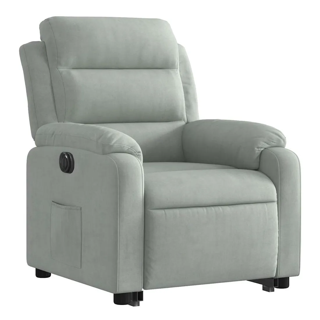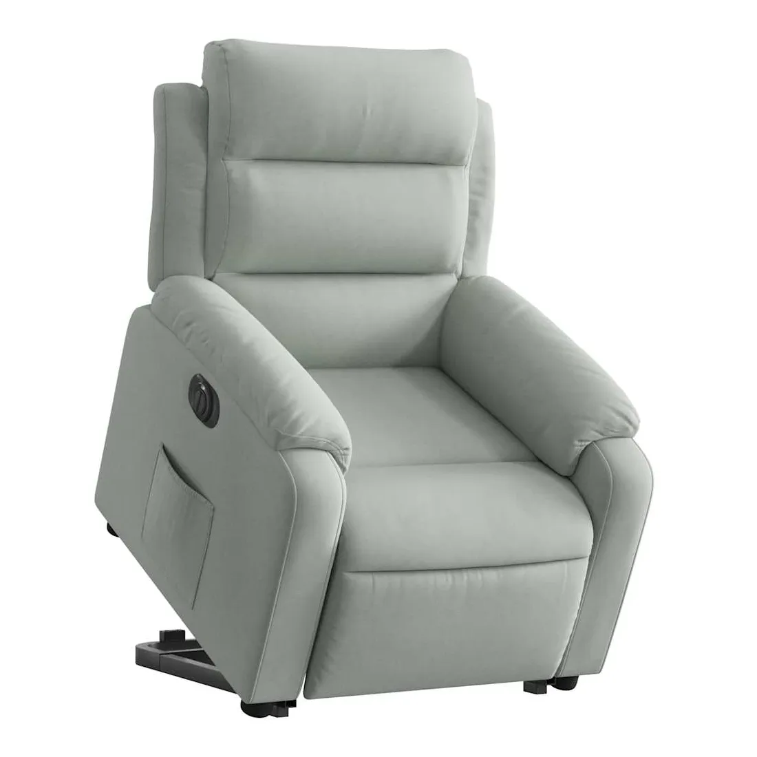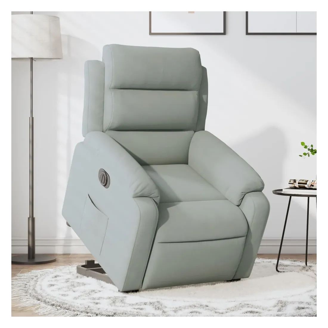 Asseyez-vous et détendez-vous dans ce fauteuil inclinable électrique très confortable ! Fonction de levage électrique : ce fauteuil inclinable pour personnes âgées est équipé d'un moteur électrique pour la fonction de levage. Grâce à la fonction qui pousse toute la chaise vers le haut, vous pouvez facilement vous tenir debout sans stresser votre dos et vos genoux en appuyant simplement sur le bouton.Fonction d'inclinaison électrique : ce fauteuil inclinable est également équipé d'un moteur électrique qui permet de régler automatiquement le repose-pied et le dossier dans n'importe quelle position, selon votre confort, en appuyant simplement sur le bouton situé sur le côté du fauteuil. Cette fonction permet une inclinaison maximale de 135 degrés. En outre, le dossier peut revenir automatiquement à sa position d'origine par une simple pression sur le bouton.Expérience d'assise confortable : le siège, le dossier et les larges accoudoirs rembourrés épais recouverts de velours procurent une sensation confortable et chaleureuse, vous faisant vous sentir enlacé lorsque vous êtes assis. Le velours est un tissu doux et confortable qui est agréable sur la peau.Poche latérale pratique : ce fauteuil est doté d'une poche latérale pour vous permettre de garder vos objets essentiels à portée de main.Cadre solide et stable : le cadre en bois et en métal offre une structure solide et une grande stabilité. Ce fauteuil inclinable est confortable et durable.