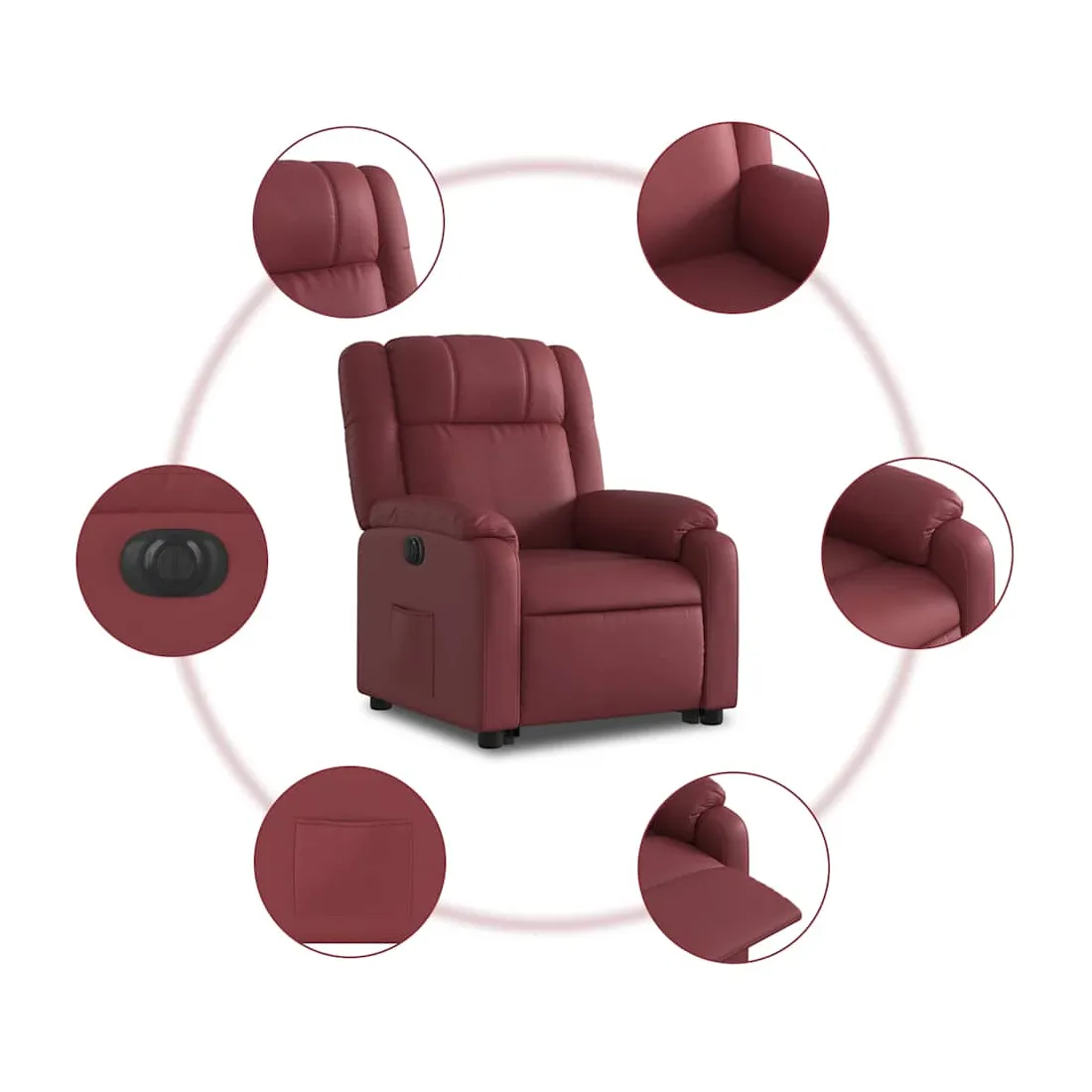Asseyez-vous et détendez-vous dans ce fauteuil inclinable électrique très confortable ! Fonction de levage électrique : ce fauteuil inclinable pour personnes âgées est équipé d'un moteur électrique pour la fonction de levage. Grâce à la fonction qui pousse toute la chaise vers le haut, vous pouvez facilement vous tenir debout sans stresser votre dos et vos genoux en appuyant simplement sur le bouton.Fonction d'inclinaison électrique : ce fauteuil inclinable est également équipé d'un moteur électrique qui permet de régler automatiquement le repose-pied et le dossier dans n'importe quelle position, selon votre confort, en appuyant simplement sur le bouton situé sur le côté du fauteuil. Cette fonction permet une inclinaison maximale de 135 degrés. En outre, le dossier peut revenir automatiquement à sa position d'origine par une simple pression sur le bouton.Expérience de siège confortable : le siège, le dossier et les larges accoudoirs rembourrés épais recouverts de similicuir procurent une sensation confortable et chaleureuse, vous faisant vous sentir enlacé lorsque vous êtes assis. Le simili cuir est un matériau très résistant. Il est résistant aux taches, ce qui le rend facile à nettoyer avec un chiffon humide. La surface lisse donne également un aspect luxueux et la beauté du cuir véritable.Poche latérale pratique : ce fauteuil est doté d'une poche latérale pour vous permettre de garder vos objets essentiels à portée de main.Cadre solide et stable : le cadre en bois et en métal offre une structure solide et une grande stabilité. Ce fauteuil inclinable est confortable et durable.