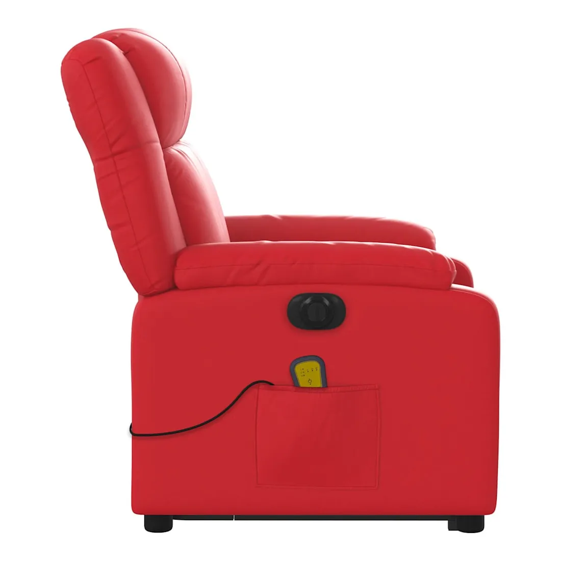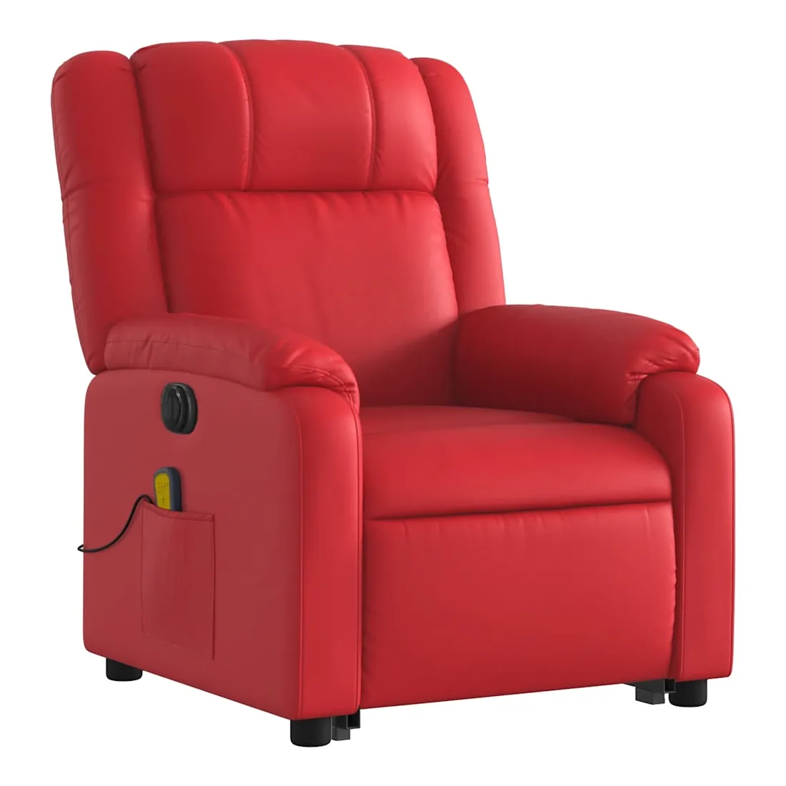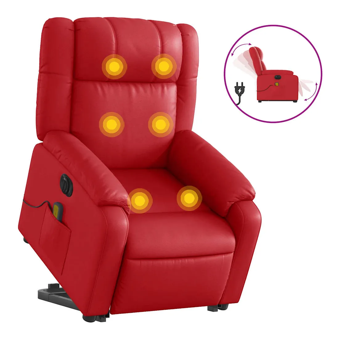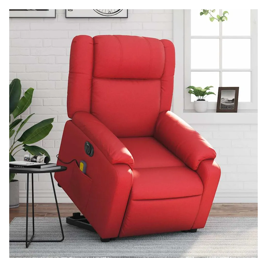 Asseyez-vous et détendez-vous dans ce fauteuil inclinable de massage électrique très confortable ! Fonction de levage électrique : ce fauteuil inclinable pour personnes âgées est équipé d'un moteur électrique pour la fonction de levage. Grâce à la fonction qui pousse toute la chaise vers le haut, vous pouvez facilement vous tenir debout sans stresser votre dos et vos genoux en appuyant simplement sur le bouton.Fonction d'inclinaison électrique : ce fauteuil inclinable est également équipé d'un moteur électrique qui permet de régler automatiquement le repose-pied et le dossier dans n'importe quelle position, selon votre confort, en appuyant simplement sur le bouton situé sur le côté du fauteuil. Cette fonction permet une inclinaison maximale de 135 degrés. En outre, le dossier peut revenir automatiquement à sa position d'origine par une simple pression sur le bouton.Fonction de vibration : les 6 points de massage vous permettent de faire l'expérience d'un massage mieux ciblé. De plus, la télécommande incluse vous permet de choisir différents programmes de massage. La fonction de massage est alimentée par le connecteur USB qui nécessite une source d'alimentation USB certifiée de 5 V (non fournie).Expérience de siège confortable : le siège, le dossier et les larges accoudoirs rembourrés épais recouverts de similicuir procurent une sensation confortable et chaleureuse, vous faisant vous sentir enlacé lorsque vous êtes assis. Le simili cuir est un matériau très résistant. Il est résistant aux taches, ce qui le rend facile à nettoyer avec un chiffon humide. La surface lisse donne également un aspect luxueux et la beauté du cuir véritable.Poche latérale pratique : ce fauteuil est doté d'une poche latérale pour ranger votre télécommande ou garder vos objets essentiels à portée de main.Cadre solide et stable : le cadre en bois et en métal offre une structure solide et une grande stabilité. Ce fauteuil inclinable est confortable et durable.
