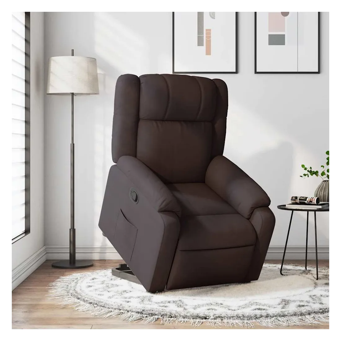 Asseyez-vous et détendez-vous dans ce fauteuil inclinable très confortable ! Fonction de levage électrique : ce fauteuil inclinable pour personnes âgées est équipé d'un moteur électrique pour la fonction de levage. Grâce à la fonction qui pousse toute la chaise vers le haut, vous pouvez facilement vous tenir debout sans stresser votre dos et vos genoux en appuyant simplement sur le bouton.Fonction d'inclinaison manuelle : ce fauteuil inclinable est doté d'une poignée du côté droit. Vous pouvez régler manuellement le repose-pieds et le dossier dans n'importe quelle position selon votre confort en tirant simplement sur la poignée. Cette fonction permet une inclinaison maximale de 135 degrés. De plus, le dossier peut revenir rapidement à sa position d'origine en tirant simplement sur la poignée.Expérience d'assise confortable : le siège, le dossier et les larges accoudoirs bien rembourrés recouverts de tissu procurent une sensation confortable et chaleureuse, vous permettant de vous sentir enveloppé lorsque vous êtes assis. Le tissu présente un aspect simple et épuré et est respirant et durable.Poche latérale pratique : ce fauteuil est doté d'une poche latérale pour vous permettre de garder vos objets essentiels à portée de main.Cadre solide et stable : le cadre en bois et en métal offre une structure solide et une grande stabilité. Ce fauteuil inclinable est confortable et durable.