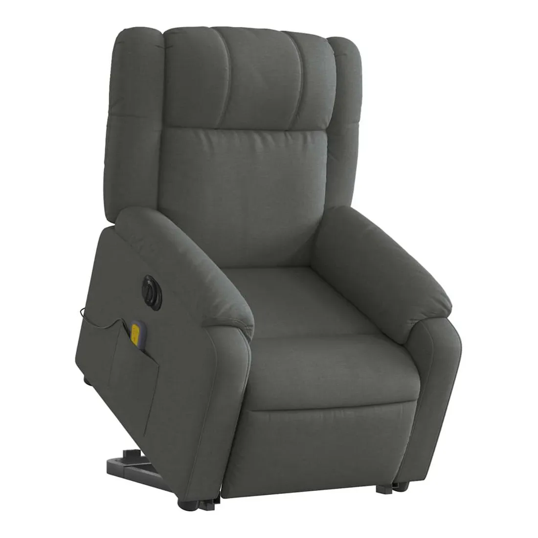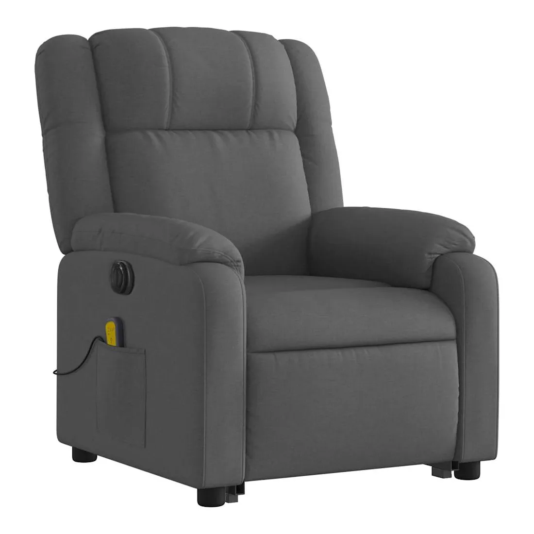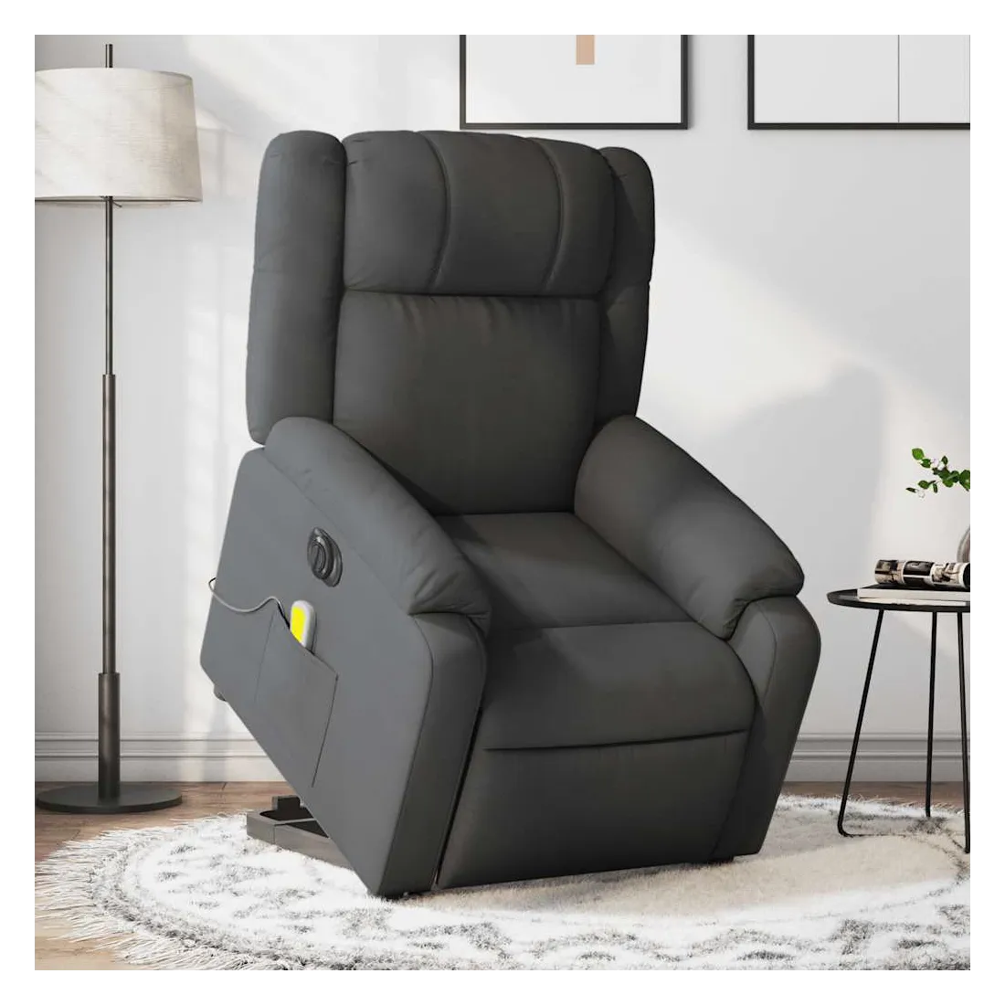 Asseyez-vous et détendez-vous dans ce fauteuil inclinable de massage électrique très confortable ! Fonction de levage électrique : ce fauteuil inclinable pour personnes âgées est équipé d'un moteur électrique pour la fonction de levage. Grâce à la fonction qui pousse toute la chaise vers le haut, vous pouvez facilement vous tenir debout sans stresser votre dos et vos genoux en appuyant simplement sur le bouton.Fonction d'inclinaison électrique : ce fauteuil inclinable est également équipé d'un moteur électrique qui permet de régler automatiquement le repose-pied et le dossier dans n'importe quelle position, selon votre confort, en appuyant simplement sur le bouton situé sur le côté du fauteuil. Cette fonction permet une inclinaison maximale de 135 degrés. En outre, le dossier peut revenir automatiquement à sa position d'origine par une simple pression sur le bouton.Fonction de vibration : les 6 points de massage vous permettent de faire l'expérience d'un massage mieux ciblé. De plus, la télécommande incluse vous permet de choisir différents programmes de massage. La fonction de massage est alimentée par le connecteur USB qui nécessite une source d'alimentation USB certifiée de 5 V (non fournie).Expérience d'assise confortable : le siège, le dossier et les larges accoudoirs bien rembourrés recouverts de tissu procurent une sensation confortable et chaleureuse, vous permettant de vous sentir enveloppé lorsque vous êtes assis. Le tissu présente un aspect simple et épuré et est respirant et durable.Poche latérale pratique : ce fauteuil est doté d'une poche latérale pour ranger votre télécommande ou garder vos objets essentiels à portée de main.Cadre solide et stable : le cadre en bois et en métal offre une structure solide et une grande stabilité. Ce fauteuil inclinable est confortable et durable.