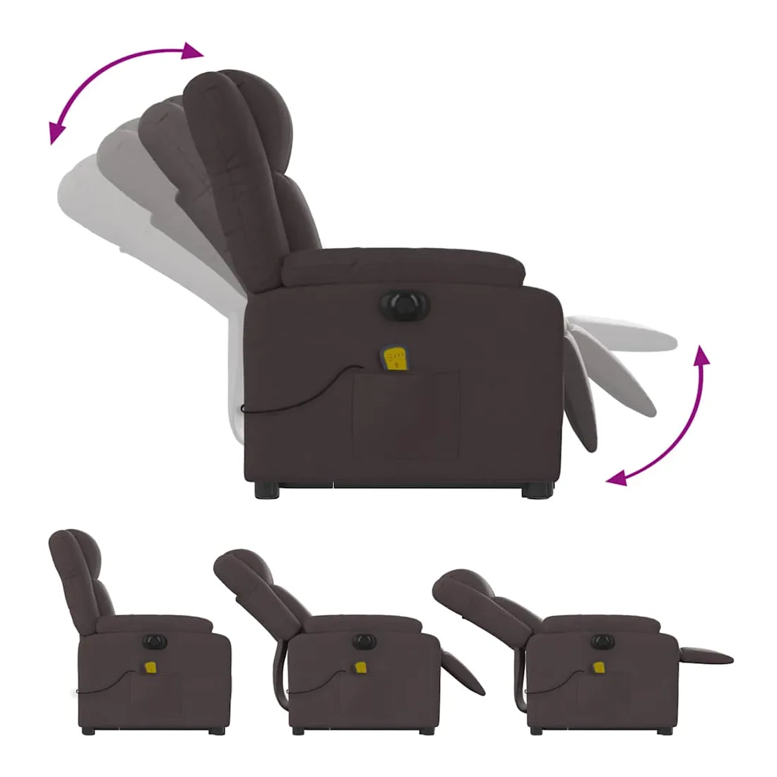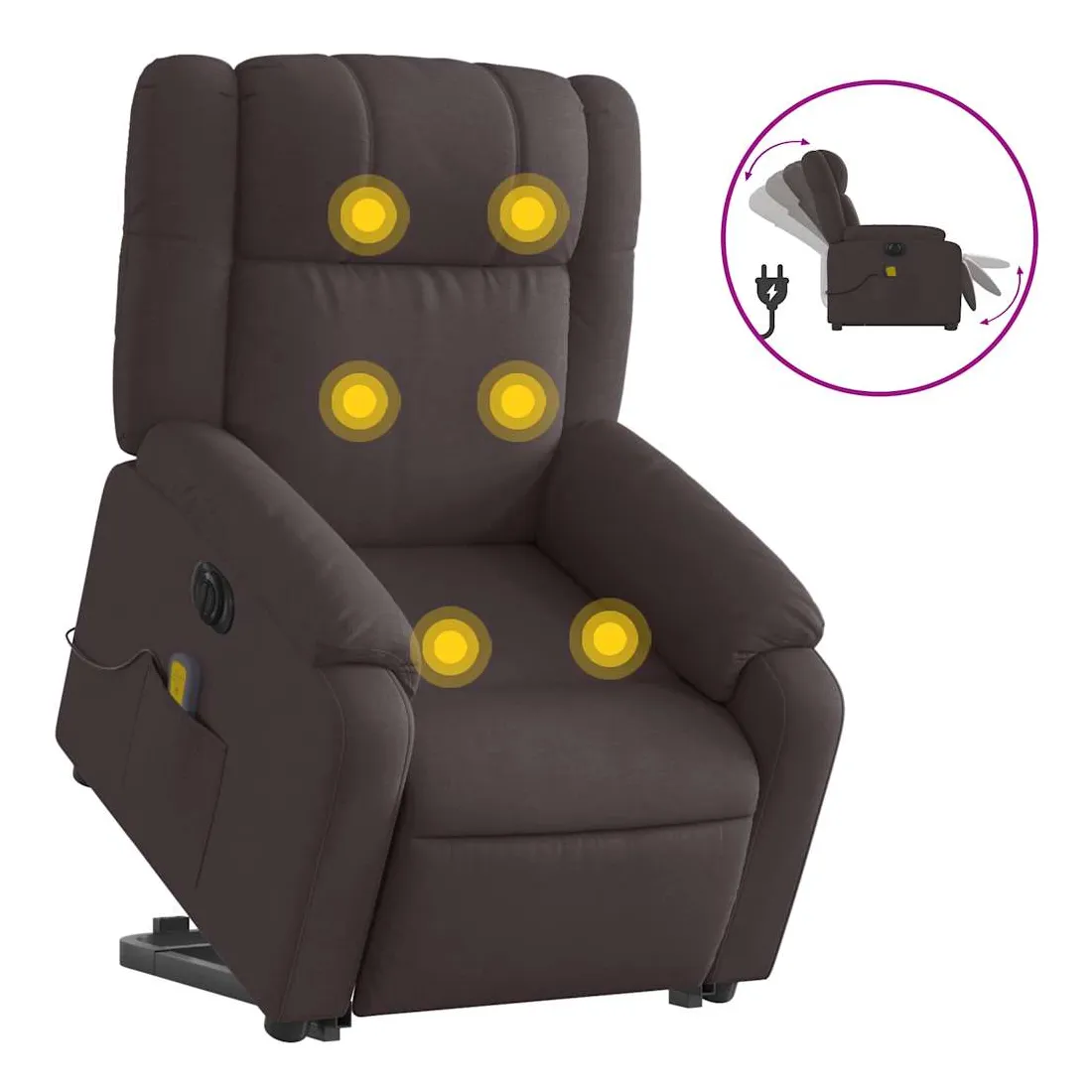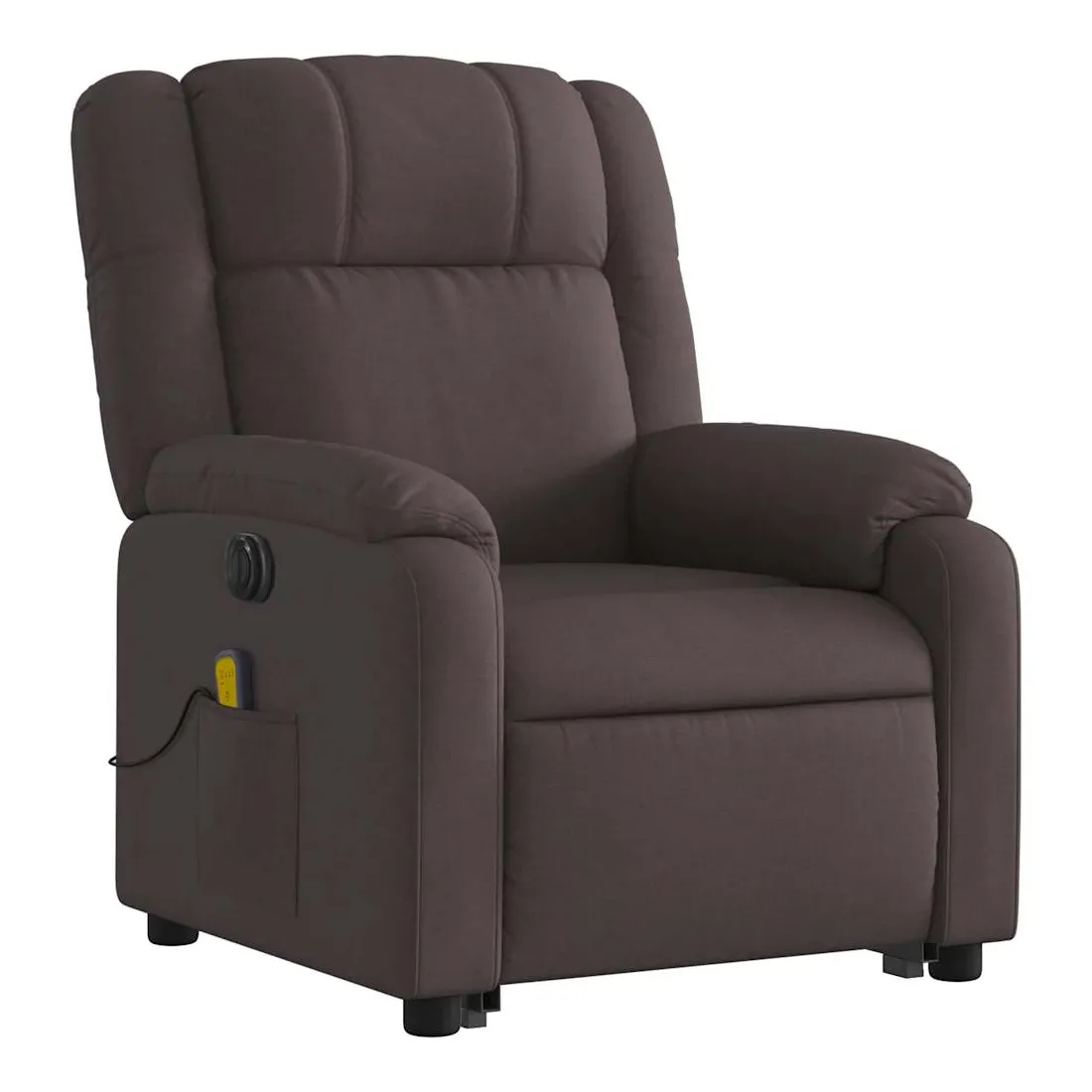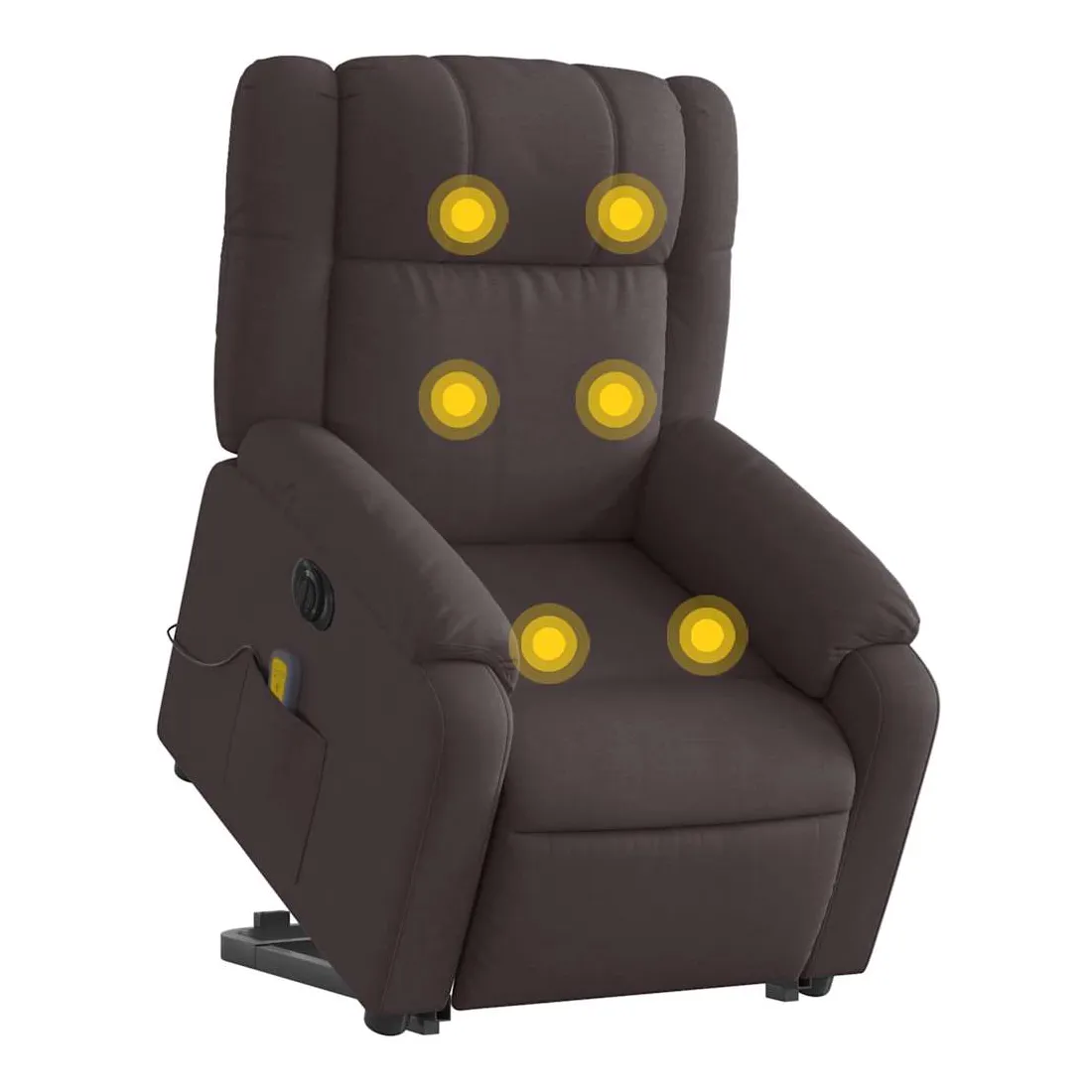 Asseyez-vous et détendez-vous dans ce fauteuil inclinable de massage électrique très confortable ! Fonction de levage électrique : ce fauteuil inclinable pour personnes âgées est équipé d'un moteur électrique pour la fonction de levage. Grâce à la fonction qui pousse toute la chaise vers le haut, vous pouvez facilement vous tenir debout sans stresser votre dos et vos genoux en appuyant simplement sur le bouton.Fonction d'inclinaison électrique : ce fauteuil inclinable est également équipé d'un moteur électrique qui permet de régler automatiquement le repose-pied et le dossier dans n'importe quelle position, selon votre confort, en appuyant simplement sur le bouton situé sur le côté du fauteuil. Cette fonction permet une inclinaison maximale de 135 degrés. En outre, le dossier peut revenir automatiquement à sa position d'origine par une simple pression sur le bouton.Fonction de vibration : les 6 points de massage vous permettent de faire l'expérience d'un massage mieux ciblé. De plus, la télécommande incluse vous permet de choisir différents programmes de massage. La fonction de massage est alimentée par le connecteur USB qui nécessite une source d'alimentation USB certifiée de 5 V (non fournie).Expérience d'assise confortable : le siège, le dossier et les larges accoudoirs bien rembourrés recouverts de tissu procurent une sensation confortable et chaleureuse, vous permettant de vous sentir enveloppé lorsque vous êtes assis. Le tissu présente un aspect simple et épuré et est respirant et durable.Poche latérale pratique : ce fauteuil est doté d'une poche latérale pour ranger votre télécommande ou garder vos objets essentiels à portée de main.Cadre solide et stable : le cadre en bois et en métal offre une structure solide et une grande stabilité. Ce fauteuil inclinable est confortable et durable.