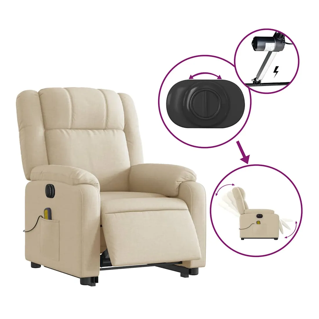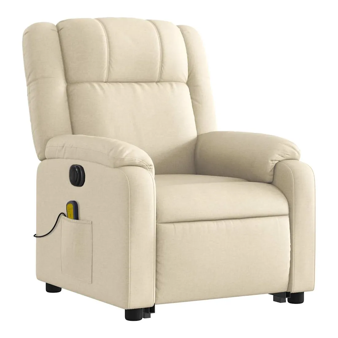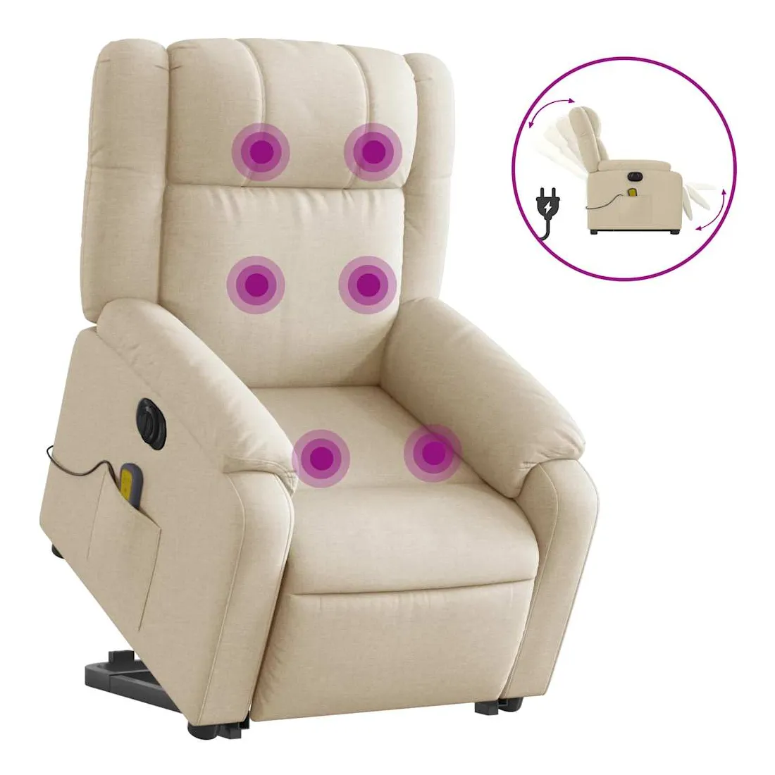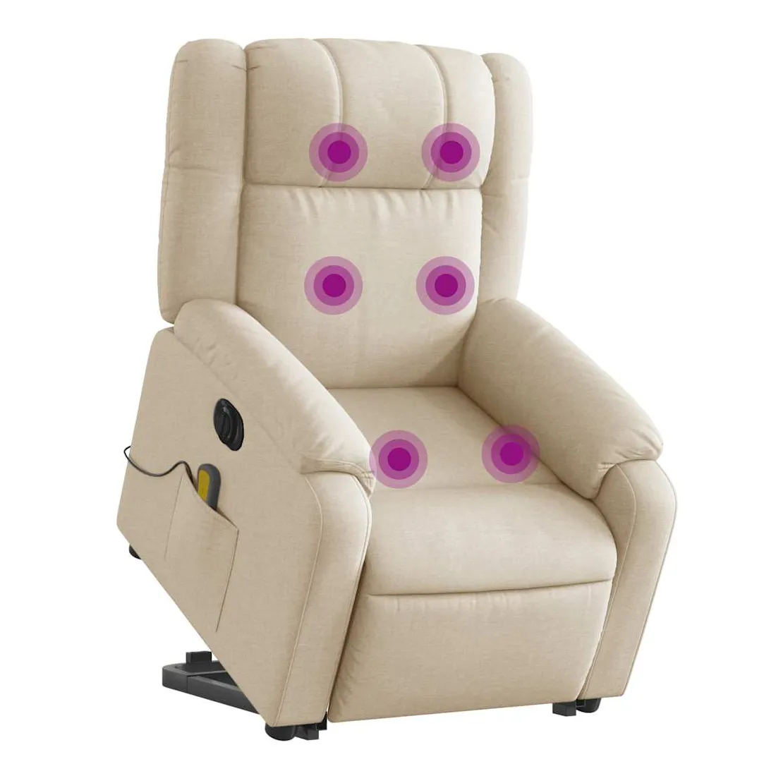 Asseyez-vous et détendez-vous dans ce fauteuil inclinable de massage électrique très confortable ! Fonction de levage électrique : ce fauteuil inclinable pour personnes âgées est équipé d'un moteur électrique pour la fonction de levage. Grâce à la fonction qui pousse toute la chaise vers le haut, vous pouvez facilement vous tenir debout sans stresser votre dos et vos genoux en appuyant simplement sur le bouton.Fonction d'inclinaison électrique : ce fauteuil inclinable est également équipé d'un moteur électrique qui permet de régler automatiquement le repose-pied et le dossier dans n'importe quelle position, selon votre confort, en appuyant simplement sur le bouton situé sur le côté du fauteuil. Cette fonction permet une inclinaison maximale de 135 degrés. En outre, le dossier peut revenir automatiquement à sa position d'origine par une simple pression sur le bouton.Fonction de vibration : les 6 points de massage vous permettent de faire l'expérience d'un massage mieux ciblé. De plus, la télécommande incluse vous permet de choisir différents programmes de massage. La fonction de massage est alimentée par le connecteur USB qui nécessite une source d'alimentation USB certifiée de 5 V (non fournie).Expérience d'assise confortable : le siège, le dossier et les larges accoudoirs bien rembourrés recouverts de tissu procurent une sensation confortable et chaleureuse, vous permettant de vous sentir enveloppé lorsque vous êtes assis. Le tissu présente un aspect simple et épuré et est respirant et durable.Poche latérale pratique : ce fauteuil est doté d'une poche latérale pour ranger votre télécommande ou garder vos objets essentiels à portée de main.Cadre solide et stable : le cadre en bois et en métal offre une structure solide et une grande stabilité. Ce fauteuil inclinable est confortable et durable.