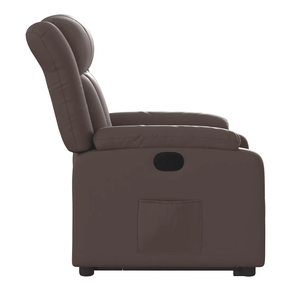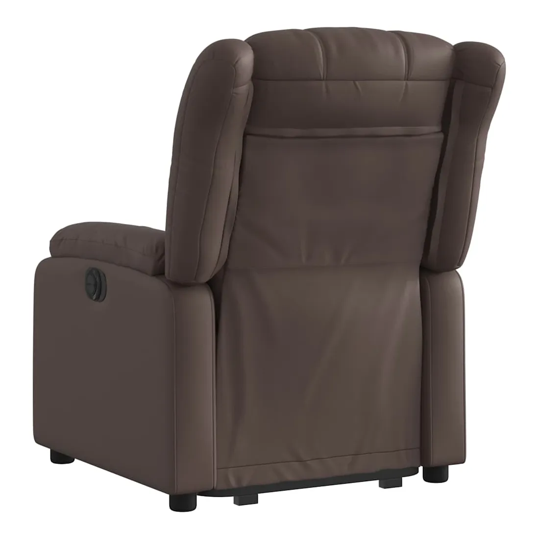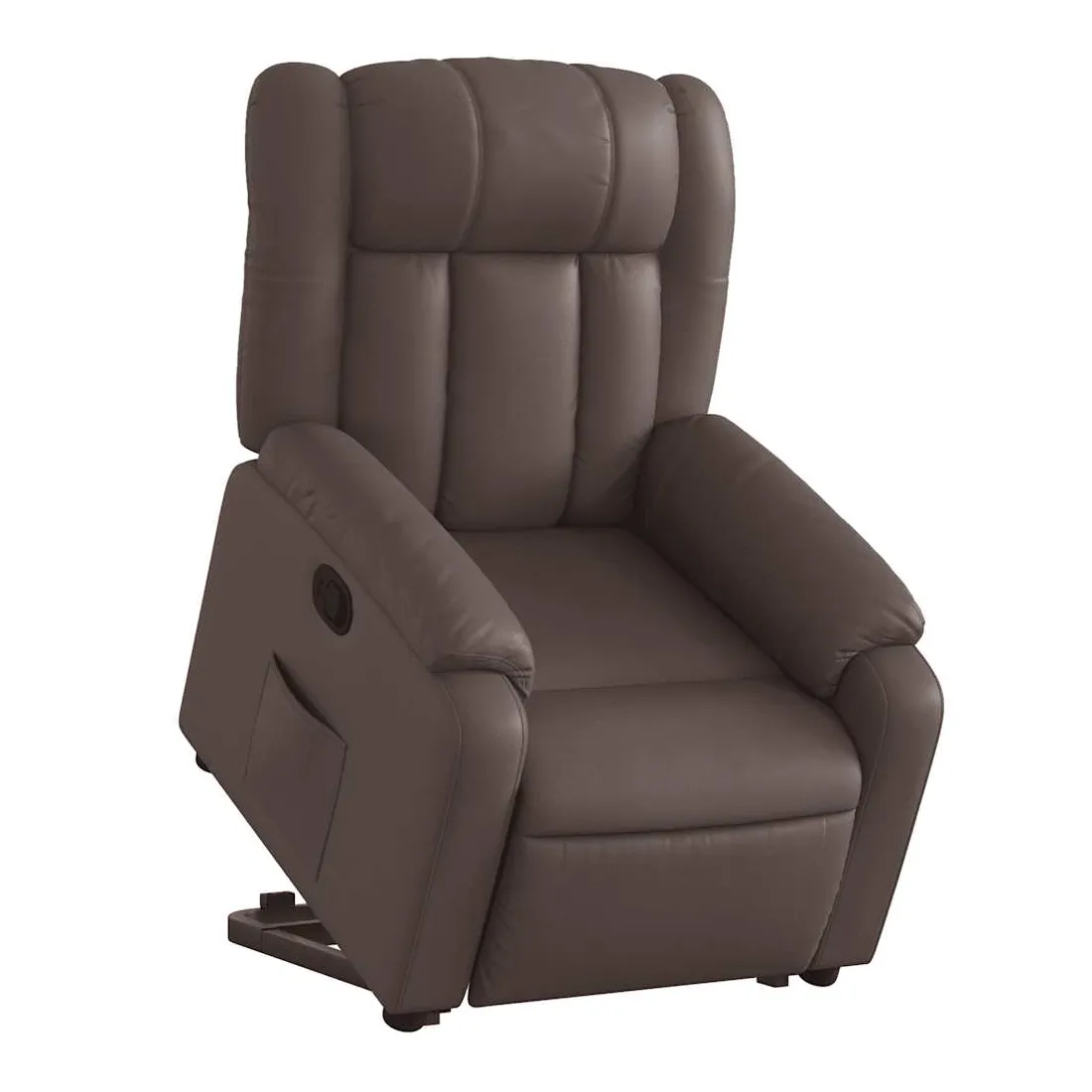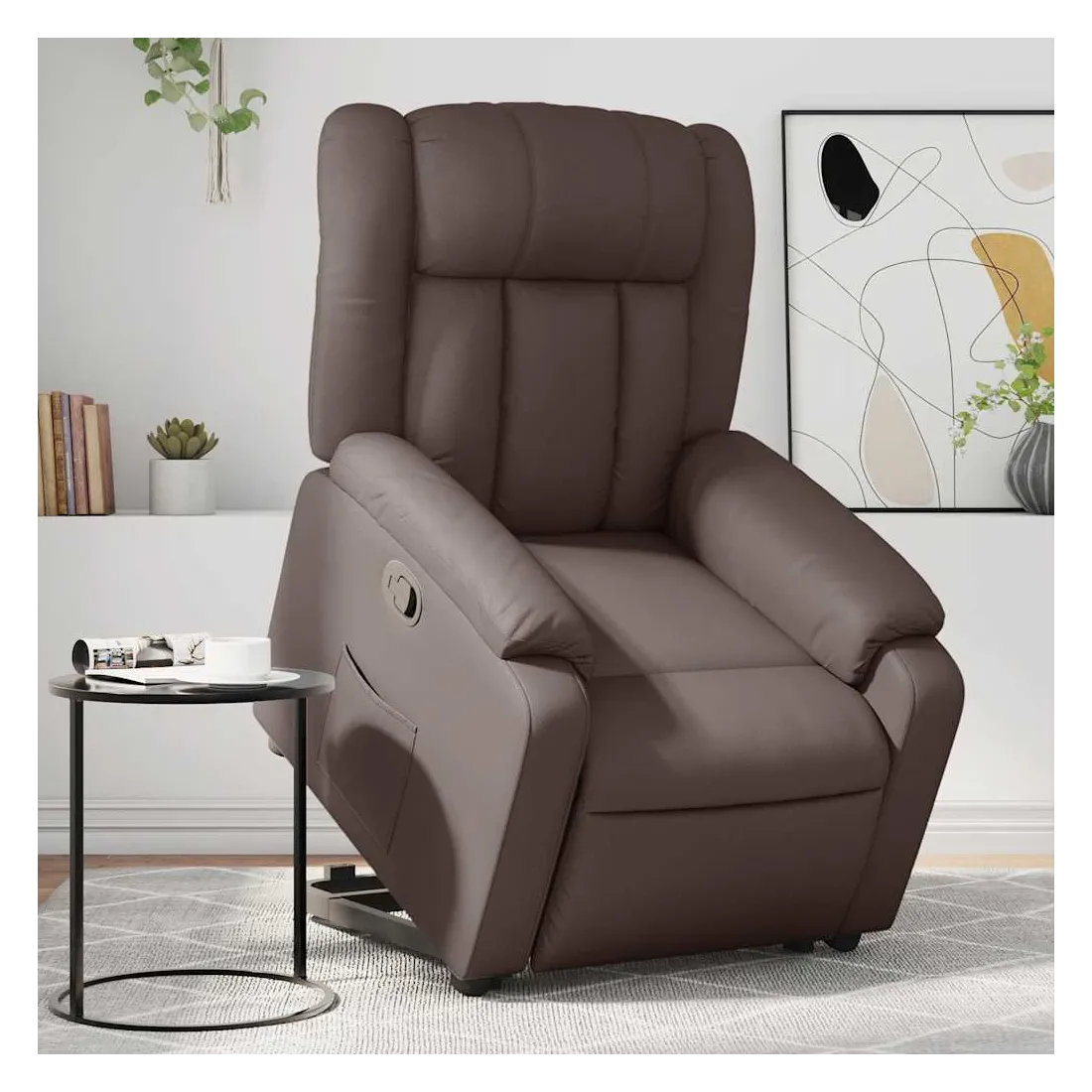 Asseyez-vous et détendez-vous dans ce fauteuil inclinable très confortable ! Fonction de levage électrique : ce fauteuil inclinable pour personnes âgées est équipé d'un moteur électrique pour la fonction de levage. Grâce à la fonction qui pousse toute la chaise vers le haut, vous pouvez facilement vous tenir debout sans stresser votre dos et vos genoux en appuyant simplement sur le bouton.Fonction d'inclinaison manuelle : ce fauteuil inclinable est doté d'une poignée du côté droit. Vous pouvez régler manuellement le repose-pieds et le dossier dans n'importe quelle position selon votre confort en tirant simplement sur la poignée. Cette fonction permet une inclinaison maximale de 135 degrés. De plus, le dossier peut revenir rapidement à sa position d'origine en tirant simplement sur la poignée.Expérience de siège confortable : le siège, le dossier et les larges accoudoirs rembourrés épais recouverts de similicuir procurent une sensation confortable et chaleureuse, vous faisant vous sentir enlacé lorsque vous êtes assis. Le simili cuir est un matériau très résistant. Il est résistant aux taches, ce qui le rend facile à nettoyer avec un chiffon humide. La surface lisse donne également un aspect luxueux et la beauté du cuir véritable.Poche latérale pratique : ce fauteuil est doté d'une poche latérale pour vous permettre de garder vos objets essentiels à portée de main.Cadre solide et stable : le cadre en bois et en métal offre une structure solide et une grande stabilité. Ce fauteuil inclinable est confortable et durable.