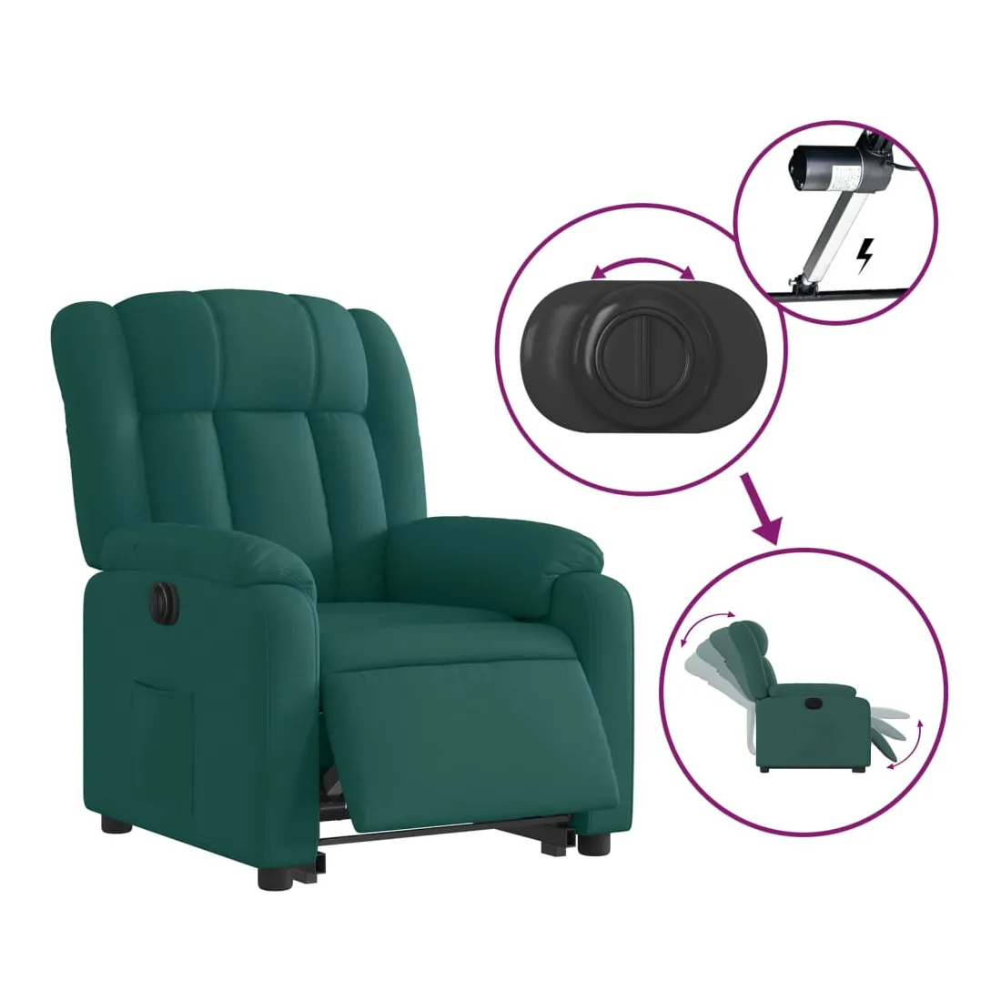 Asseyez-vous et détendez-vous dans ce fauteuil inclinable électrique très confortable ! Fonction de levage électrique : ce fauteuil inclinable pour personnes âgées est équipé d'un moteur électrique pour la fonction de levage. Grâce à la fonction qui pousse toute la chaise vers le haut, vous pouvez facilement vous tenir debout sans stresser votre dos et vos genoux en appuyant simplement sur le bouton. Fonction d'inclinaison électrique : ce fauteuil inclinable est également équipé d'un moteur électrique qui permet de régler automatiquement le repose-pied et le dossier dans n'importe quelle position, selon votre confort, en appuyant simplement sur le bouton situé sur le côté du fauteuil. Cette fonction permet une inclinaison maximale de 135 degrés. En outre, le dossier peut revenir automatiquement à sa position d'origine par une simple pression sur le bouton. Expérience d'assise confortable : le siège, le dossier et les larges accoudoirs bien rembourrés recouverts de tissu procurent une sensation confortable et chaleureuse, vous permettant de vous sentir enveloppé lorsque vous êtes assis. Le tissu présente un aspect simple et épuré et est respirant et durable. Poche latérale pratique : ce fauteuil est doté d'une poche latérale pour vous permettre de garder vos objets essentiels à portée de main. Cadre solide et stable : le cadre en bois et en métal offre une structure solide et une grande stabilité. Ce fauteuil inclinable est confortable et durable.