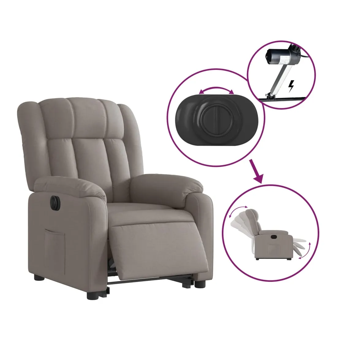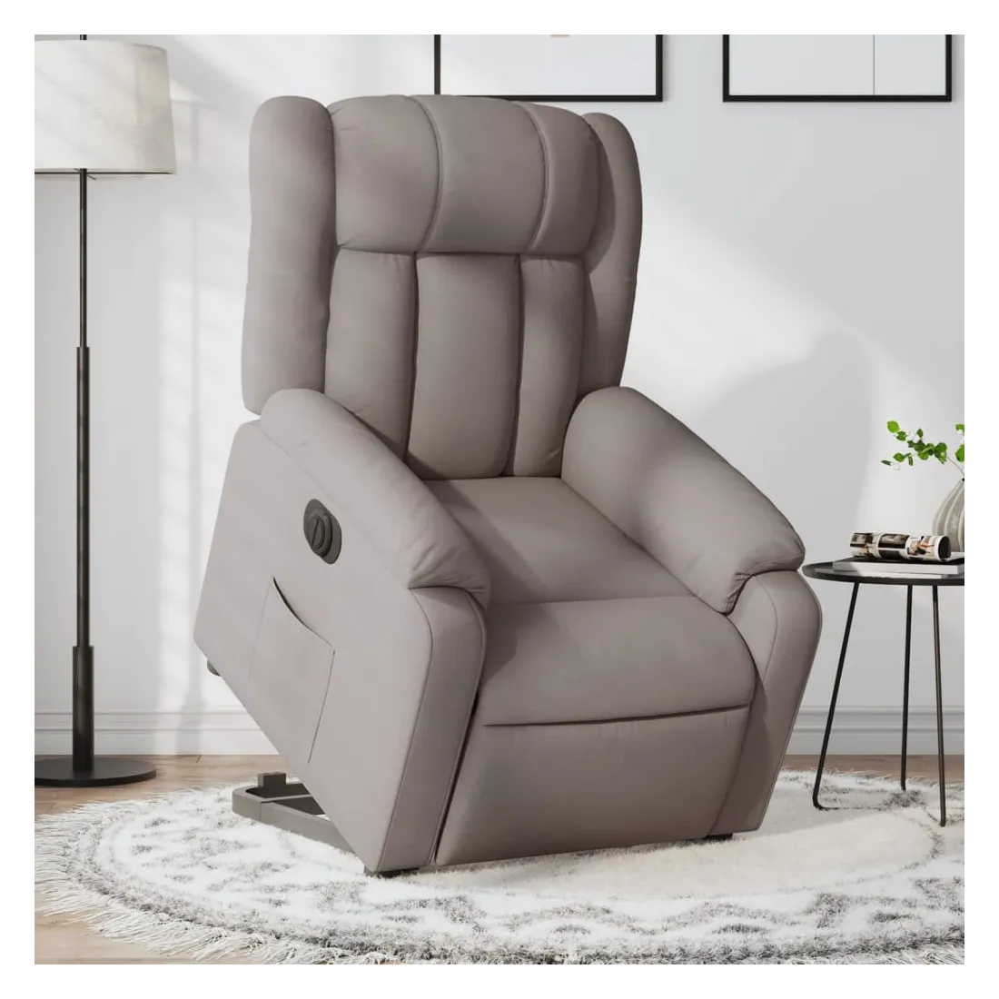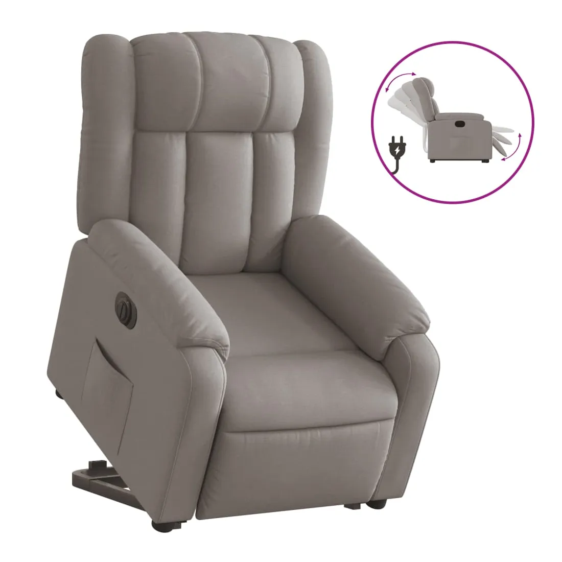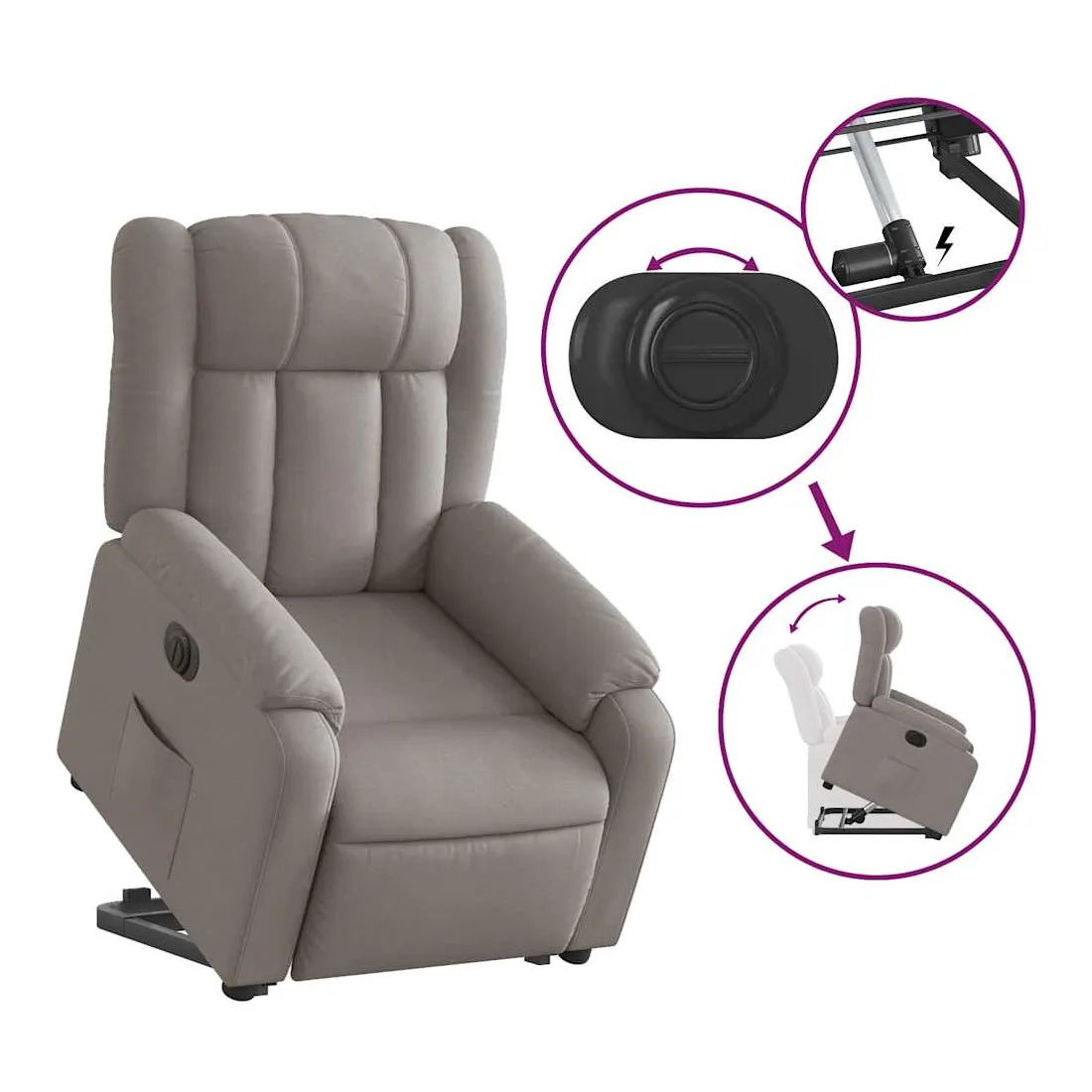 Asseyez-vous et détendez-vous dans ce fauteuil inclinable électrique très confortable ! Fonction de levage électrique : ce fauteuil inclinable pour personnes âgées est équipé d'un moteur électrique pour la fonction de levage. Grâce à la fonction qui pousse toute la chaise vers le haut, vous pouvez facilement vous tenir debout sans stresser votre dos et vos genoux en appuyant simplement sur le bouton. Fonction d'inclinaison électrique : ce fauteuil inclinable est également équipé d'un moteur électrique qui permet de régler automatiquement le repose-pied et le dossier dans n'importe quelle position, selon votre confort, en appuyant simplement sur le bouton situé sur le côté du fauteuil. Cette fonction permet une inclinaison maximale de 135 degrés. En outre, le dossier peut revenir automatiquement à sa position d'origine par une simple pression sur le bouton. Expérience d'assise confortable : le siège, le dossier et les larges accoudoirs bien rembourrés recouverts de tissu procurent une sensation confortable et chaleureuse, vous permettant de vous sentir enveloppé lorsque vous êtes assis. Le tissu présente un aspect simple et épuré et est respirant et durable. Poche latérale pratique : ce fauteuil est doté d'une poche latérale pour vous permettre de garder vos objets essentiels à portée de main. Cadre solide et stable : le cadre en bois et en métal offre une structure solide et une grande stabilité. Ce fauteuil inclinable est confortable et durable.