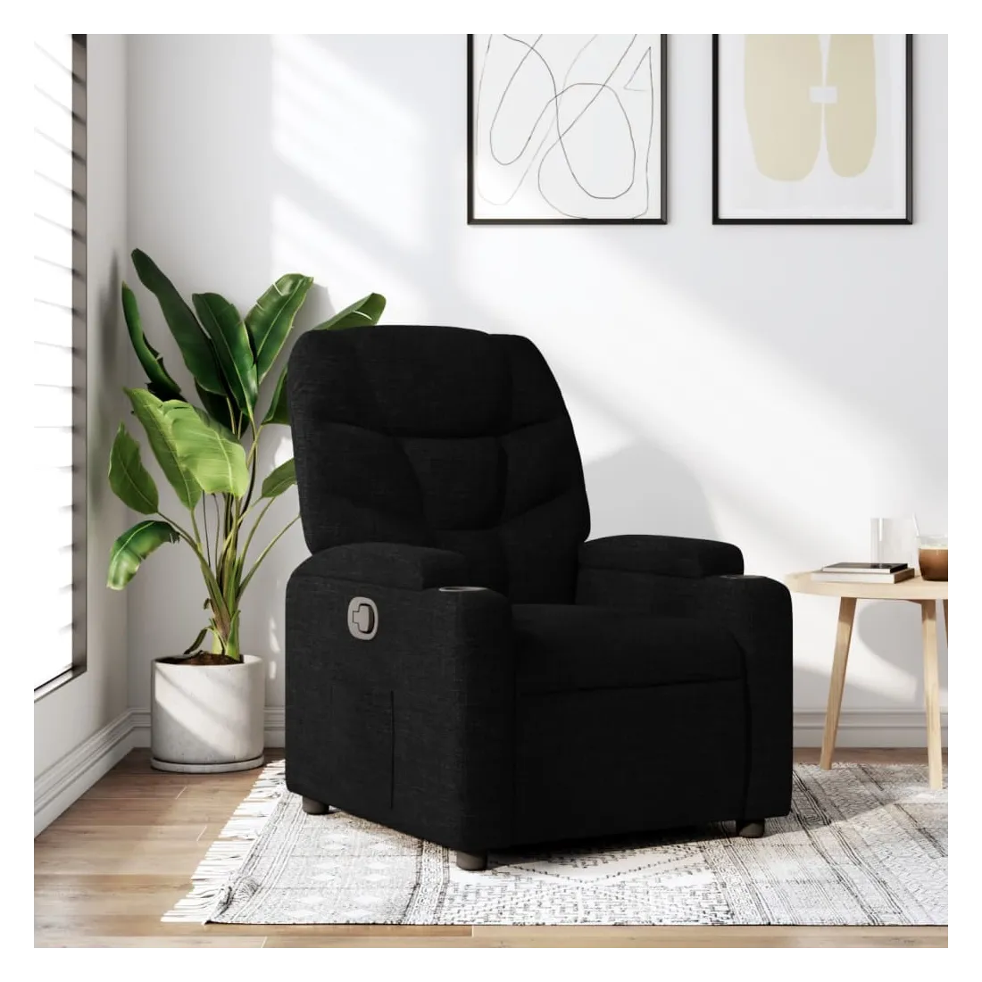 Asseyez-vous et laissez-vous emporter par ce fauteuil inclinable très confortable ! Fonction d'inclinaison manuelle : Ce fauteuil inclinable est doté d'une poignée sur le côté droit. Vous pouvez régler manuellement le repose-pieds et le dossier dans n'importe quelle position selon votre confort en tirant simplement sur la poignée. Cette fonction permet une inclinaison maximale de 135 degrés. De plus, le dossier peut revenir rapidement à sa position initiale en tirant facilement sur la poignée.Expérience d'assise confortable : L'assise, le dossier et les larges accoudoirs rembourrés et recouverts de tissu offrent une sensation de confort et de chaleur, vous donnant l'impression d'être enlacé en position assise. Le tissu présente un aspect simple et épuré, est respirant et durable.Porte-gobelets pratiques et poche latérale : Ce fauteuil est doté de deux porte-gobelets pratiques pour vos boissons et d'une poche latérale pour garder vos objets essentiels à portée de main.Cadre solide et stable : Le cadre en bois et en métal offre une structure solide et stable. Ce fauteuil inclinable est confortable et durable.