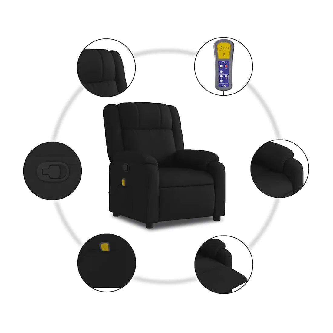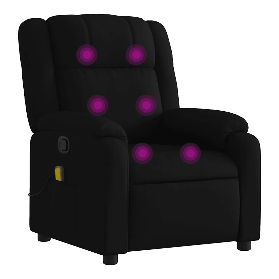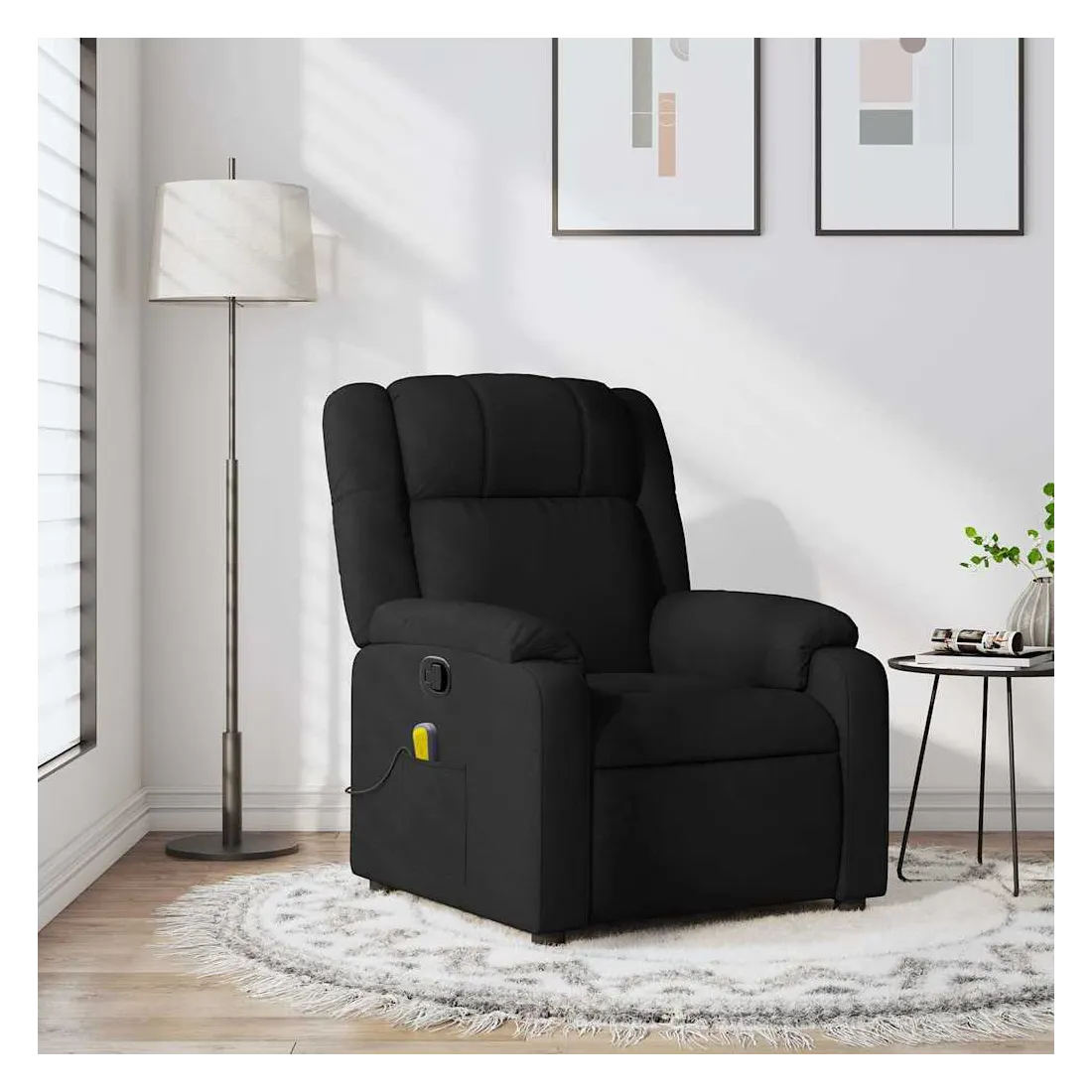 Asseyez-vous et détendez-vous dans ce fauteuil inclinable de massage très confortable ! Fonction d'inclinaison manuelle : ce fauteuil inclinable est doté d'une poignée du côté droit. Vous pouvez régler manuellement le repose-pieds et le dossier dans n'importe quelle position selon votre confort en tirant simplement sur la poignée. Cette fonction permet une inclinaison maximale de 135 degrés. De plus, le dossier peut revenir rapidement à sa position d'origine en tirant simplement sur la poignée.Fonction de vibration : les 6 points de massage vous permettent de faire l'expérience d'un massage mieux ciblé. De plus, la télécommande incluse vous permet de choisir différents programmes de massage. La fonction de massage est alimentée par le connecteur USB, mais la source d'alimentation USB 5V certifiée n'est pas incluse.Expérience d'assise confortable : le siège, le dossier et les larges accoudoirs bien rembourrés recouverts de tissu procurent une sensation confortable et chaleureuse, vous permettant de vous sentir enveloppé lorsque vous êtes assis. Le tissu présente un aspect simple et épuré et est respirant et durable.Poche latérale pratique : ce fauteuil est doté d'une poche latérale pour ranger votre télécommande ou garder vos objets essentiels à portée de main.Cadre solide et stable : le cadre en bois et en métal offre une structure solide et une grande stabilité. Ce fauteuil inclinable est confortable et durable.