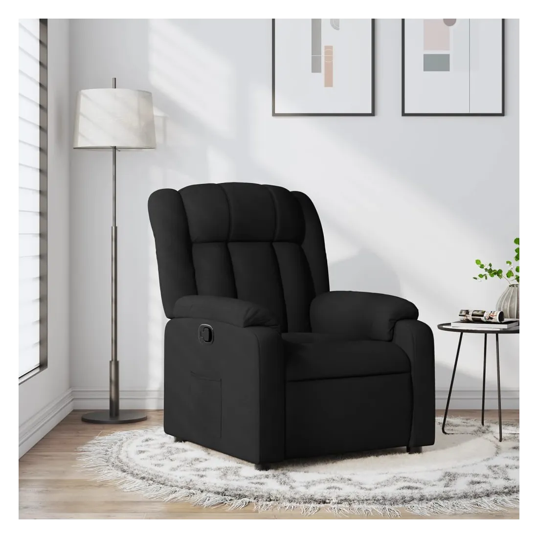Asseyez-vous et laissez-vous emporter par ce fauteuil inclinable ultra-confortable ! Fonction d'inclinaison manuelle : Ce fauteuil inclinable est doté d'une poignée sur le côté droit. Vous pouvez régler manuellement le repose-pieds et le dossier à votre convenance d'une simple traction sur la poignée. Cette fonction permet une inclinaison maximale de 135 degrés. De plus, le dossier peut revenir rapidement à sa position initiale d'une simple traction sur la poignée.Assise confortable : L'assise, le dossier et les larges accoudoirs rembourrés et recouverts de tissu offrent une sensation de confort et de chaleur, vous permettant de vous sentir bien installé. Le tissu, au look simple et épuré, est respirant et durable.Poche latérale pratique : Ce fauteuil est doté d'une poche latérale pour garder vos objets essentiels à portée de main.Cadre solide et stable : Le cadre en bois et en métal offre une structure solide et stable. Ce fauteuil inclinable est confortable et durable.