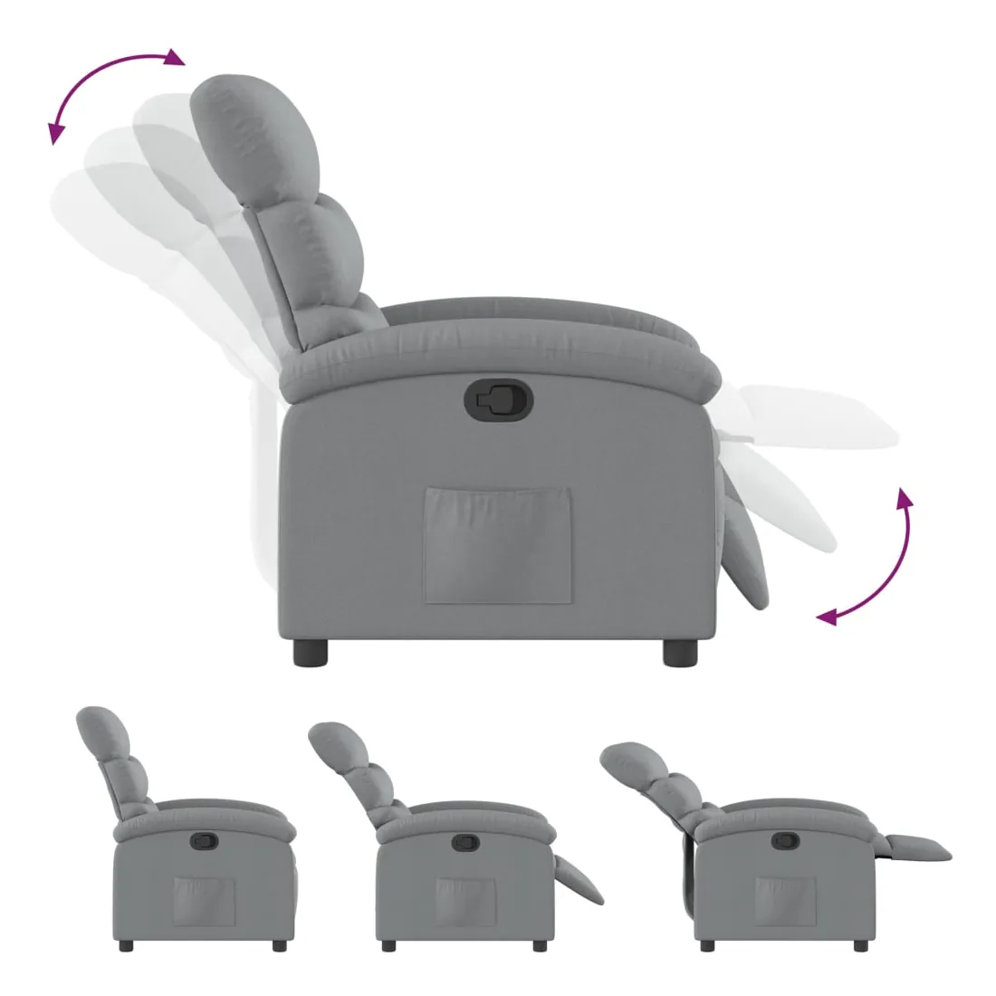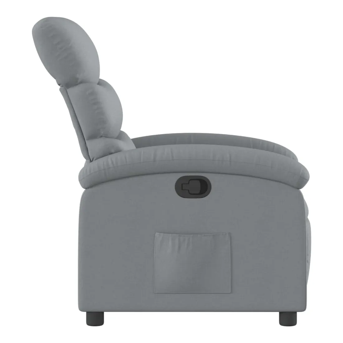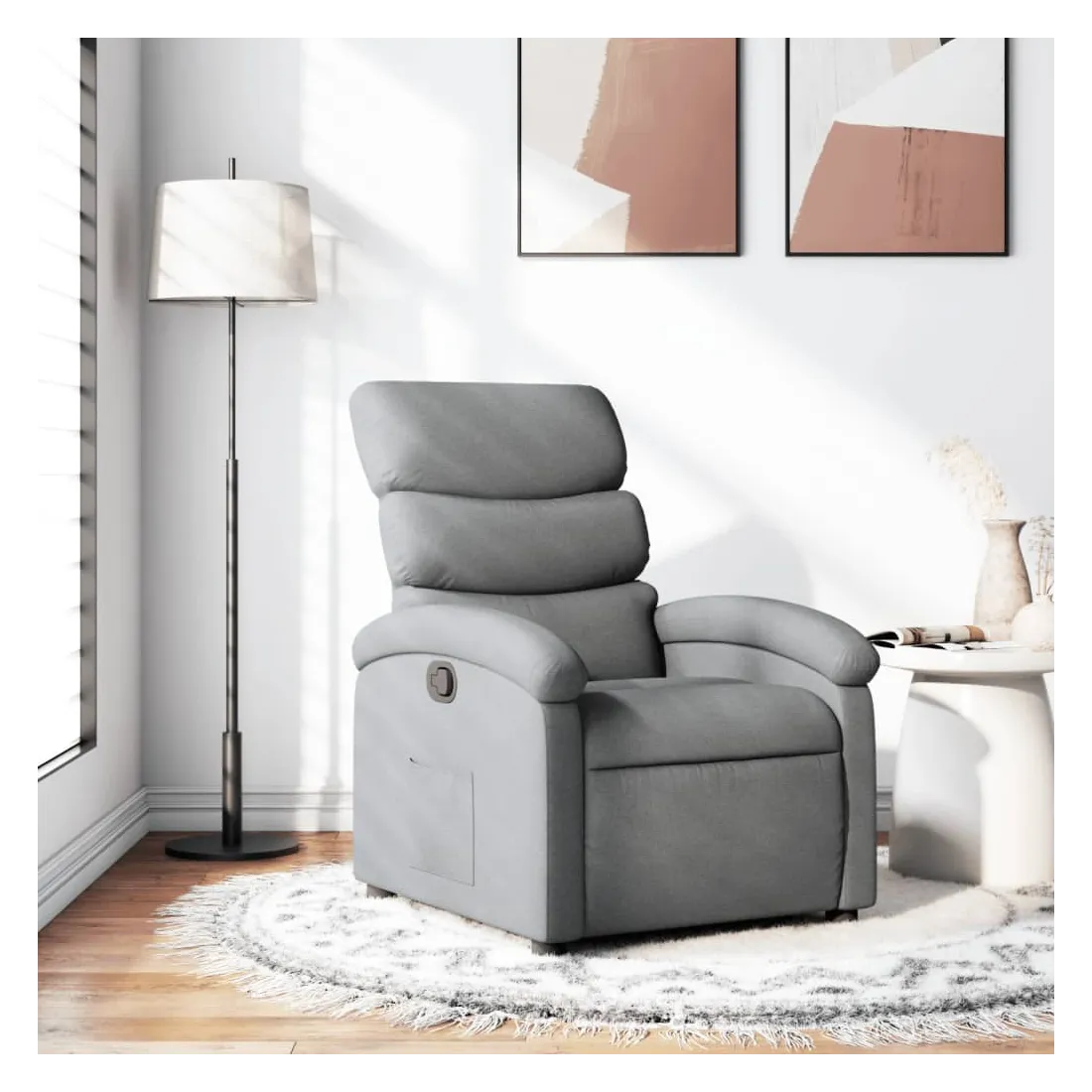 Asseyez-vous et détendez-vous dans ce fauteuil inclinable très confortable ! Fonction d'inclinaison manuelle : ce fauteuil inclinable est doté d'une poignée du côté droit. Vous pouvez régler manuellement le repose-pieds et le dossier dans n'importe quelle position selon votre confort en tirant simplement sur la poignée. Cette fonction permet une inclinaison maximale de 135 degrés. De plus, le dossier peut revenir rapidement à sa position d'origine en tirant simplement sur la poignée.Expérience d'assise confortable : le siège, le dossier et les larges accoudoirs bien rembourrés recouverts de tissu procurent une sensation confortable et chaleureuse, vous permettant de vous sentir enveloppé lorsque vous êtes assis. Le tissu présente un aspect simple et épuré et est respirant et durable.Poche latérale pratique : ce fauteuil est doté d'une poche latérale pour vous permettre de garder vos objets essentiels à portée de main.Cadre solide et stable : le cadre en bois et en métal offre une structure solide et une grande stabilité. Ce fauteuil inclinable est confortable et durable.