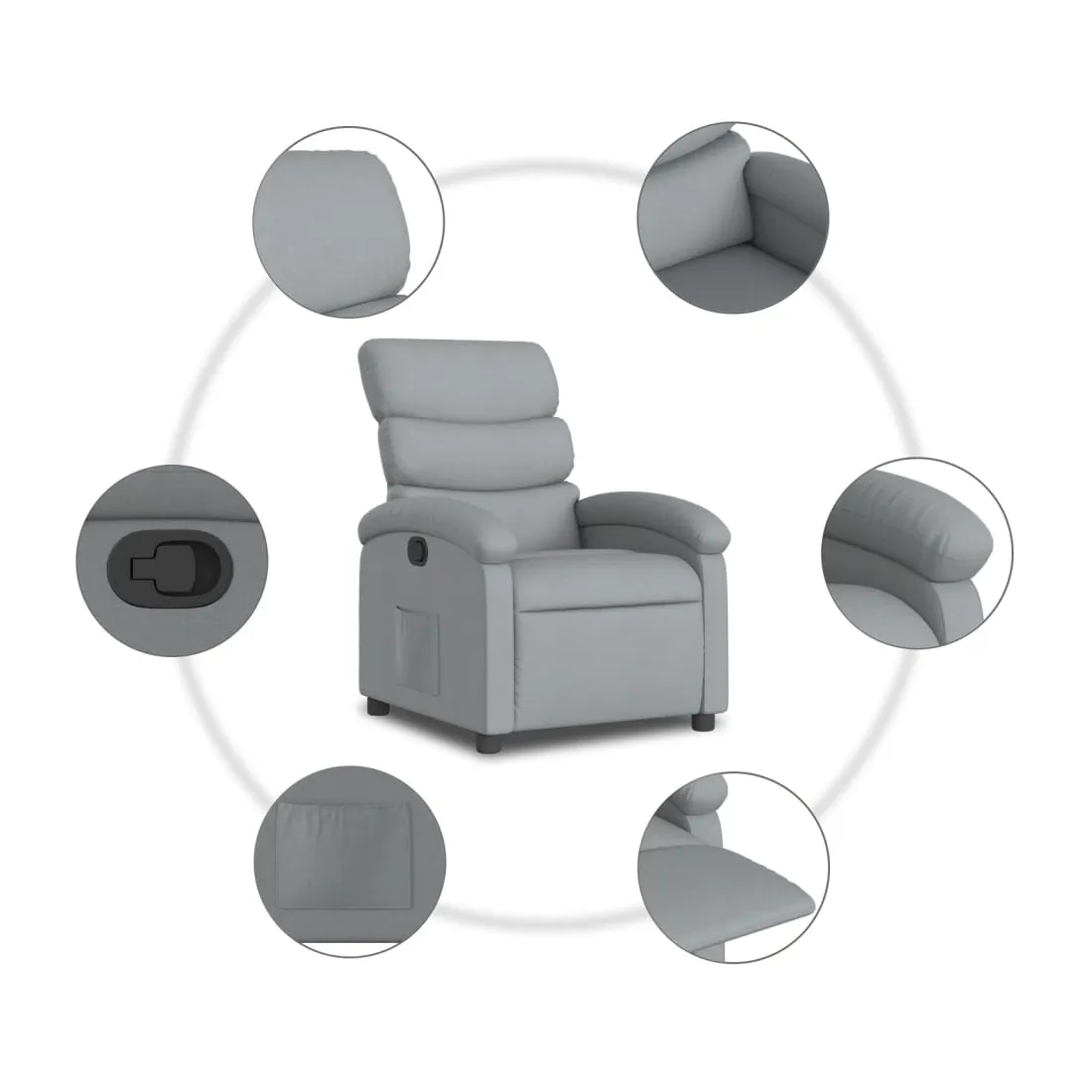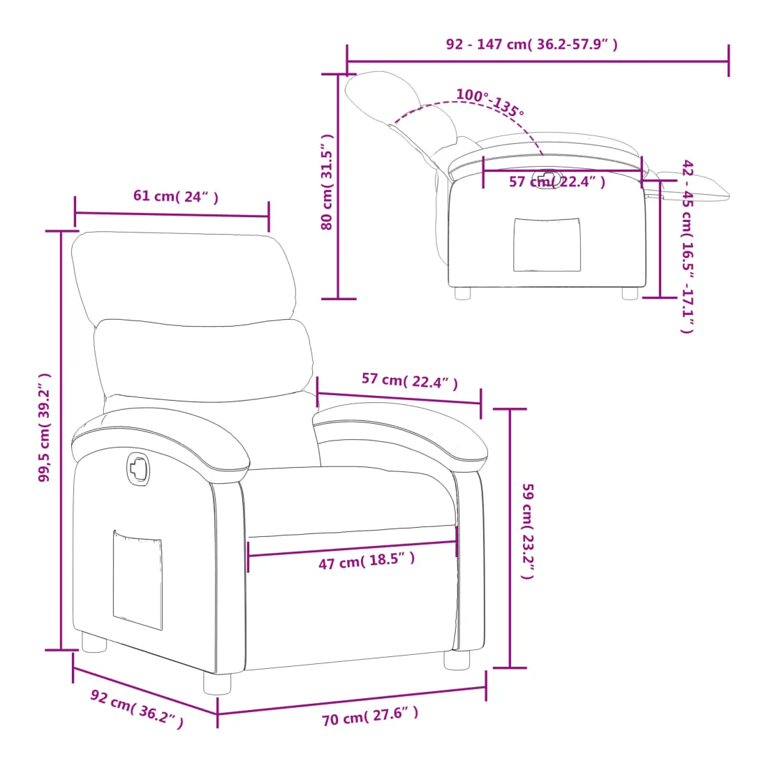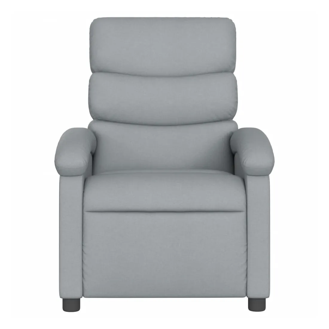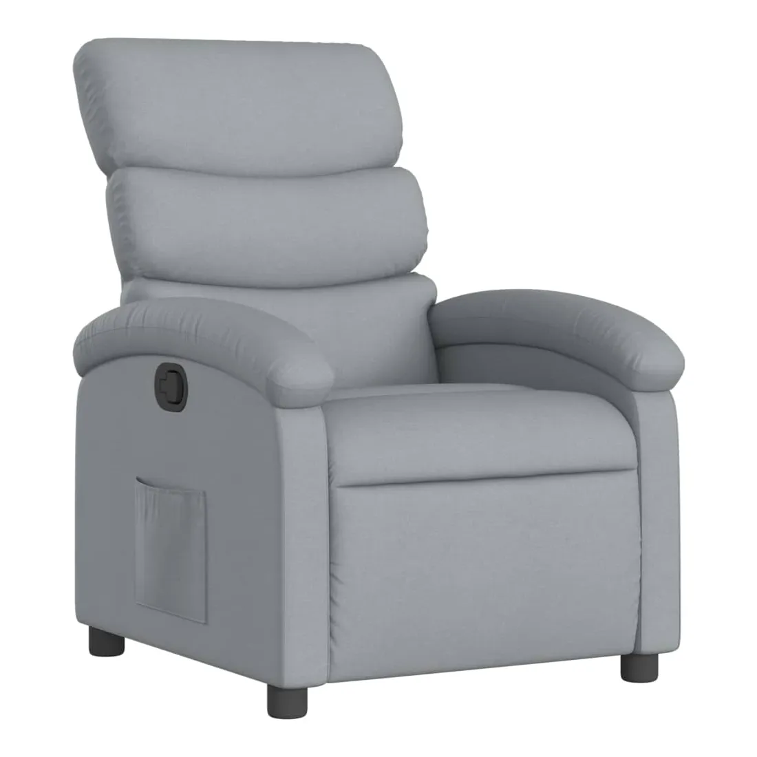 Asseyez-vous et détendez-vous dans ce fauteuil inclinable très confortable ! Fonction d'inclinaison manuelle : ce fauteuil inclinable est doté d'une poignée du côté droit. Vous pouvez régler manuellement le repose-pieds et le dossier dans n'importe quelle position selon votre confort en tirant simplement sur la poignée. Cette fonction permet une inclinaison maximale de 135 degrés. De plus, le dossier peut revenir rapidement à sa position d'origine en tirant simplement sur la poignée.Expérience d'assise confortable : le siège, le dossier et les larges accoudoirs bien rembourrés recouverts de tissu procurent une sensation confortable et chaleureuse, vous permettant de vous sentir enveloppé lorsque vous êtes assis. Le tissu présente un aspect simple et épuré et est respirant et durable.Poche latérale pratique : ce fauteuil est doté d'une poche latérale pour vous permettre de garder vos objets essentiels à portée de main.Cadre solide et stable : le cadre en bois et en métal offre une structure solide et une grande stabilité. Ce fauteuil inclinable est confortable et durable.