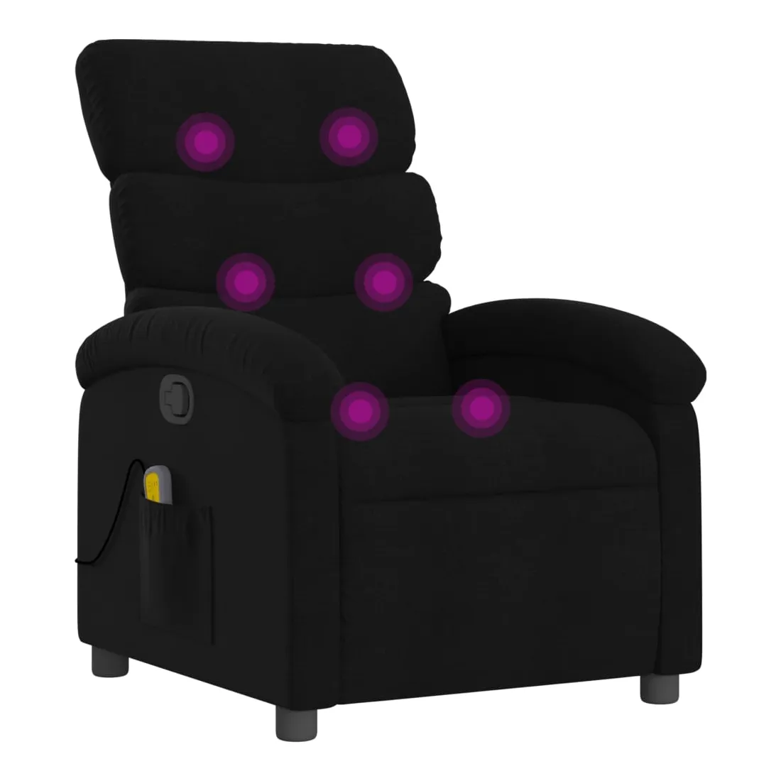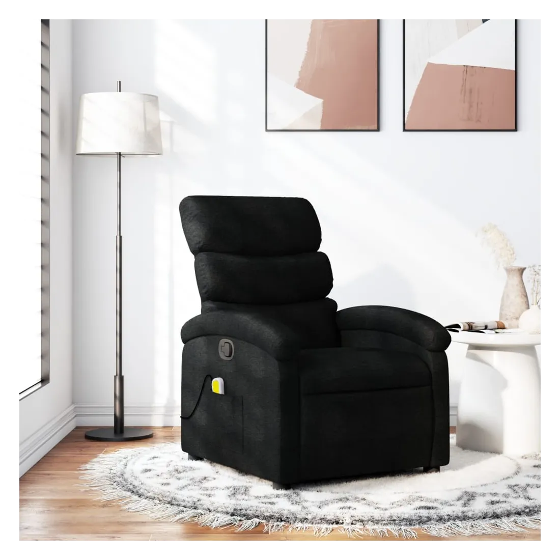 Asseyez-vous et détendez-vous dans ce fauteuil inclinable de massage très confortable ! Fonction d'inclinaison manuelle : ce fauteuil inclinable est doté d'une poignée du côté droit. Vous pouvez régler manuellement le repose-pieds et le dossier dans n'importe quelle position selon votre confort en tirant simplement sur la poignée. Cette fonction permet une inclinaison maximale de 135 degrés. De plus, le dossier peut revenir rapidement à sa position d'origine en tirant simplement sur la poignée.Fonction de vibration : les 6 points de massage vous permettent de faire l'expérience d'un massage mieux ciblé. De plus, la télécommande incluse vous permet de choisir différents programmes de massage. La fonction de massage est alimentée par le connecteur USB, mais la source d'alimentation USB 5V certifiée n'est pas incluse.Expérience d'assise confortable : le siège, le dossier et les larges accoudoirs bien rembourrés recouverts de tissu procurent une sensation confortable et chaleureuse, vous permettant de vous sentir enveloppé lorsque vous êtes assis. Le tissu présente un aspect simple et épuré et est respirant et durable.Poche latérale pratique : ce fauteuil est doté d'une poche latérale pour ranger votre télécommande ou garder vos objets essentiels à portée de main.Cadre solide et stable : le cadre en bois et en métal offre une structure solide et une grande stabilité. Ce fauteuil inclinable est confortable et durable.