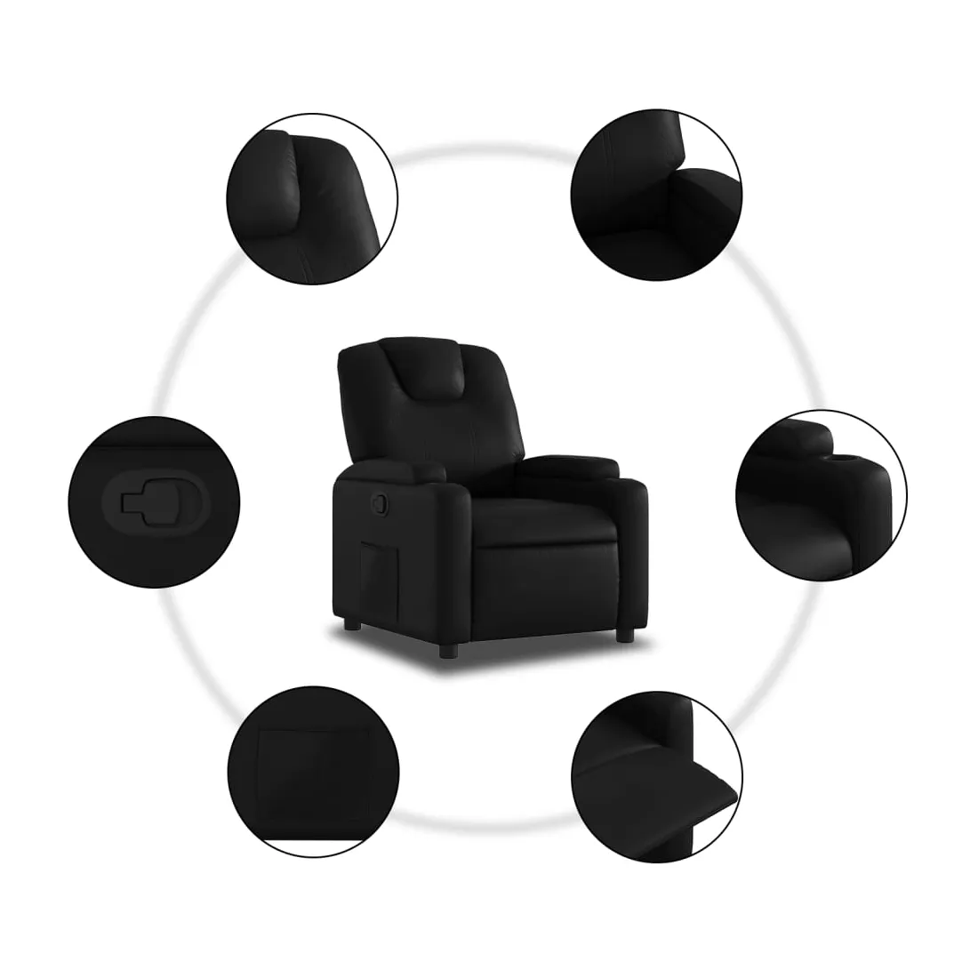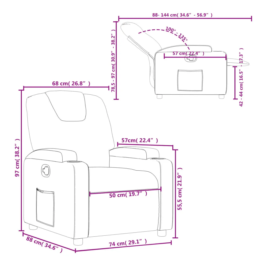 Asseyez-vous et détendez-vous dans ce fauteuil inclinable très confortable ! Fonction d'inclinaison manuelle : ce fauteuil inclinable est doté d'une poignée du côté droit. Vous pouvez régler manuellement le repose-pieds et le dossier dans n'importe quelle position selon votre confort en tirant simplement sur la poignée. Cette fonction permet une inclinaison maximale de 135 degrés. De plus, le dossier peut revenir rapidement à sa position d'origine en tirant simplement sur la poignée.Expérience de siège confortable : le siège, le dossier et les larges accoudoirs rembourrés épais recouverts de similicuir procurent une sensation confortable, vous faisant vous sentir enlacé lorsque vous êtes assis. Le similicuir est un matériau très résistant. Il est résistant aux taches, ce qui le rend facile à nettoyer avec un chiffon humide. La surface lisse donne également un aspect luxueux et la beauté du cuir véritable.Porte-gobelets et poche latérale pratiques : ce fauteuil dispose de deux porte-gobelets pratiques pour vos boissons et d'une poche latérale pour garder vos objets essentiels à portée de main.Cadre solide et stable : le cadre en bois et en métal offre une structure solide et une grande stabilité. Ce fauteuil inclinable est confortable et durable.