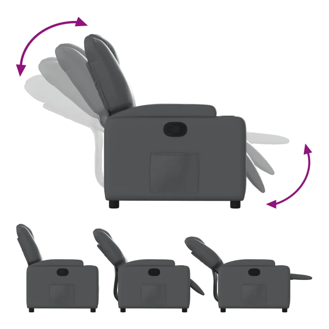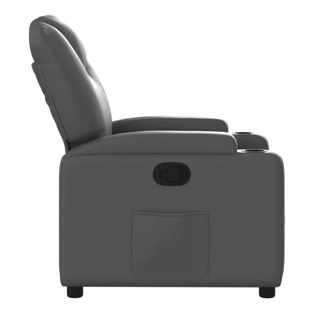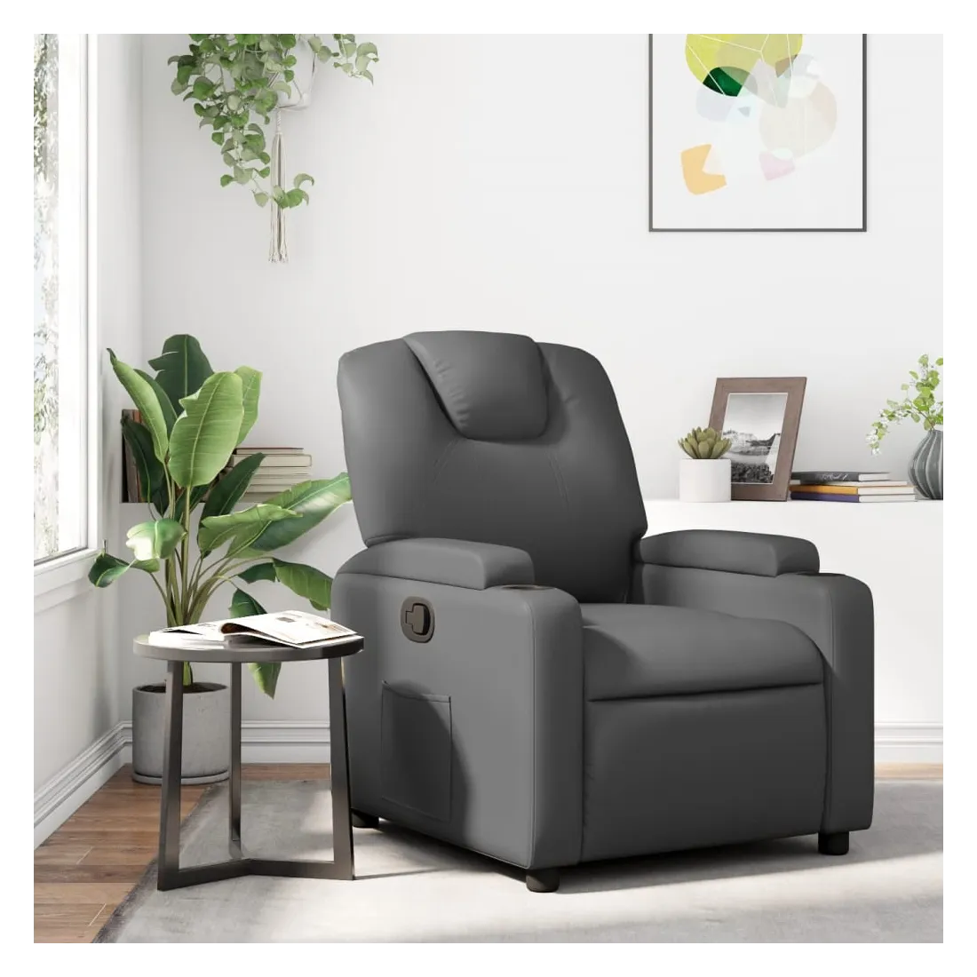 Asseyez-vous et détendez-vous dans ce fauteuil inclinable très confortable ! Fonction d'inclinaison manuelle : ce fauteuil inclinable est doté d'une poignée du côté droit. Vous pouvez régler manuellement le repose-pieds et le dossier dans n'importe quelle position selon votre confort en tirant simplement sur la poignée. Cette fonction permet une inclinaison maximale de 135 degrés. De plus, le dossier peut revenir rapidement à sa position d'origine en tirant simplement sur la poignée.Expérience de siège confortable : le siège, le dossier et les larges accoudoirs rembourrés épais recouverts de similicuir procurent une sensation confortable, vous faisant vous sentir enlacé lorsque vous êtes assis. Le similicuir est un matériau très résistant. Il est résistant aux taches, ce qui le rend facile à nettoyer avec un chiffon humide. La surface lisse donne également un aspect luxueux et la beauté du cuir véritable.Porte-gobelets et poche latérale pratiques : ce fauteuil dispose de deux porte-gobelets pratiques pour vos boissons et d'une poche latérale pour garder vos objets essentiels à portée de main.Cadre solide et stable : le cadre en bois et en métal offre une structure solide et une grande stabilité. Ce fauteuil inclinable est confortable et durable.
