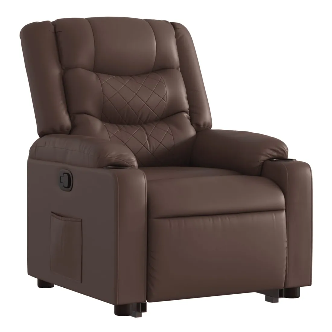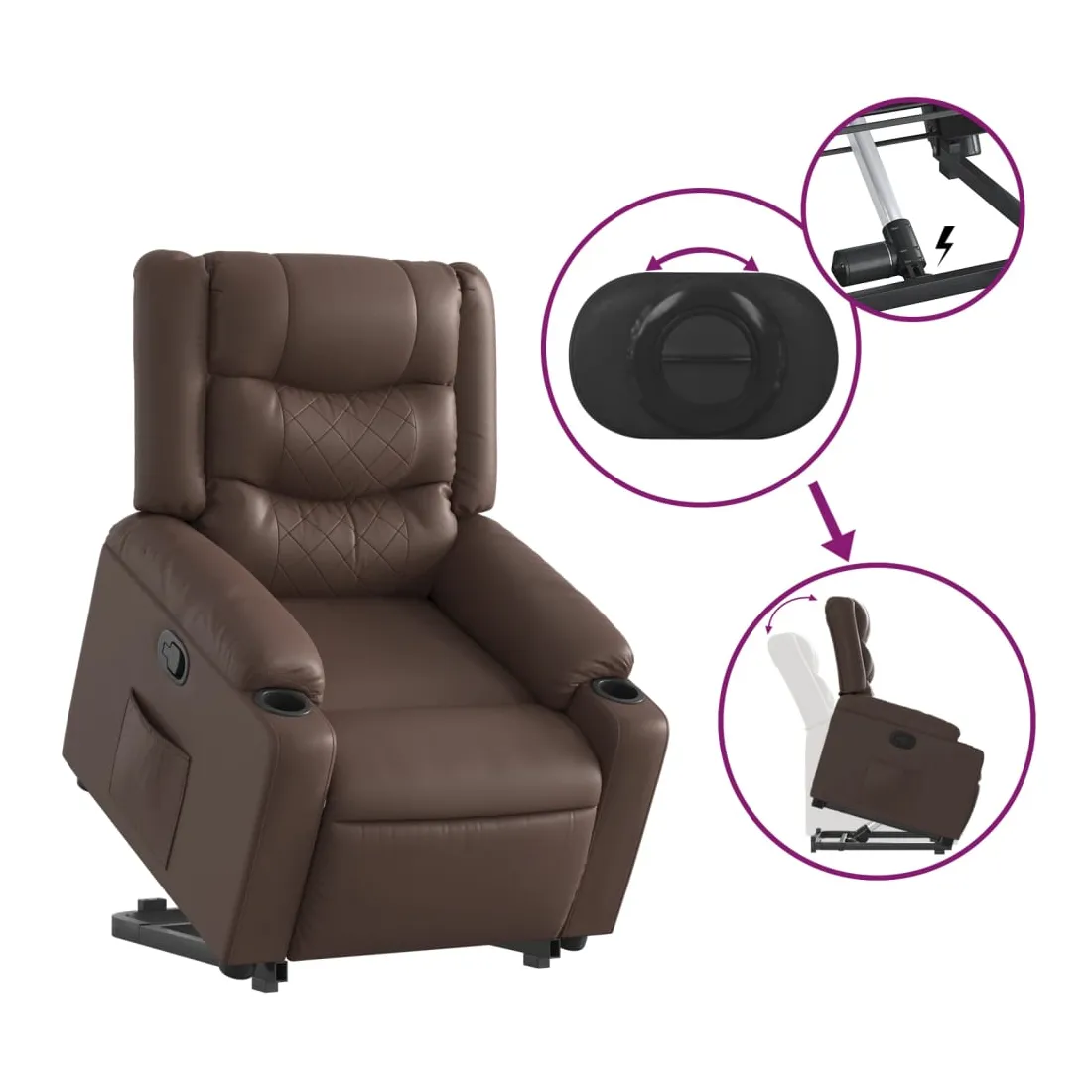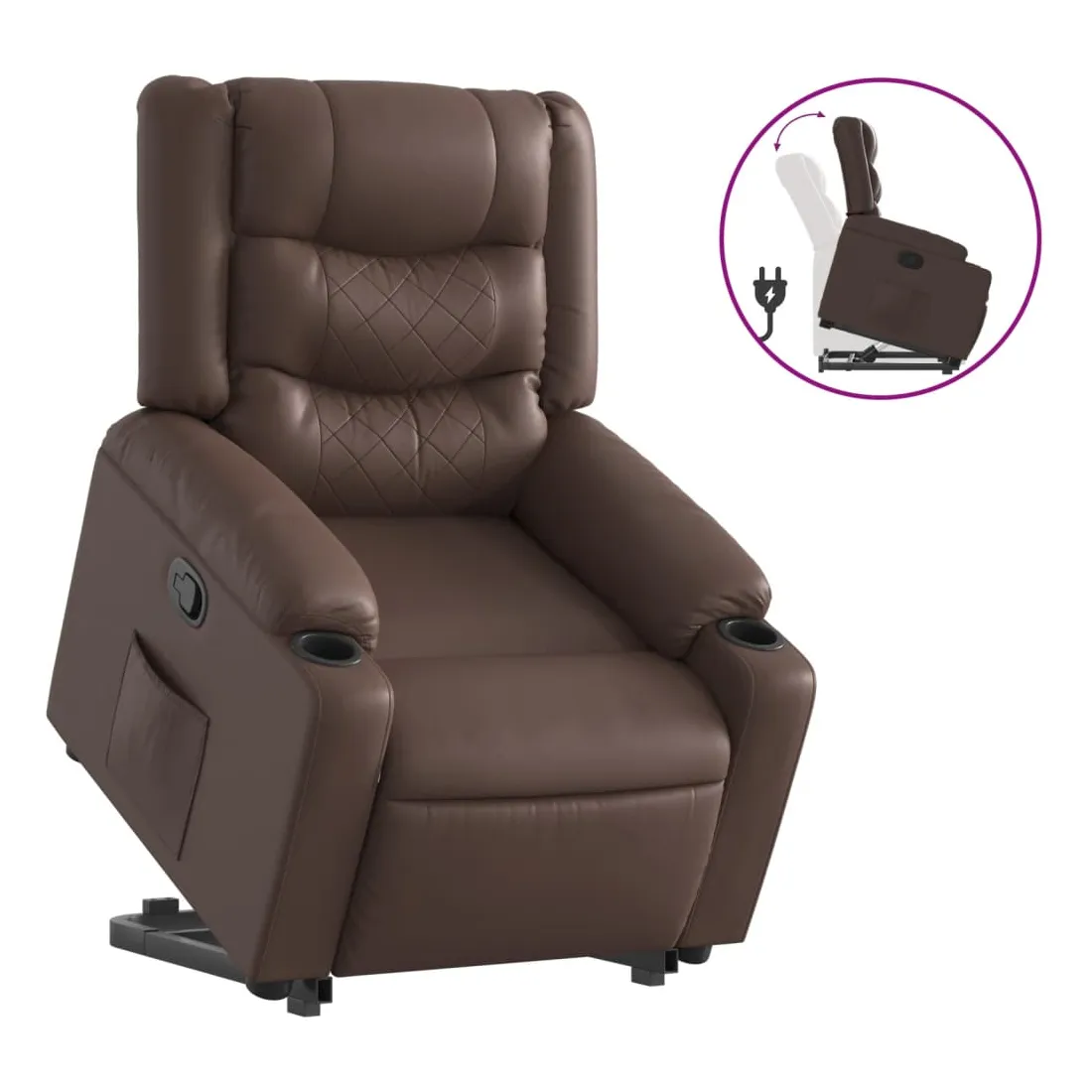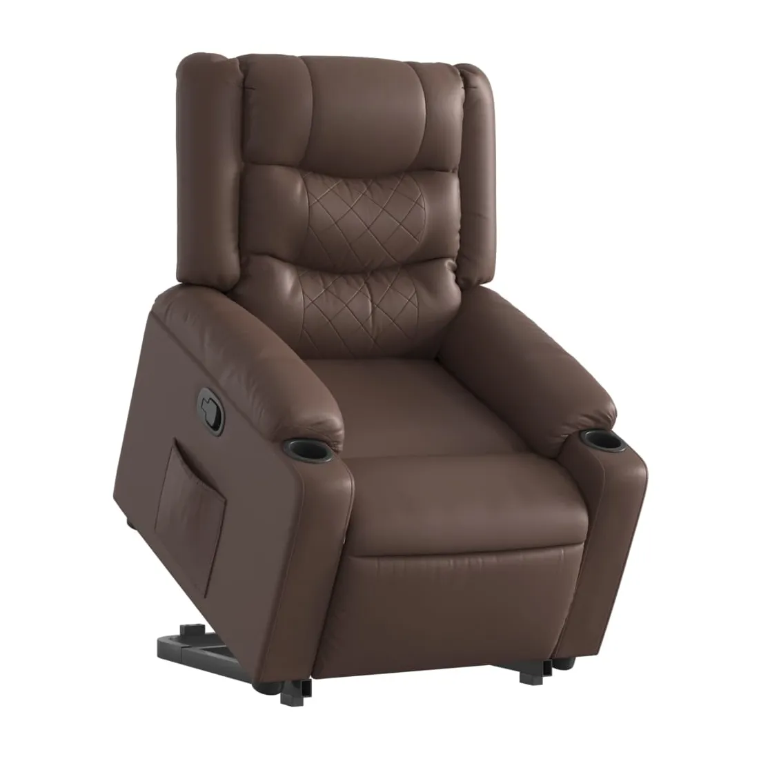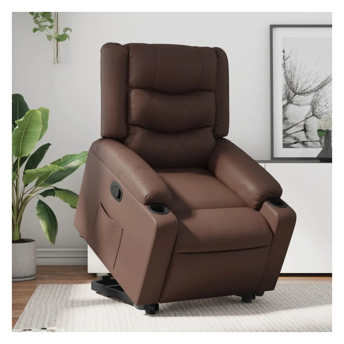 Asseyez-vous et détendez-vous dans ce fauteuil inclinable très confortable ! Fonction de levage électrique : ce fauteuil inclinable pour personnes âgées est équipé d'un moteur électrique pour la fonction de levage. Grâce à la fonction qui pousse toute la chaise vers le haut, vous pouvez facilement vous tenir debout sans stresser votre dos et vos genoux en appuyant simplement sur le bouton.Fonction d'inclinaison manuelle : ce fauteuil inclinable est doté d'une poignée du côté droit. Vous pouvez régler manuellement le repose-pieds et le dossier dans n'importe quelle position selon votre confort en tirant simplement sur la poignée. Cette fonction permet une inclinaison maximale de 135 degrés. De plus, le dossier peut revenir rapidement à sa position d'origine en tirant simplement sur la poignée.Expérience de siège confortable : le siège, le dossier et les larges accoudoirs rembourrés épais recouverts de similicuir procurent une sensation confortable, vous faisant vous sentir enlacé lorsque vous êtes assis. Le similicuir est un matériau très résistant. Il est résistant aux taches, ce qui le rend facile à nettoyer avec un chiffon humide. La surface lisse donne également un aspect luxueux et la beauté du cuir véritable.Poche latérale pratique : ce fauteuil est doté d'une poche latérale pour vous permettre de garder vos objets essentiels à portée de main.Cadre solide et stable : le cadre en bois et en métal offre une structure solide et une grande stabilité. Ce fauteuil inclinable est confortable et durable.