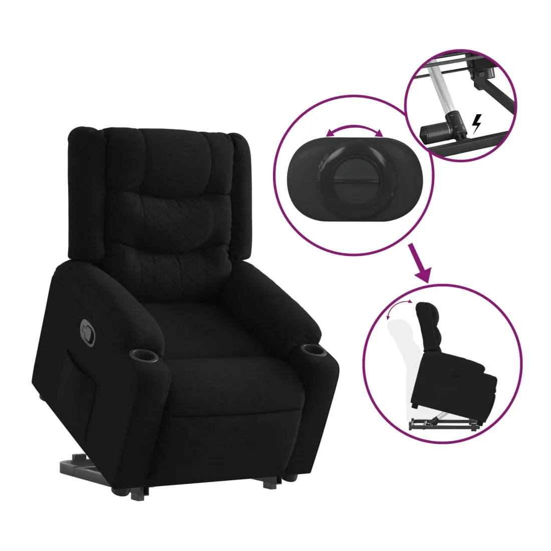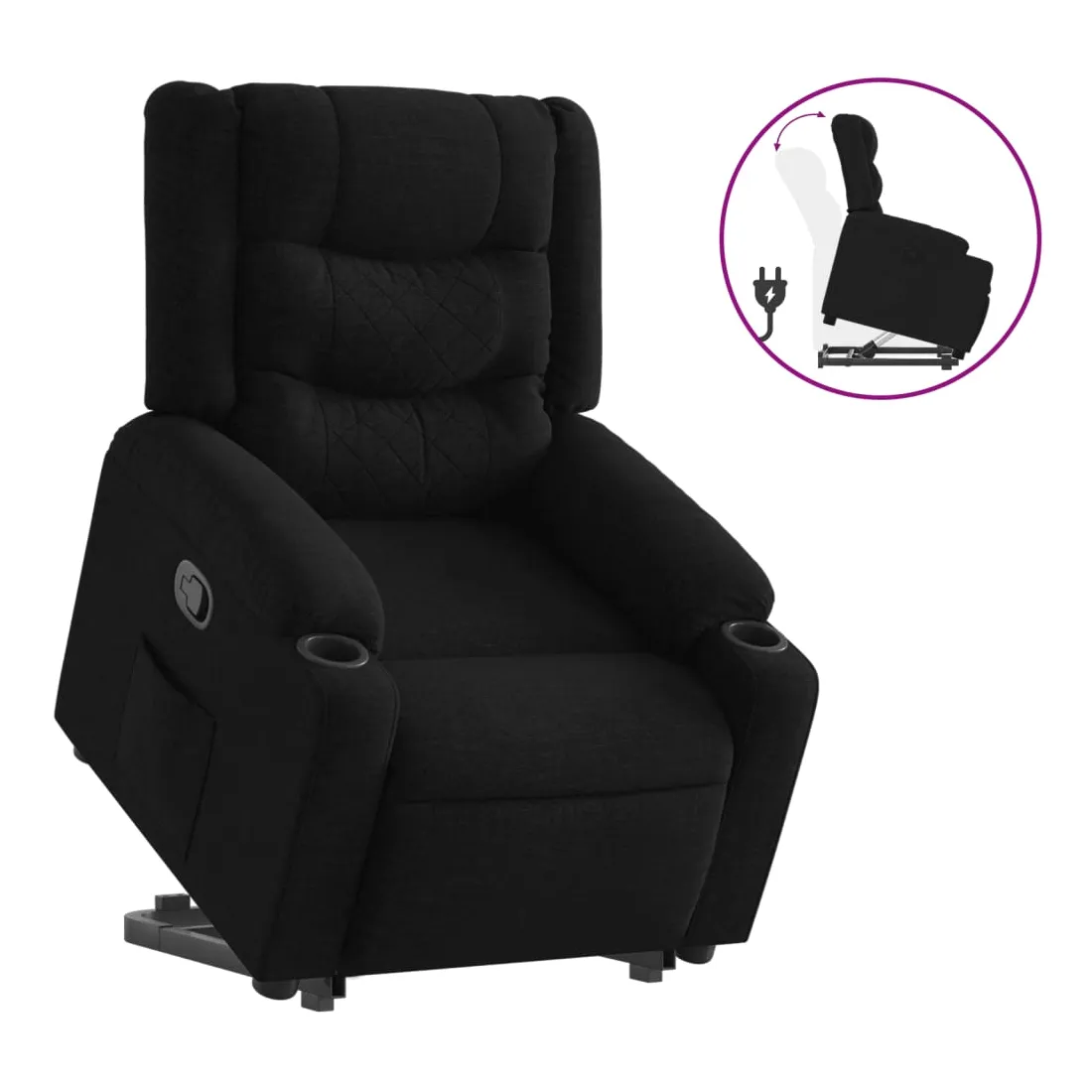 Asseyez-vous et détendez-vous dans ce fauteuil inclinable très confortable ! Fonction de levage électrique : ce fauteuil inclinable pour personnes âgées est équipé d'un moteur électrique pour la fonction de levage. Grâce à la fonction qui pousse toute la chaise vers le haut, vous pouvez facilement vous tenir debout sans stresser votre dos et vos genoux en appuyant simplement sur le bouton.Fonction d'inclinaison manuelle : ce fauteuil inclinable est doté d'une poignée du côté droit. Vous pouvez régler manuellement le repose-pieds et le dossier dans n'importe quelle position selon votre confort en tirant simplement sur la poignée. Cette fonction permet une inclinaison maximale de 135 degrés. De plus, le dossier peut revenir rapidement à sa position d'origine en tirant simplement sur la poignée.Expérience d'assise confortable : le siège, le dossier et les larges accoudoirs bien rembourrés recouverts de tissu procurent une sensation confortable et chaleureuse, vous permettant de vous sentir enveloppé lorsque vous êtes assis. Le tissu présente un aspect simple et épuré et est respirant et durable.Poche latérale pratique : ce fauteuil est doté d'une poche latérale pour vous permettre de garder vos objets essentiels à portée de main.Cadre solide et stable : le cadre en bois et en métal offre une structure solide et une grande stabilité. Ce fauteuil inclinable est confortable et durable.
