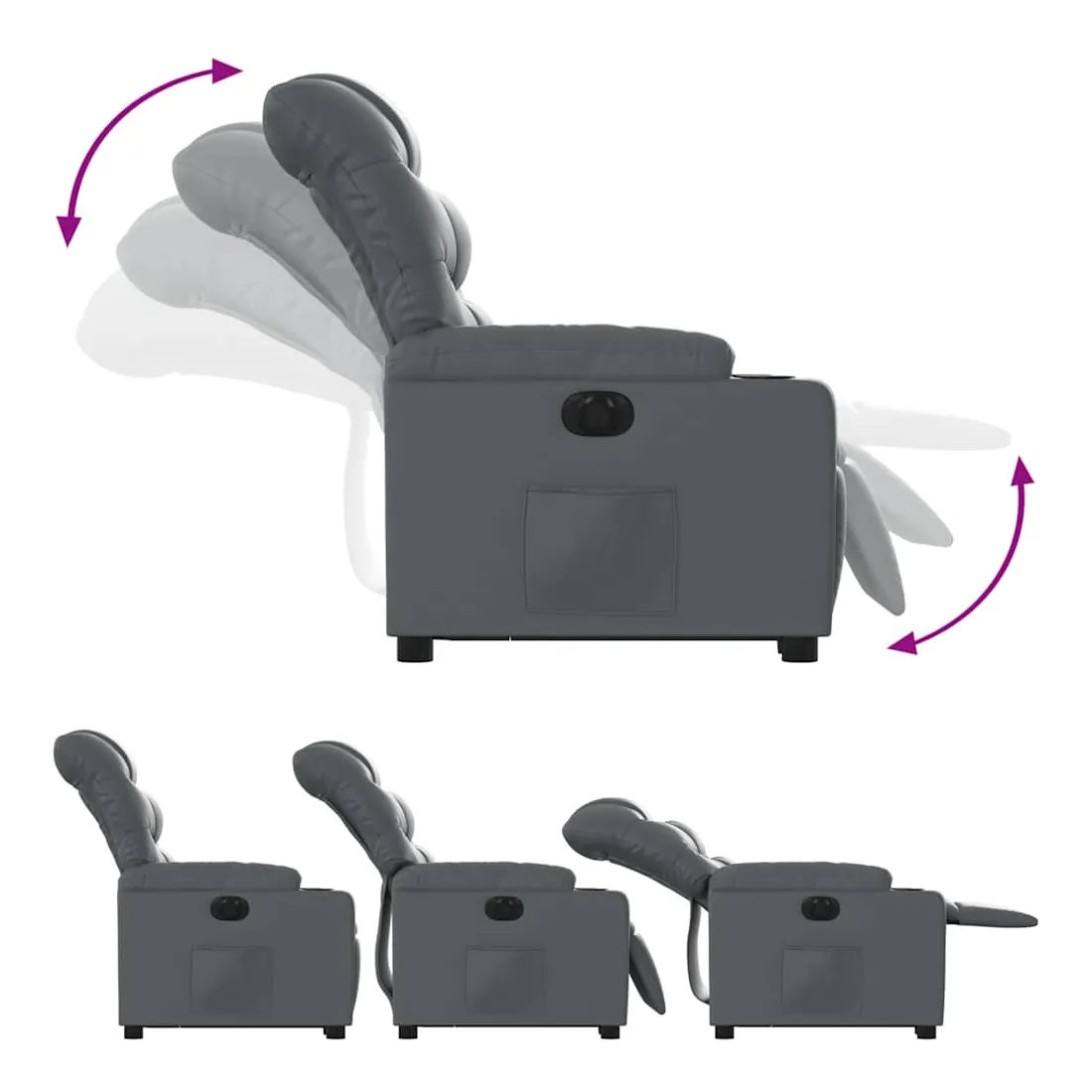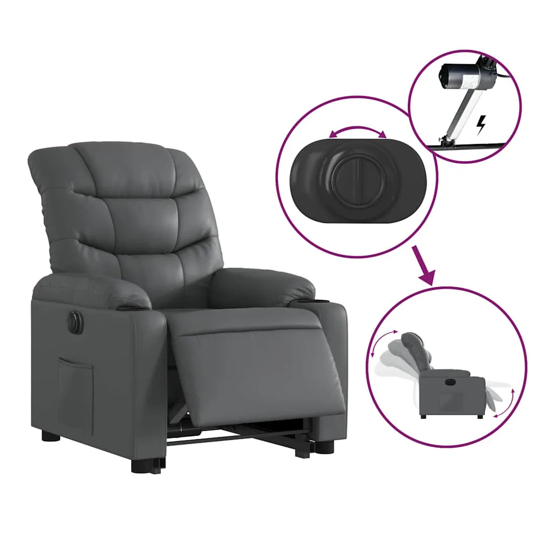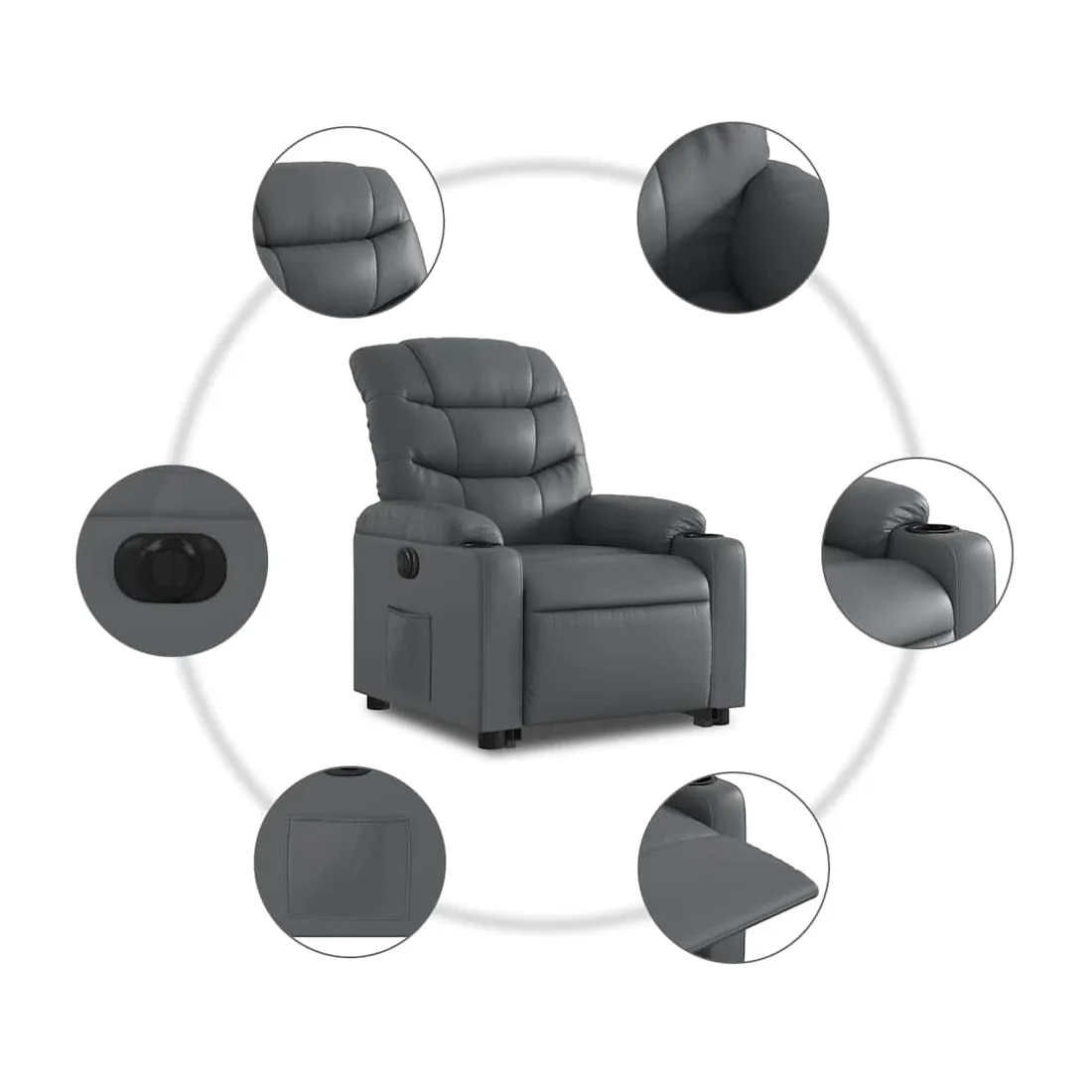 Asseyez-vous et détendez-vous dans ce fauteuil inclinable électrique très confortable ! Fonction de levage électrique : ce fauteuil inclinable pour personnes âgées est équipé d'un moteur électrique pour la fonction de levage. Grâce à la fonction qui pousse toute la chaise vers le haut, vous pouvez facilement vous tenir debout sans stresser votre dos et vos genoux en appuyant simplement sur le bouton.Fonction d'inclinaison électrique : ce fauteuil inclinable est également équipé d'un moteur électrique qui permet de régler automatiquement le repose-pied et le dossier dans n'importe quelle position, selon votre confort, en appuyant simplement sur le bouton situé sur le côté du fauteuil. Cette fonction permet une inclinaison maximale de 135 degrés. En outre, le dossier peut revenir automatiquement à sa position d'origine par une simple pression sur le bouton.Expérience de siège confortable : le siège, le dossier et les larges accoudoirs rembourrés épais recouverts de similicuir procurent une sensation confortable et chaleureuse, vous faisant vous sentir enlacé lorsque vous êtes assis. Le simili cuir est un matériau très résistant. Il est résistant aux taches, ce qui le rend facile à nettoyer avec un chiffon humide. La surface lisse donne également un aspect luxueux et la beauté du cuir véritable.Poche latérale pratique : ce fauteuil est doté d'une poche latérale pour vous permettre de garder vos objets essentiels à portée de main.Cadre solide et stable : le cadre en bois et en métal offre une structure solide et une grande stabilité. Ce fauteuil inclinable est confortable et durable.