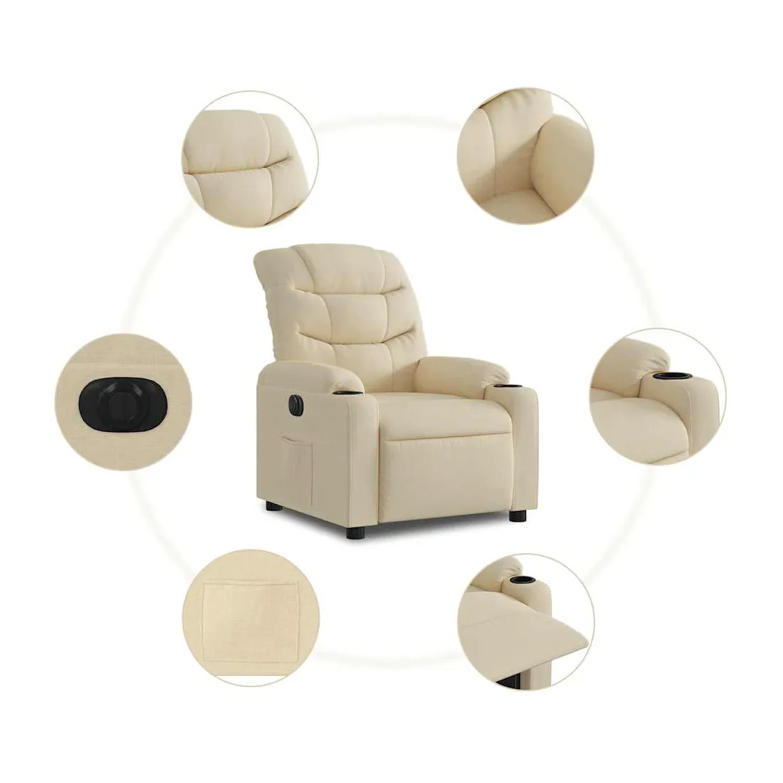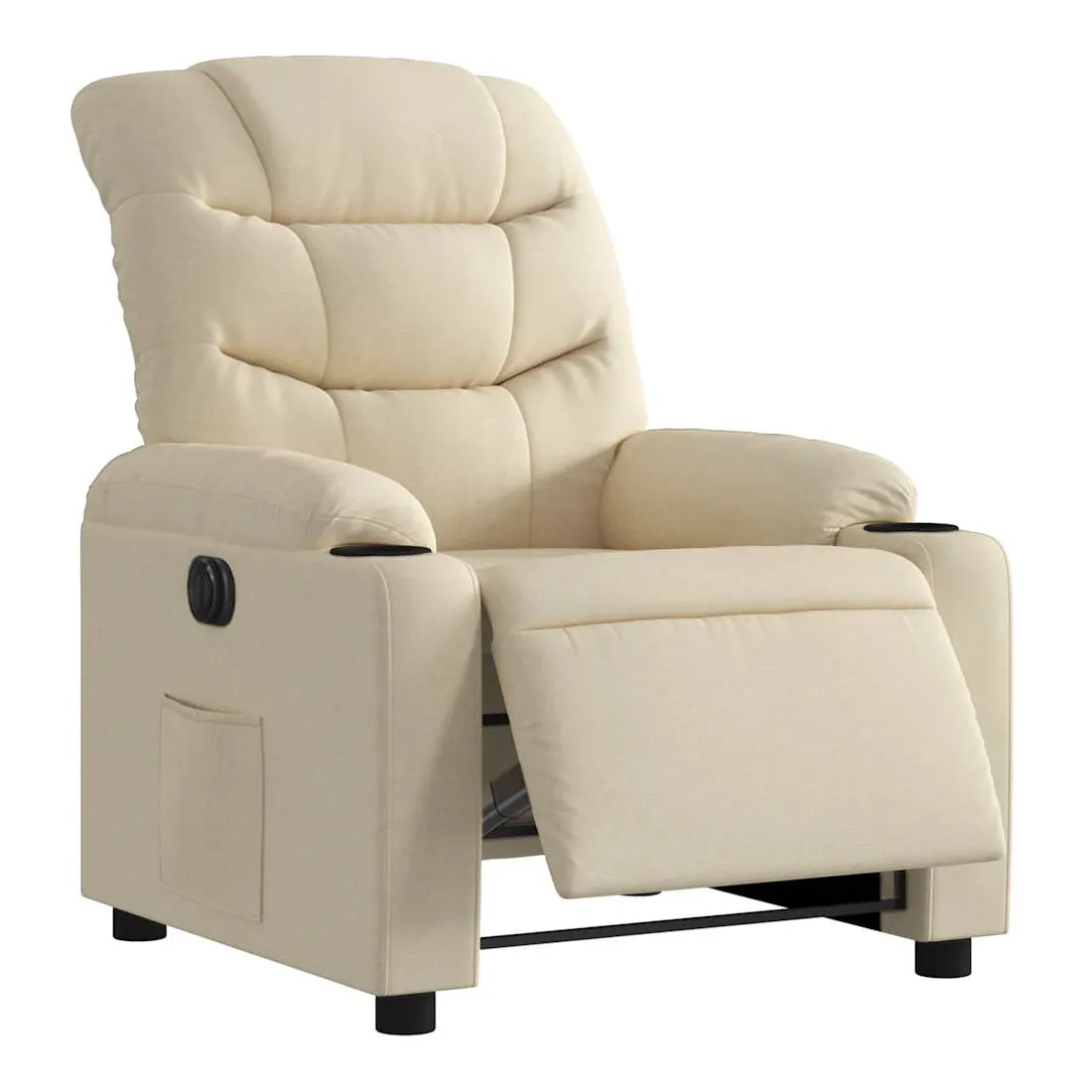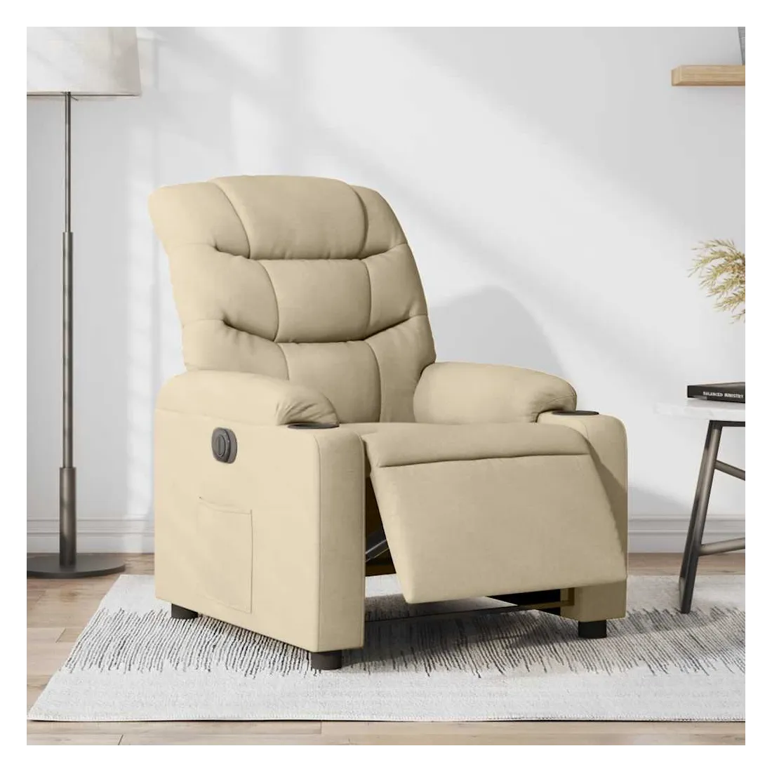 Asseyez-vous et détendez-vous dans ce fauteuil inclinable électrique très confortable ! Fonction d'inclinaison électrique : ce fauteuil inclinable est équipé d'un moteur électrique qui permet de régler automatiquement le repose-pied et le dossier dans n'importe quelle position, selon votre confort, en appuyant simplement sur le bouton situé sur le côté du fauteuil. Cette fonction permet une inclinaison maximale de 135 degrés. En outre, le dossier peut revenir automatiquement à sa position d'origine par une simple pression sur le bouton.Expérience d'assise confortable : le siège, le dossier et les larges accoudoirs bien rembourrés recouverts de tissu procurent une sensation confortable et chaleureuse, vous permettant de vous sentir enveloppé lorsque vous êtes assis. Le tissu présente un aspect simple et épuré et est respirant et durable.Poche latérale pratique : ce fauteuil est doté d'une poche latérale pour vous permettre de garder vos objets essentiels à portée de main.Cadre solide et stable : le cadre en bois et en métal offre une structure solide et une grande stabilité. Ce fauteuil inclinable est confortable et durable.