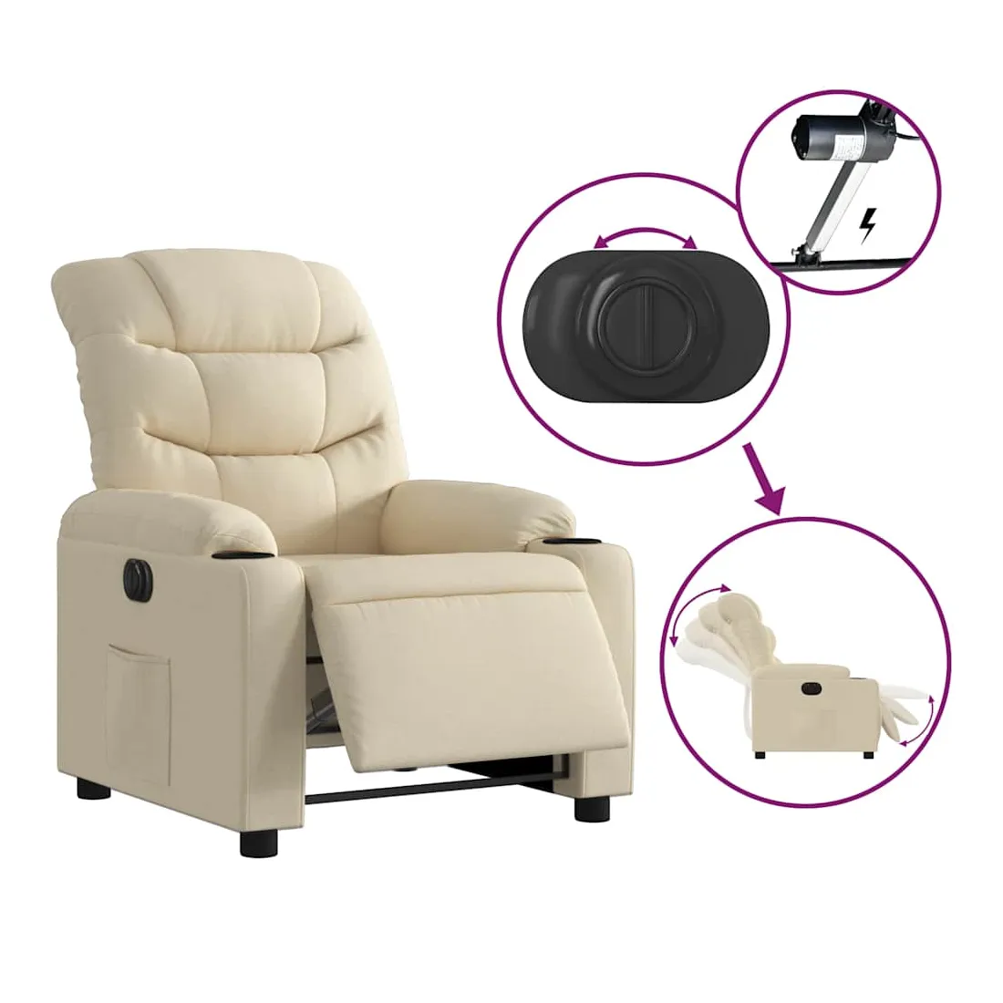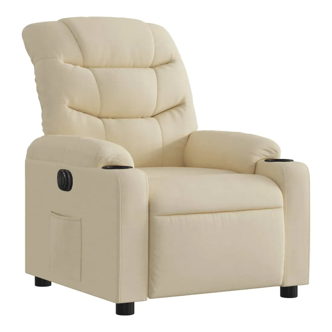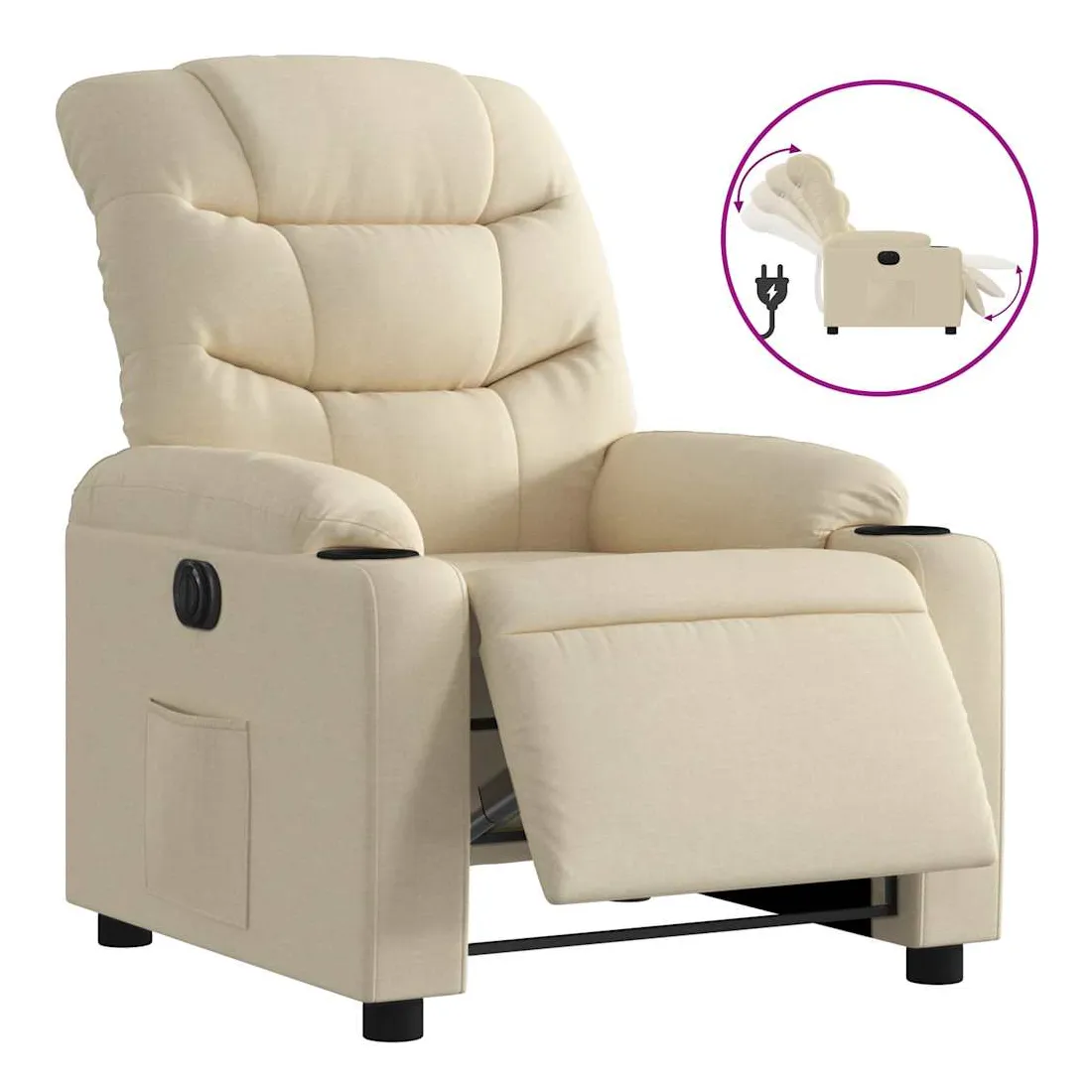 Asseyez-vous et détendez-vous dans ce fauteuil inclinable électrique très confortable ! Fonction d'inclinaison électrique : ce fauteuil inclinable est équipé d'un moteur électrique qui permet de régler automatiquement le repose-pied et le dossier dans n'importe quelle position, selon votre confort, en appuyant simplement sur le bouton situé sur le côté du fauteuil. Cette fonction permet une inclinaison maximale de 135 degrés. En outre, le dossier peut revenir automatiquement à sa position d'origine par une simple pression sur le bouton.Expérience d'assise confortable : le siège, le dossier et les larges accoudoirs bien rembourrés recouverts de tissu procurent une sensation confortable et chaleureuse, vous permettant de vous sentir enveloppé lorsque vous êtes assis. Le tissu présente un aspect simple et épuré et est respirant et durable.Poche latérale pratique : ce fauteuil est doté d'une poche latérale pour vous permettre de garder vos objets essentiels à portée de main.Cadre solide et stable : le cadre en bois et en métal offre une structure solide et une grande stabilité. Ce fauteuil inclinable est confortable et durable.