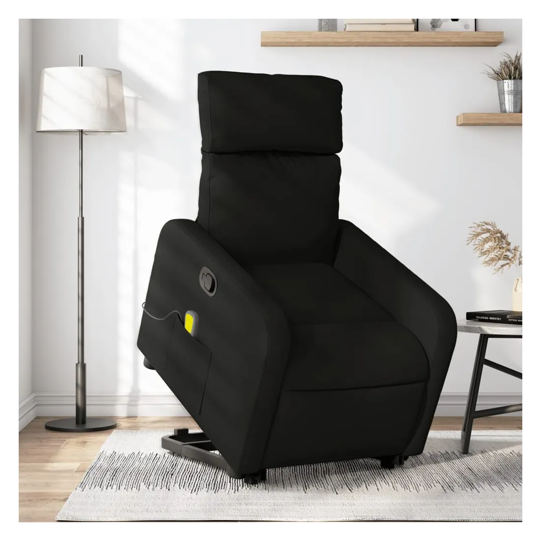 Asseyez-vous et détendez-vous dans ce fauteuil inclinable de massage très confortable ! Fonction de levage électrique : ce fauteuil inclinable pour personnes âgées est équipé d'un moteur électrique pour la fonction de levage. Grâce à la fonction qui pousse toute la chaise vers le haut, vous pouvez facilement vous tenir debout sans stresser votre dos et vos genoux en appuyant simplement sur le bouton.Fonction d'inclinaison manuelle : ce fauteuil inclinable est doté d'une poignée du côté droit. Vous pouvez régler manuellement le repose-pieds et le dossier dans n'importe quelle position selon votre confort en tirant simplement sur la poignée. Cette fonction permet une inclinaison maximale de 135 degrés. De plus, le dossier peut revenir rapidement à sa position d'origine en tirant simplement sur la poignée.Fonction de vibration : les 6 points de massage vous permettent de faire l'expérience d'un massage mieux ciblé. De plus, la télécommande incluse vous permet de choisir différents programmes de massage. La fonction de massage est alimentée par le connecteur USB qui nécessite une source d'alimentation USB certifiée de 5 V (non fournie).Expérience d'assise confortable : le siège, le dossier et les larges accoudoirs bien rembourrés recouverts de tissu procurent une sensation confortable et chaleureuse, vous permettant de vous sentir enveloppé lorsque vous êtes assis. Le tissu présente un aspect simple et épuré et est respirant et durable.Poche latérale pratique : ce fauteuil est doté d'une poche latérale pour vous permettre de garder vos objets essentiels à portée de main.Cadre solide et stable : le cadre en bois et en métal offre une structure solide et une grande stabilité. Ce fauteuil inclinable est confortable et durable.
