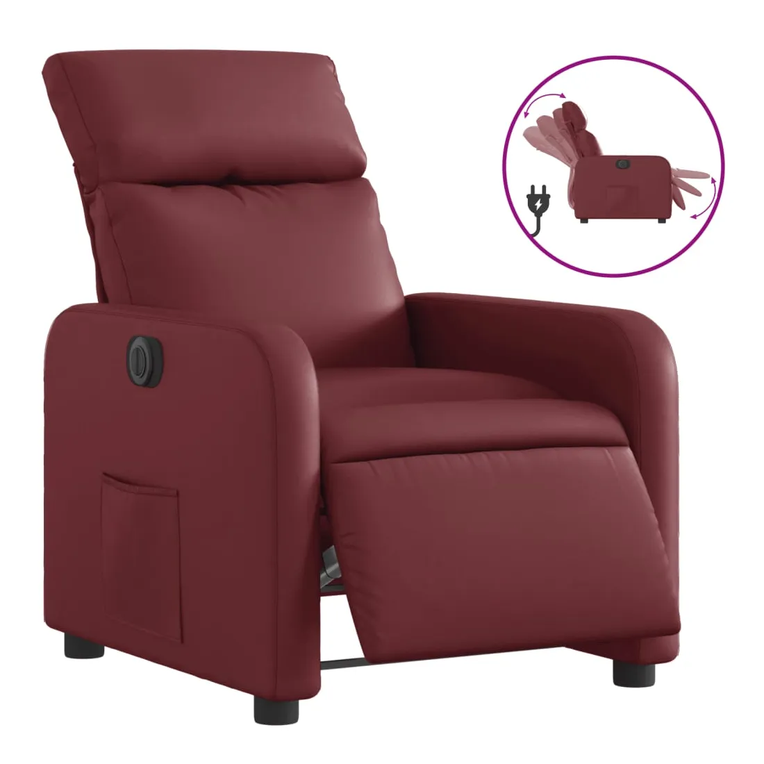 Asseyez-vous et détendez-vous dans ce fauteuil inclinable électrique très confortable ! Fonction d'inclinaison électrique : ce fauteuil inclinable est équipé d'un moteur électrique qui permet de régler automatiquement le repose-pied et le dossier dans n'importe quelle position, selon votre confort, en appuyant simplement sur le bouton situé sur le côté du fauteuil. Cette fonction permet une inclinaison maximale de 135 degrés. En outre, le dossier peut revenir automatiquement à sa position d'origine par une simple pression sur le bouton.Expérience de siège confortable : le siège, le dossier et les larges accoudoirs rembourrés épais recouverts de similicuir procurent une sensation confortable, vous faisant vous sentir enlacé lorsque vous êtes assis. Le similicuir est un matériau très résistant. Il est résistant aux taches, ce qui le rend facile à nettoyer avec un chiffon humide. La surface lisse donne également un aspect luxueux et la beauté du cuir véritable.Poche latérale pratique : ce fauteuil est doté d'une poche latérale pour vous permettre de garder vos objets essentiels à portée de main.Cadre solide et stable : le cadre en bois et en métal offre une structure solide et une grande stabilité. Ce fauteuil inclinable est confortable et durable.